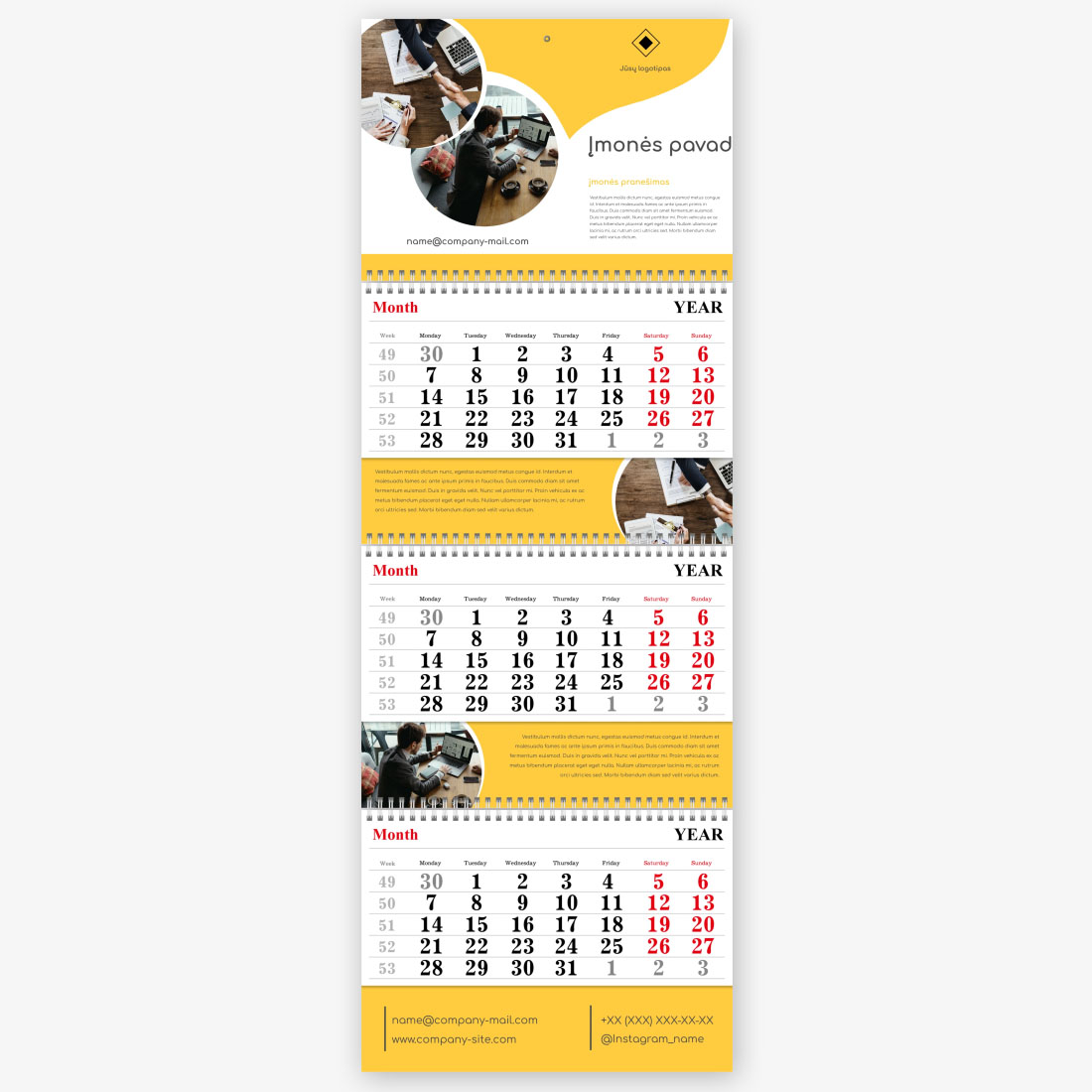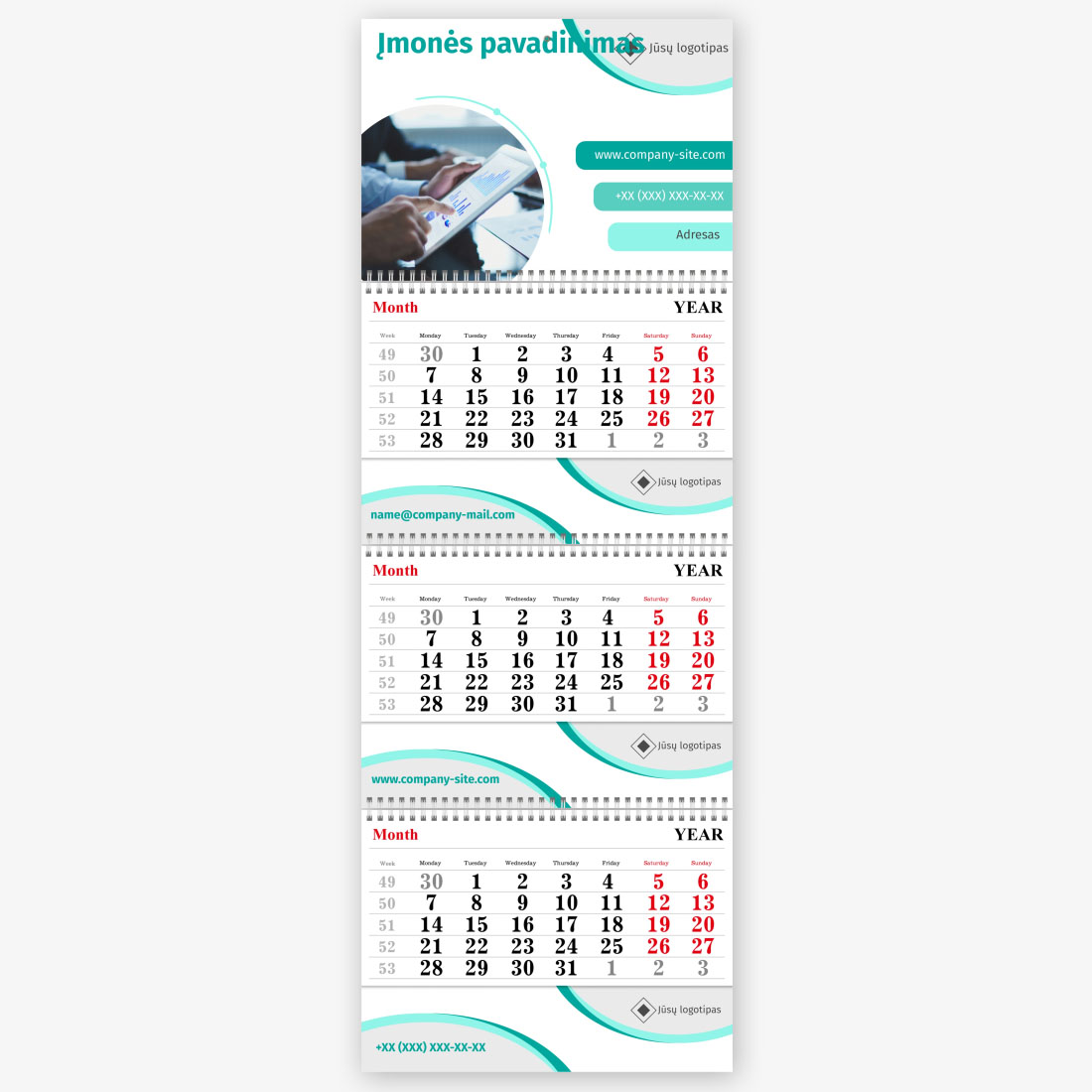 Nemokamas ketvirčio Abstraktus verslo kalendoriaus šablonas. Sukurkite išdėstymą su savo rankomis kalendoriaus dizaineriu.