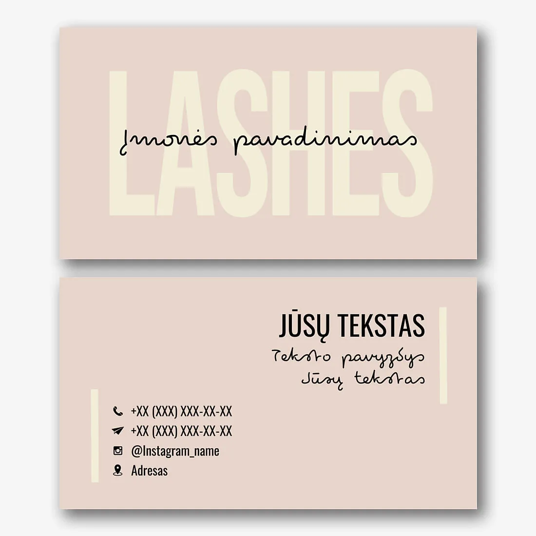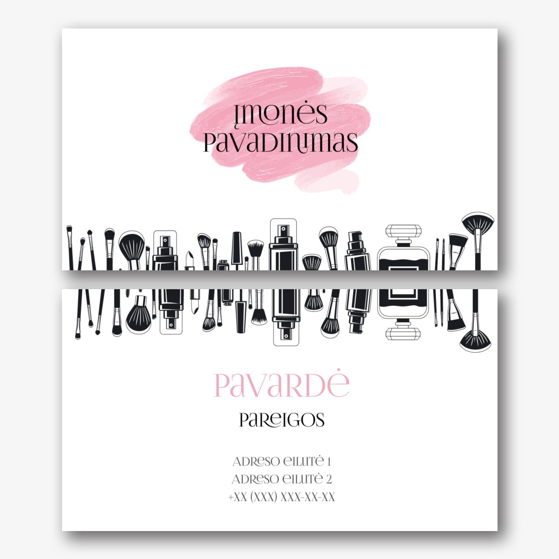 Nemokamas vizitinės kortelės Šablonas su nagų laku nagų salonui, grožio studijai, manikiūro meistrui. Sukurkite vizitinės kortelės išdėstymą savo rankomis internetiniame vizitinių kortelių dizaineryje.