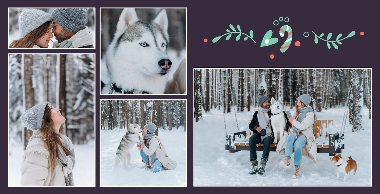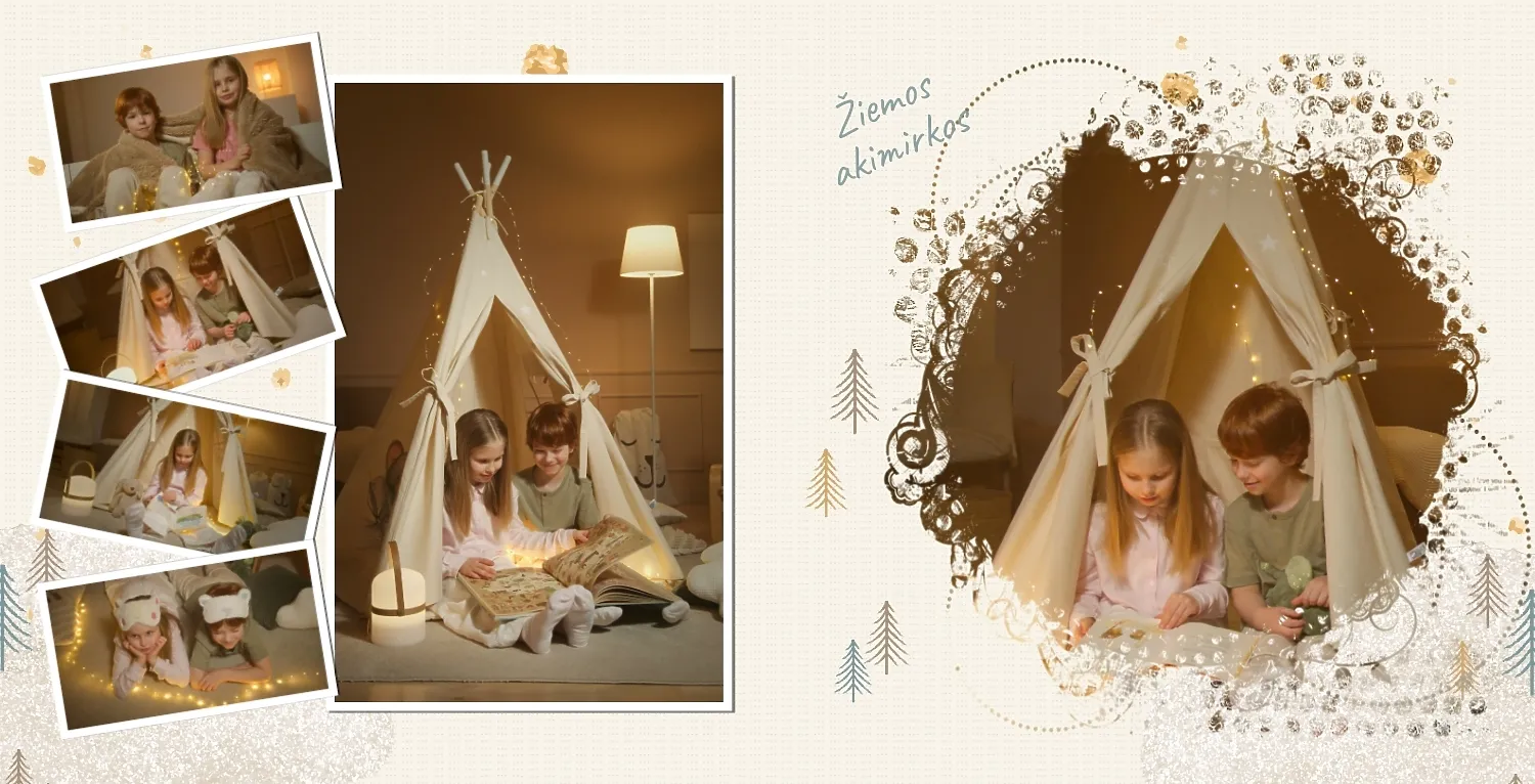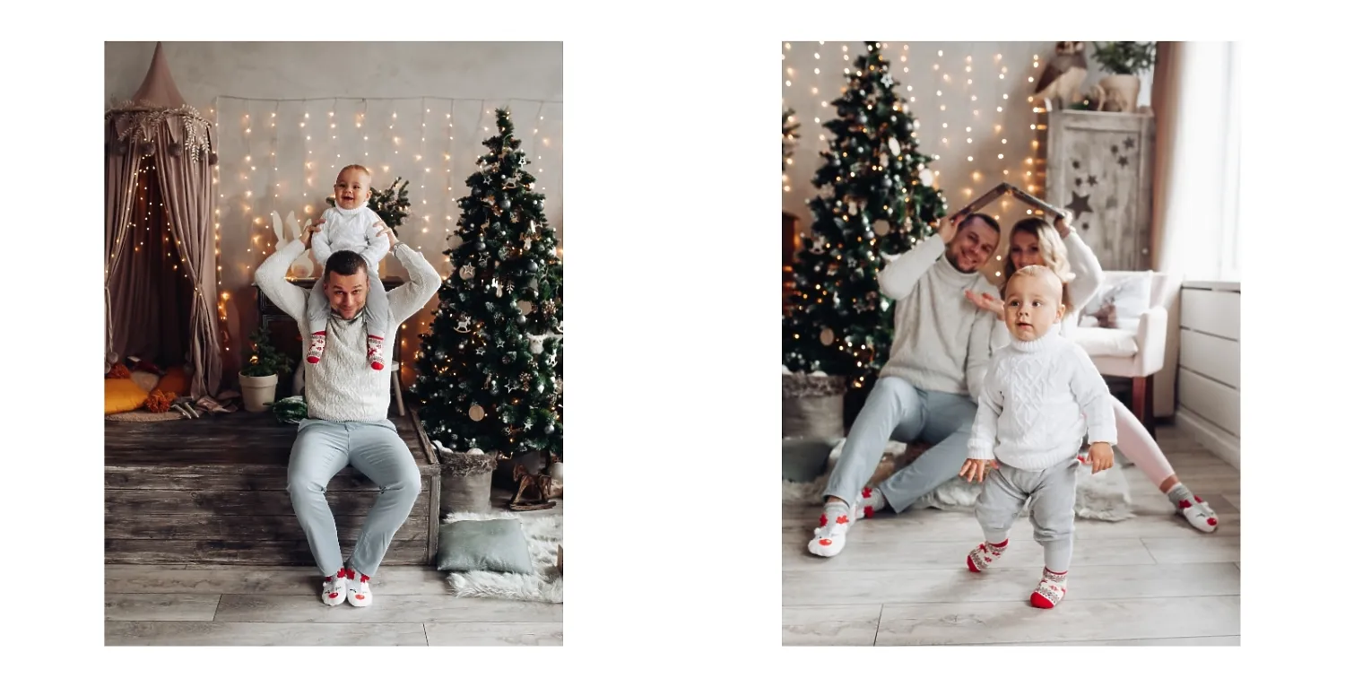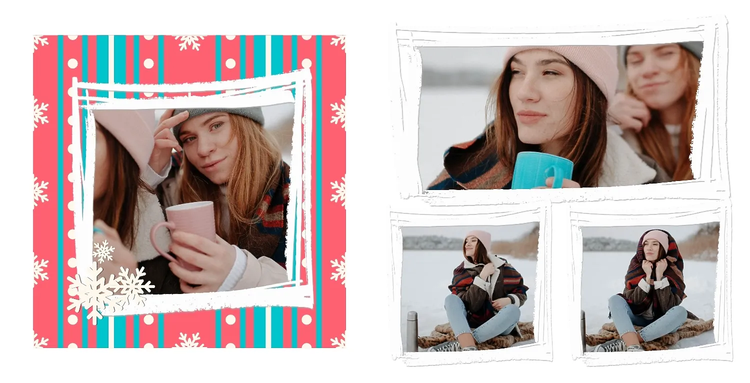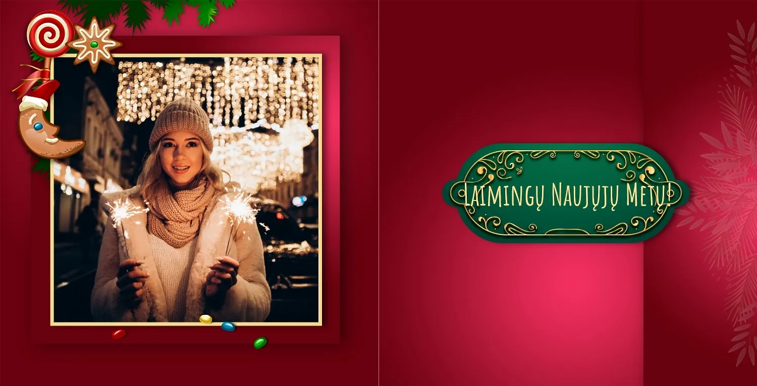 Nemokamas fotoknygos šablonas geriems prisiminimams apie Naujuosius metus, Kalėdas, žiemos šventes su šeima. Sukurkite kvadratinės nuotraukų knygos išdėstymą su savo rankomis internetiniame nuotraukų knygų dizaineryje.