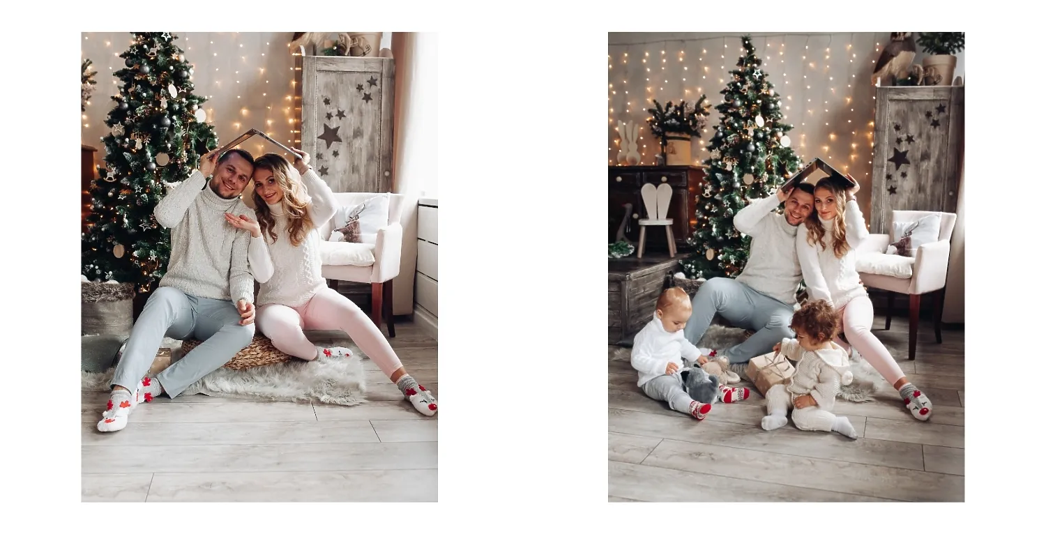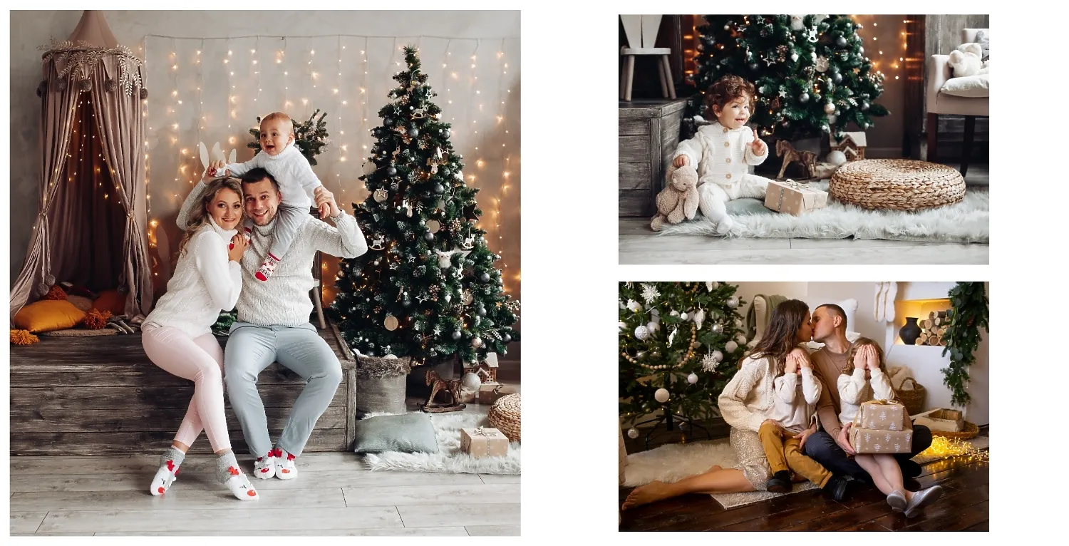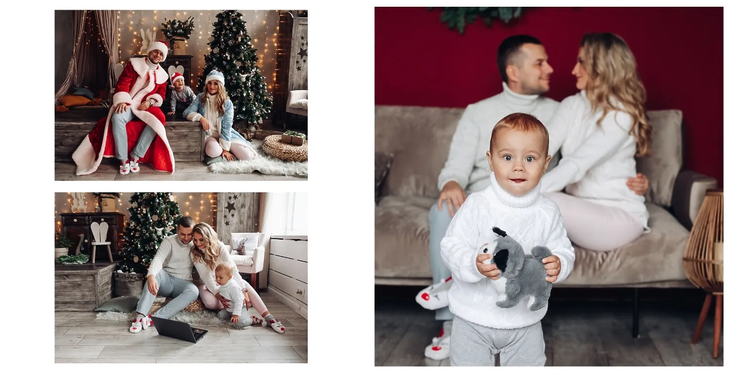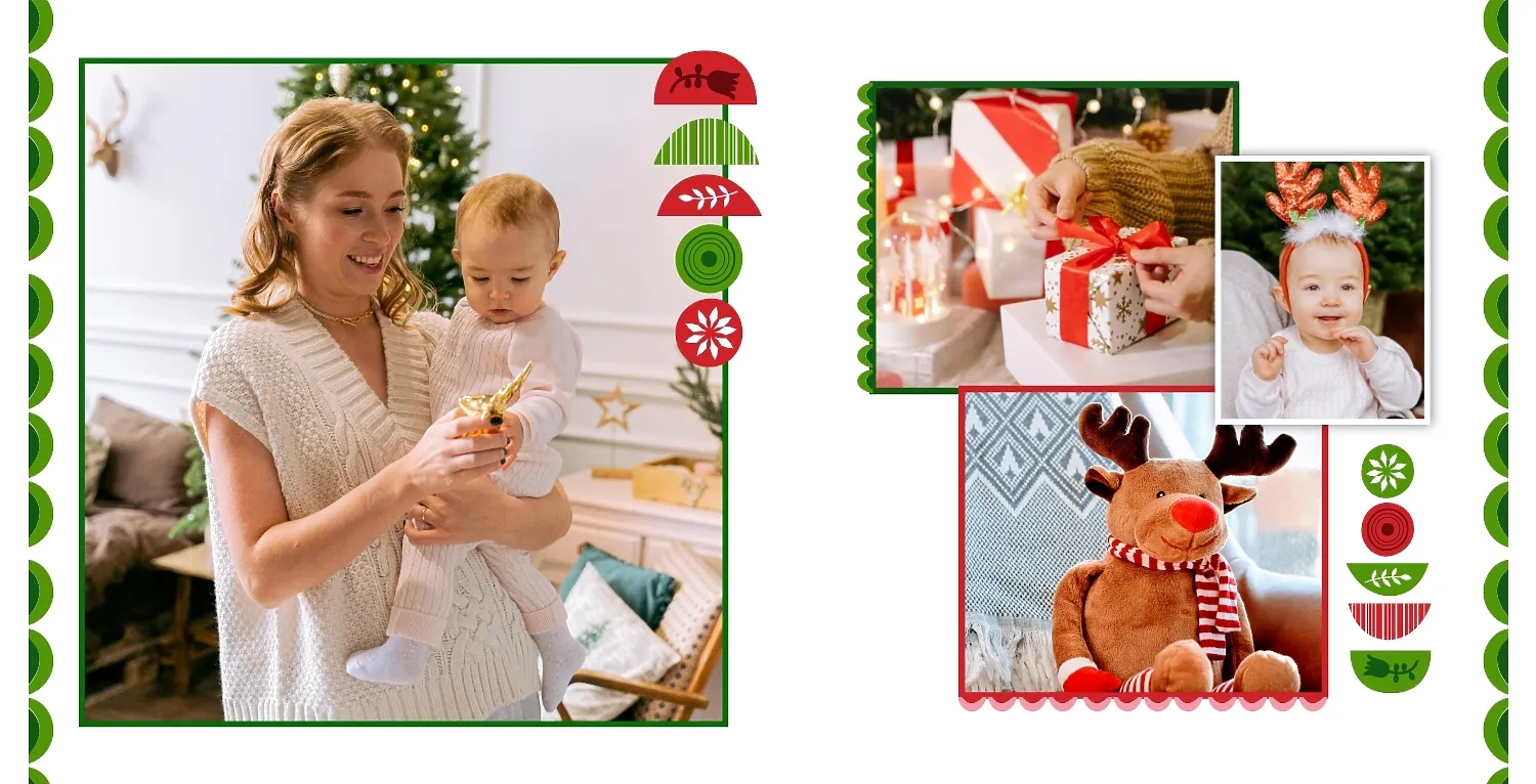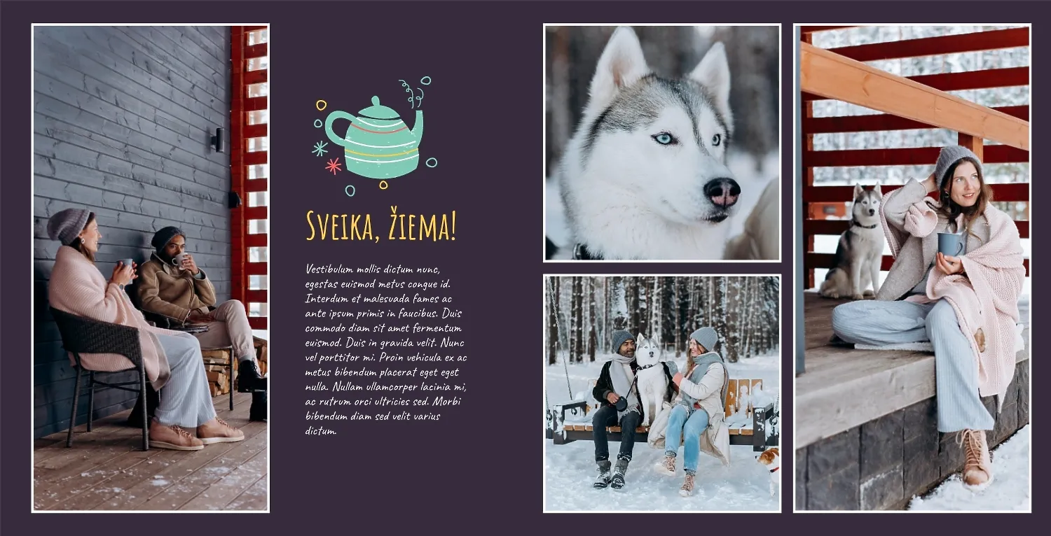 Nemokamas fotoknygos šablonas geriems prisiminimams apie Naujuosius metus, Kalėdas, žiemos šventes su šeima. Sukurkite kvadratinės nuotraukų knygos išdėstymą su savo rankomis internetiniame nuotraukų knygų dizaineryje.