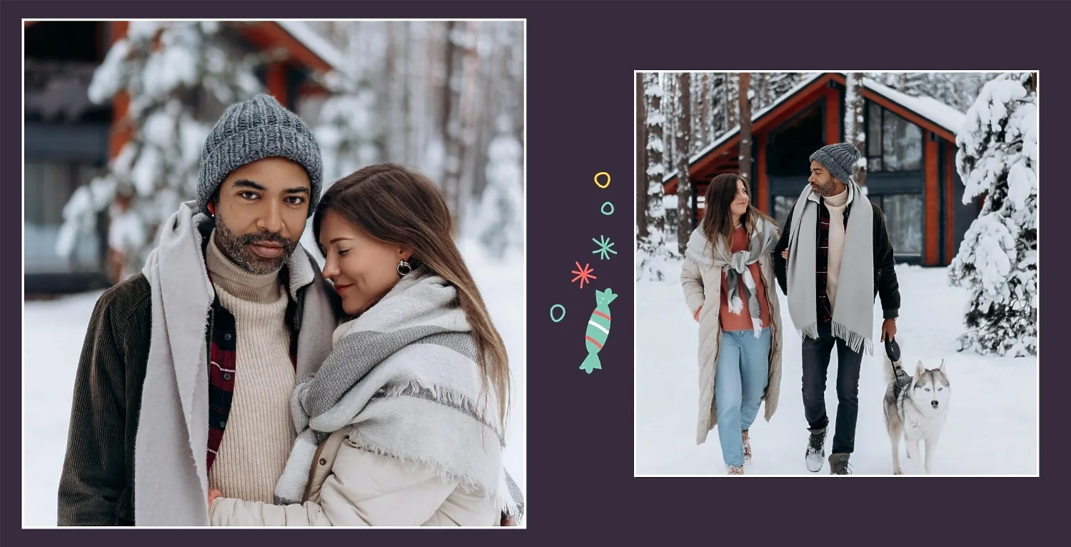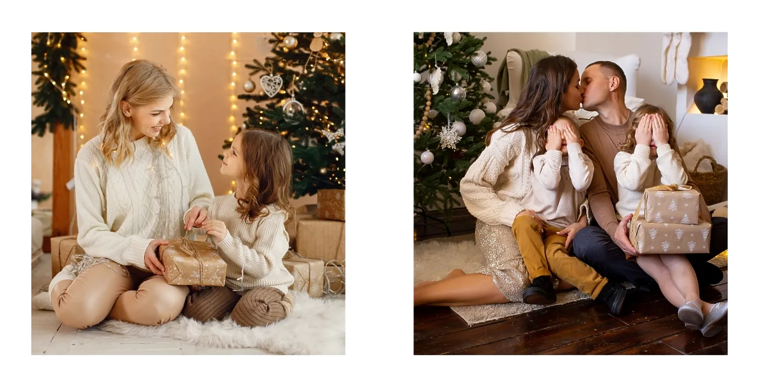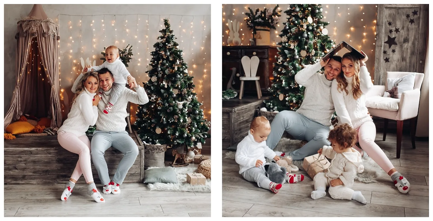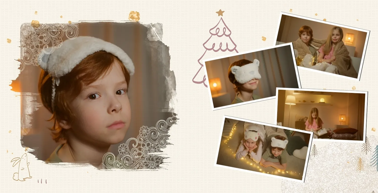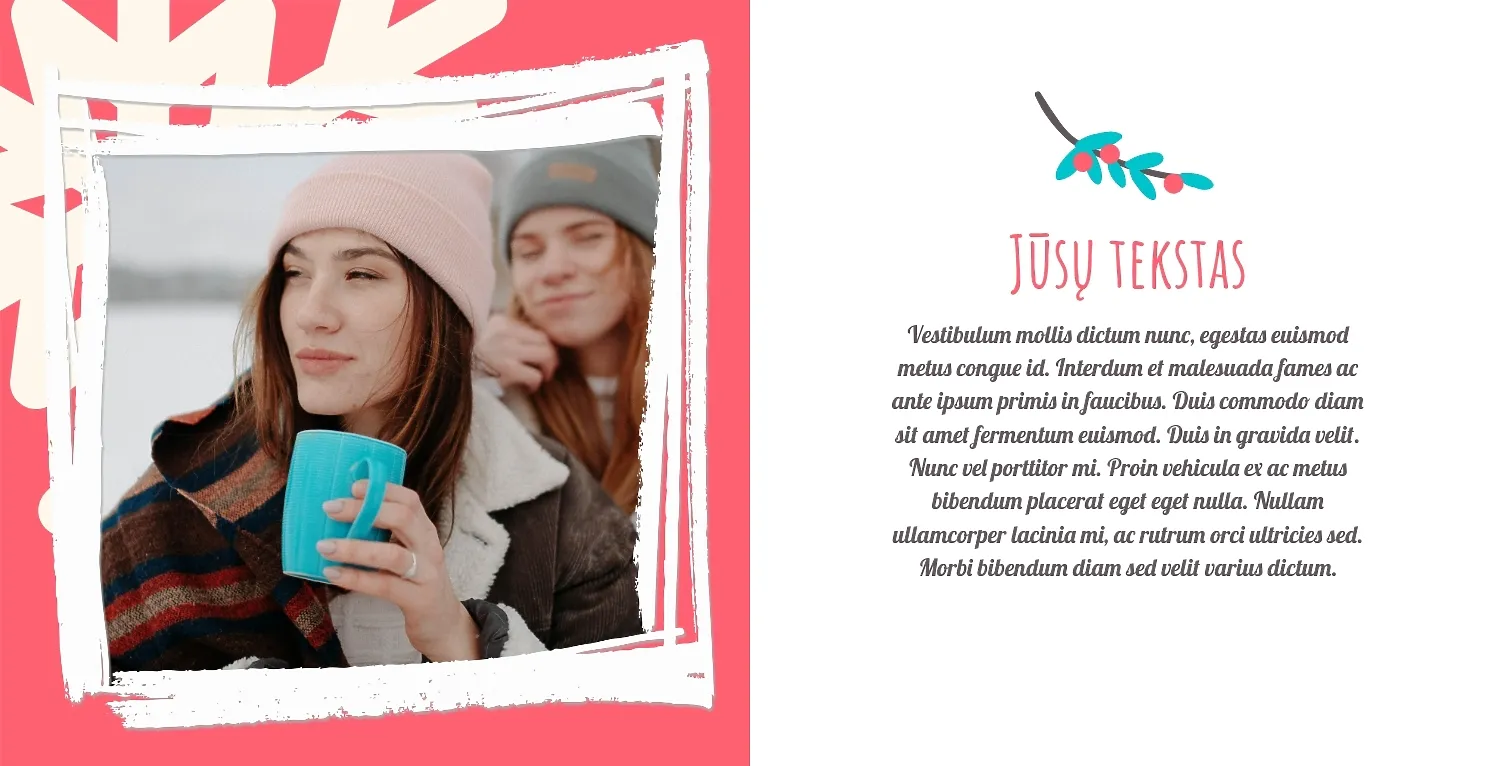 Nemokamas fotoknygos šablonas geriems prisiminimams apie Naujuosius metus, Kalėdas, žiemos šventes su šeima. Sukurkite kvadratinės nuotraukų knygos išdėstymą su savo rankomis internetiniame nuotraukų knygų dizaineryje.