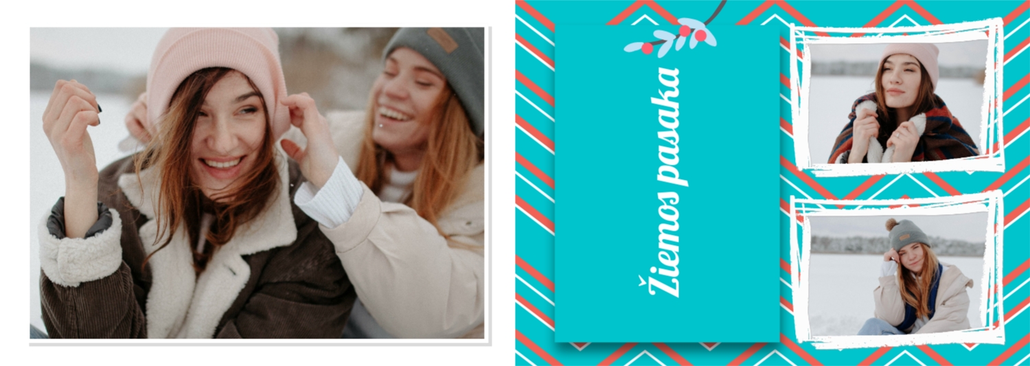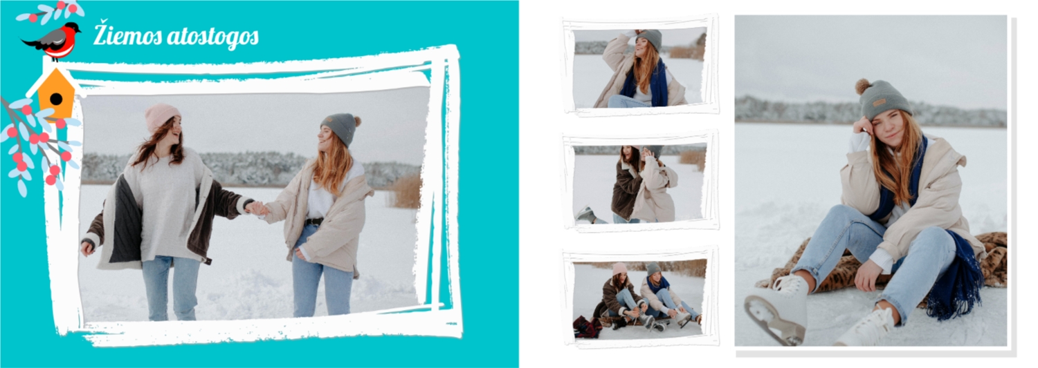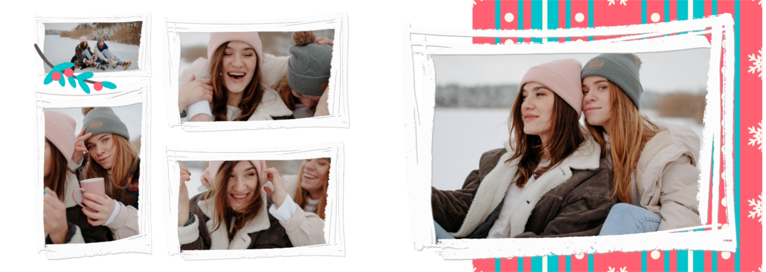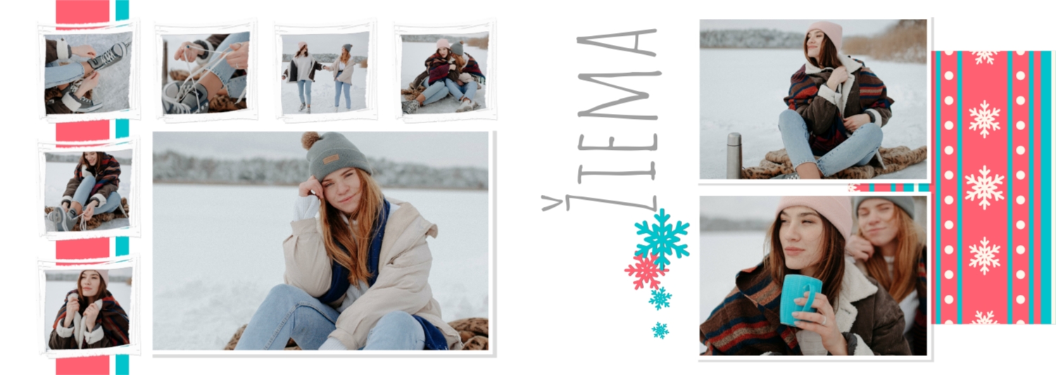 Nemokamas fotoknygos šablonas geriems prisiminimams apie Naujuosius metus, Kalėdas, žiemos šventes su šeima. Sukurkite didelės nuotraukų knygos išdėstymą su savo rankomis internetinėje nuotraukų knygų dizaineriu.