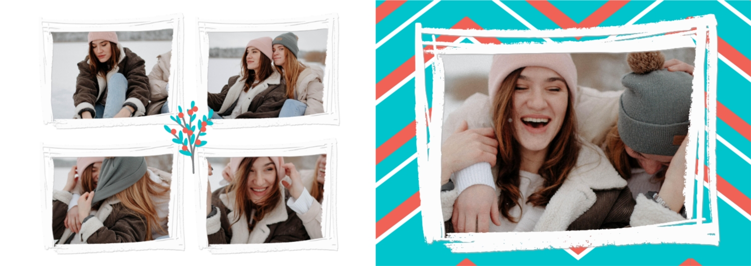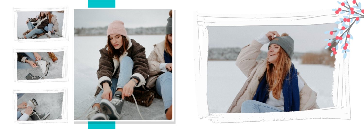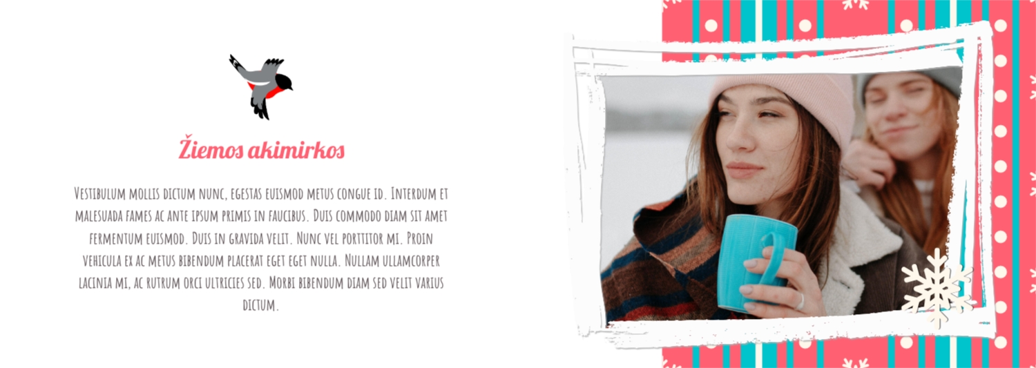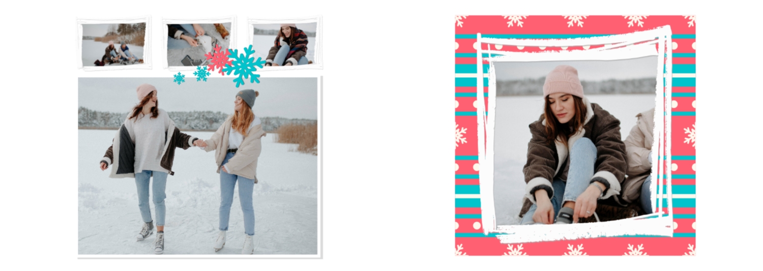 Nemokamas fotoknygos šablonas geriems prisiminimams apie Naujuosius metus, Kalėdas, žiemos šventes su šeima. Sukurkite didelės nuotraukų knygos išdėstymą su savo rankomis internetinėje nuotraukų knygų dizaineriu.