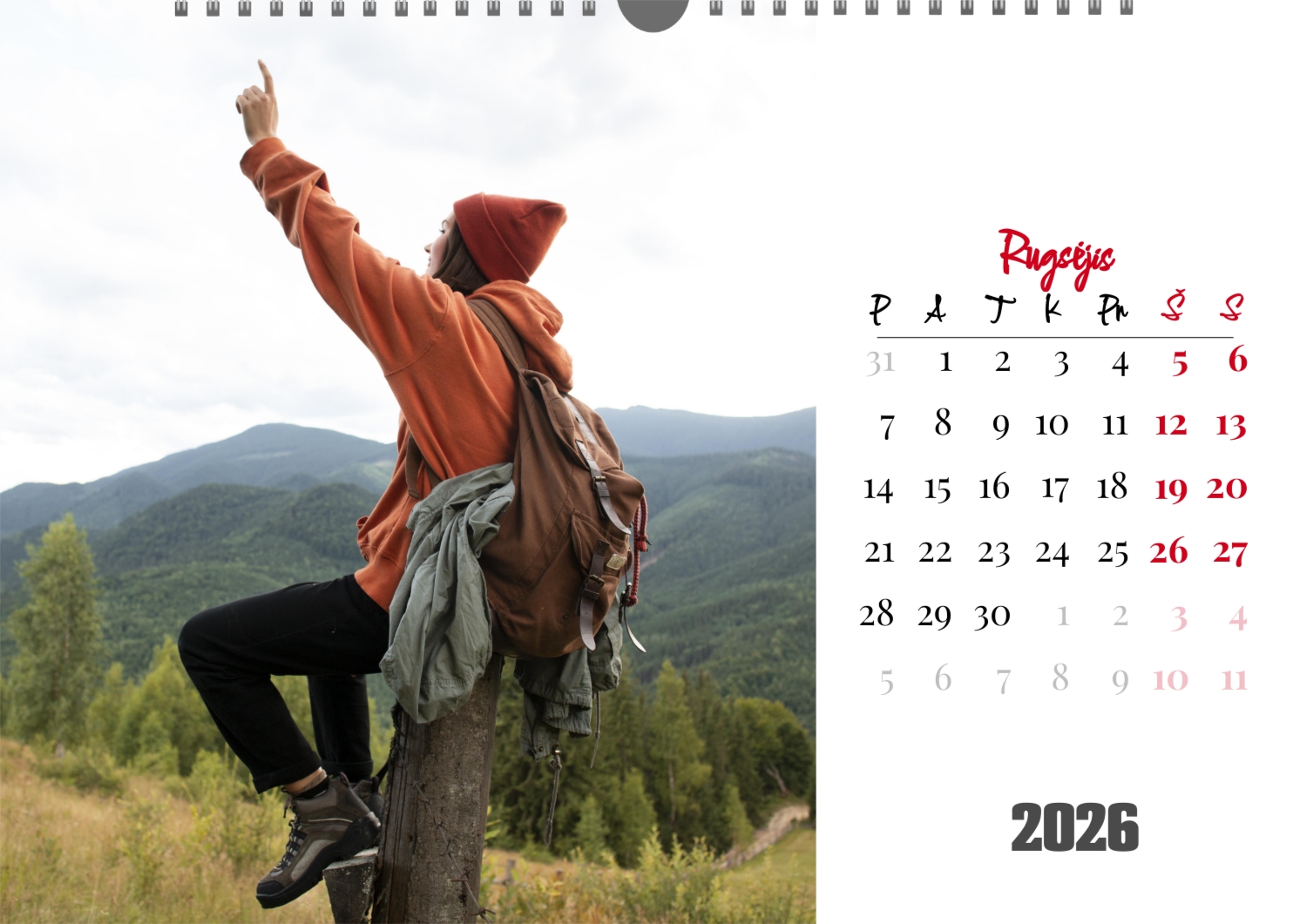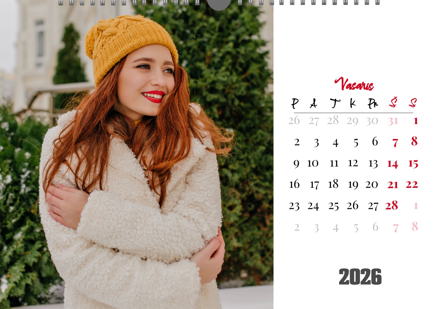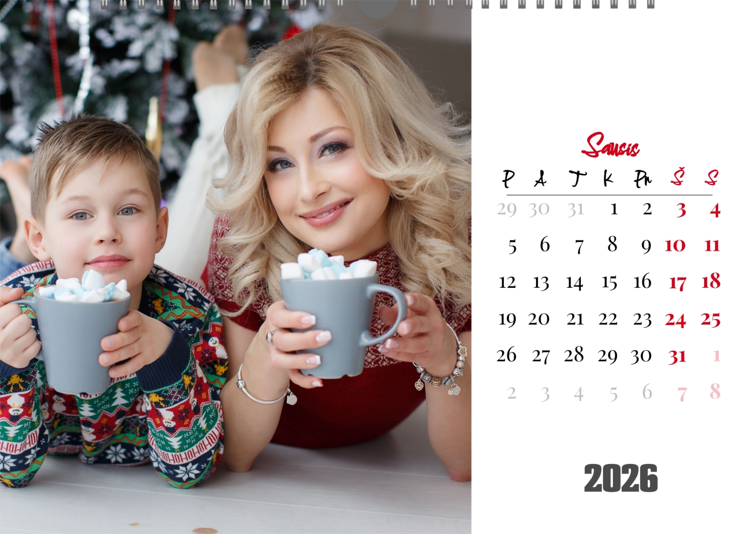 Nemokamas Naujųjų metų kalendoriaus šablonas su mielomis katėmis, skirtas pasveikinti draugus ir artimuosius. Sukurkite išdėstymą su savo rankomis kalendoriaus dizaineriu.