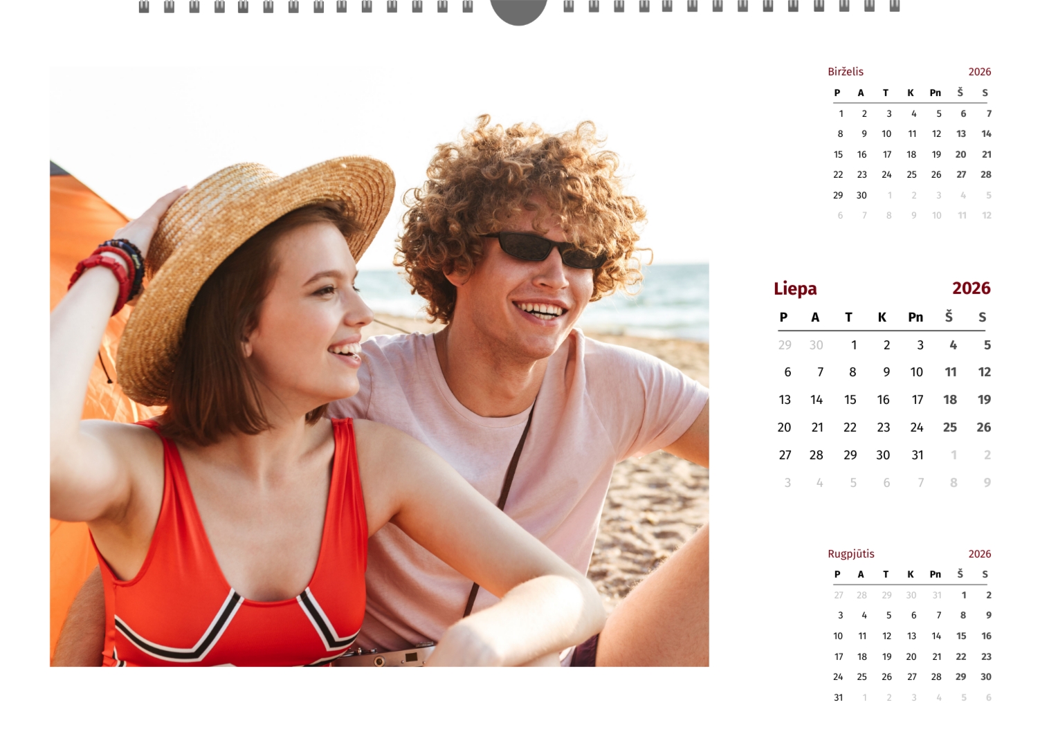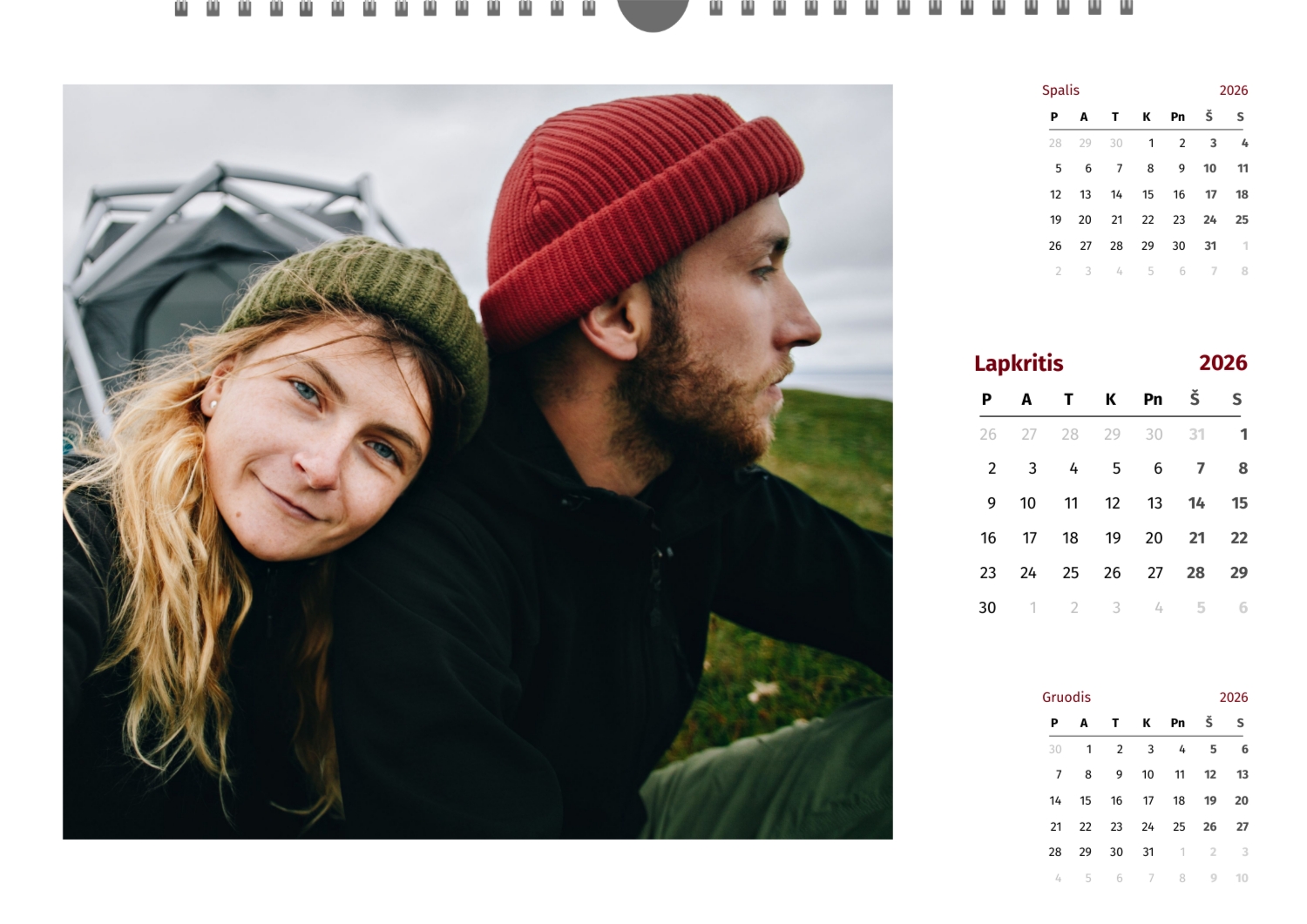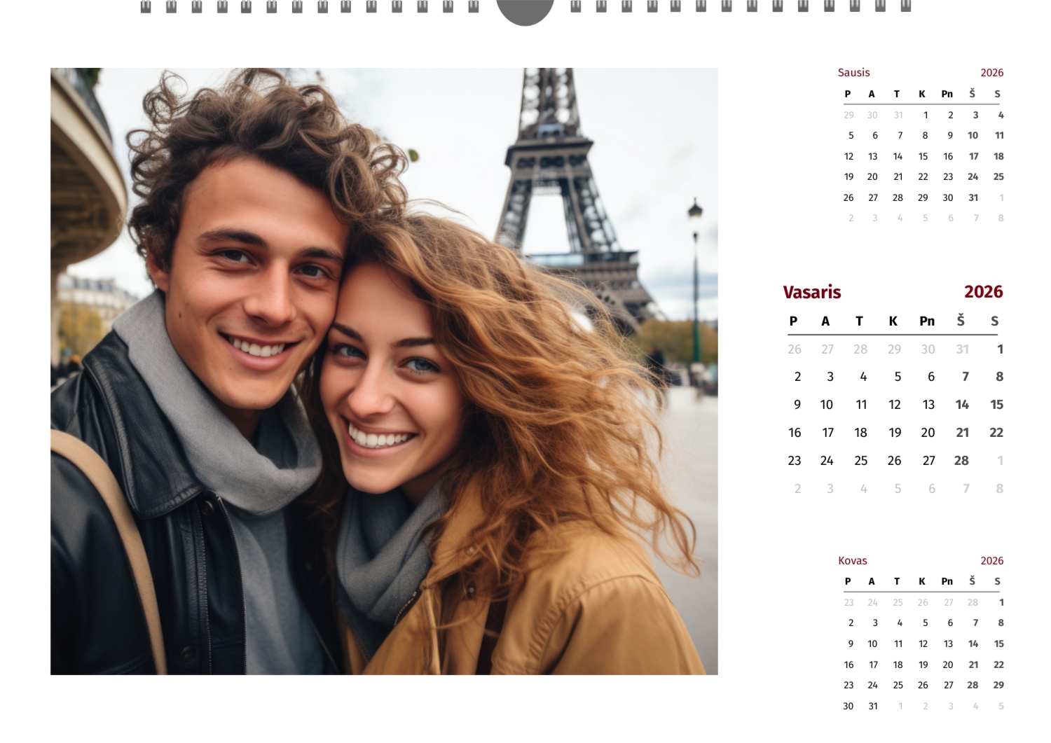 Nemokamas kalendoriaus šablonas su romantiška fotosesija mėgėjams. Sukurkite išdėstymą su savo rankomis internetiniame kalendoriaus dizaineryje.