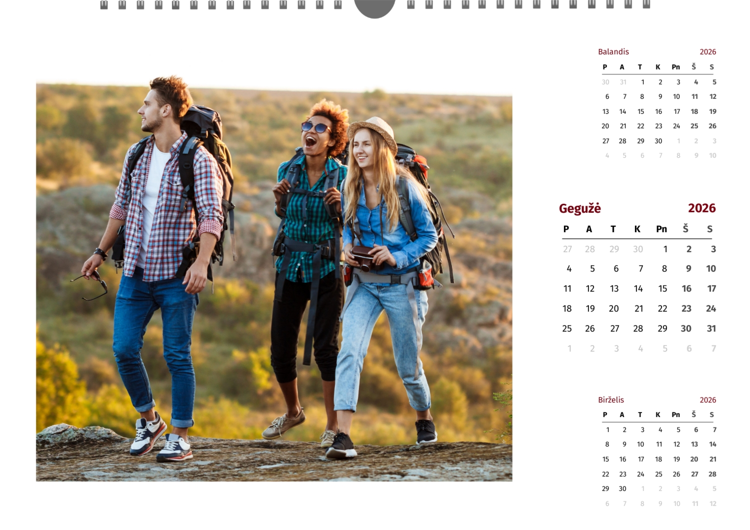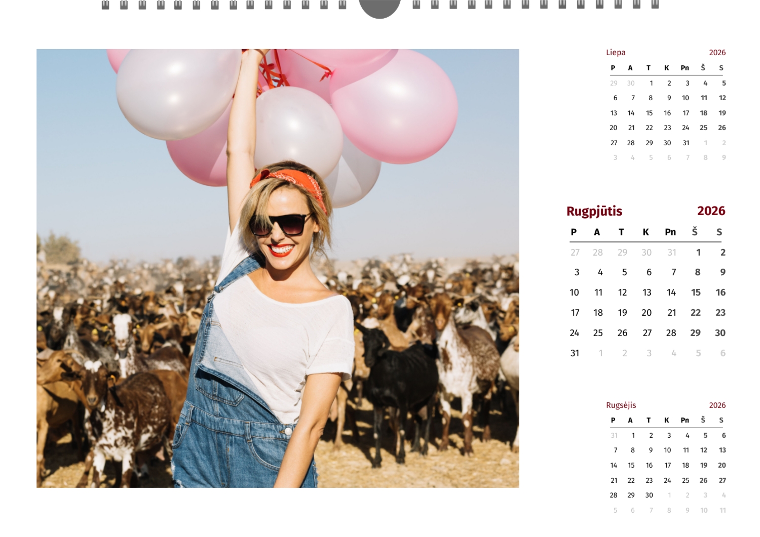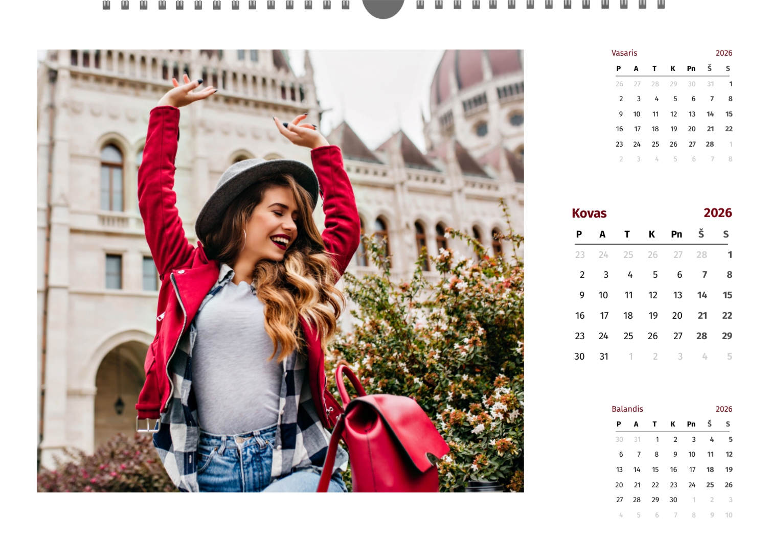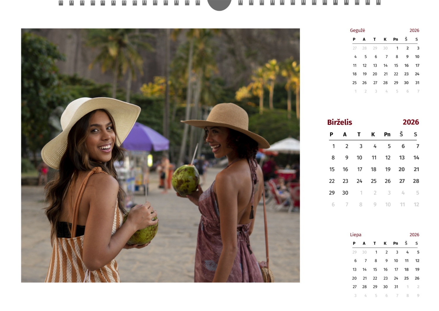 Nemokamas kalendoriaus šablonas su romantiška fotosesija mėgėjams. Sukurkite išdėstymą su savo rankomis internetiniame kalendoriaus dizaineryje.