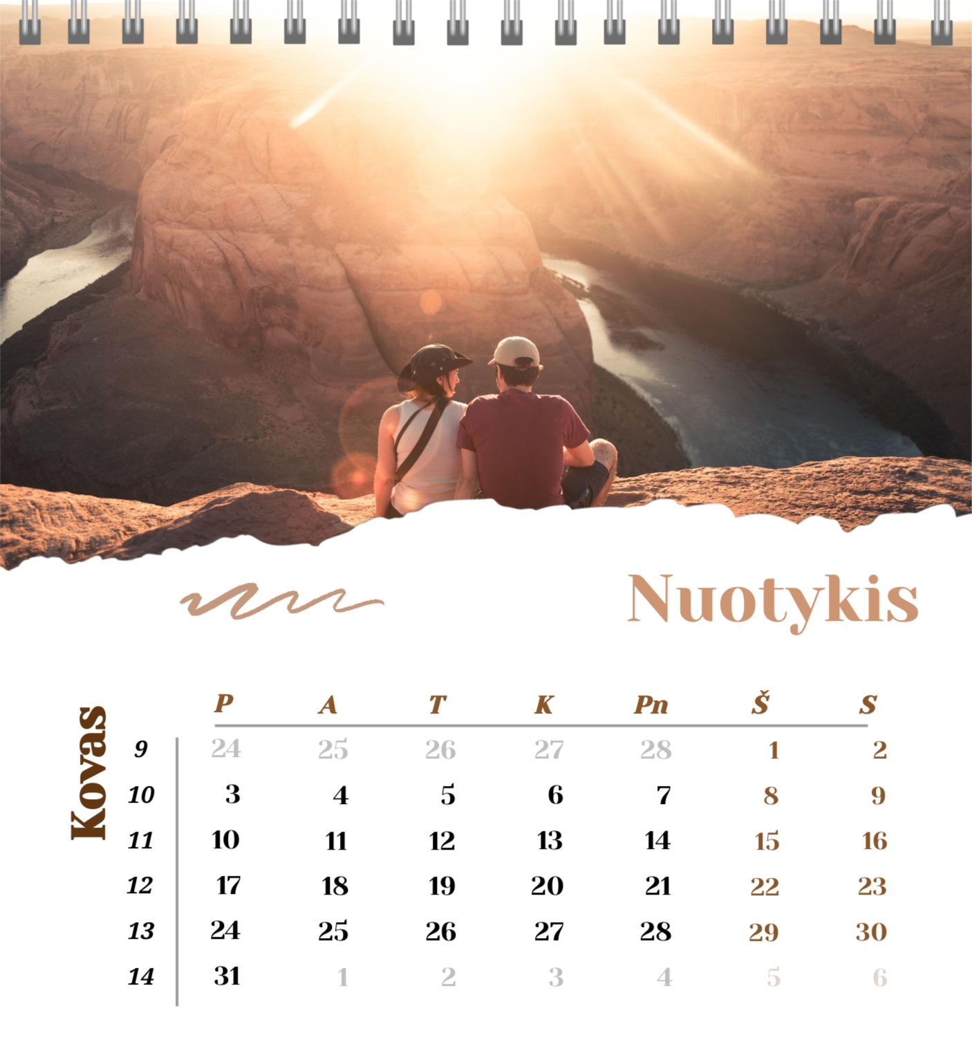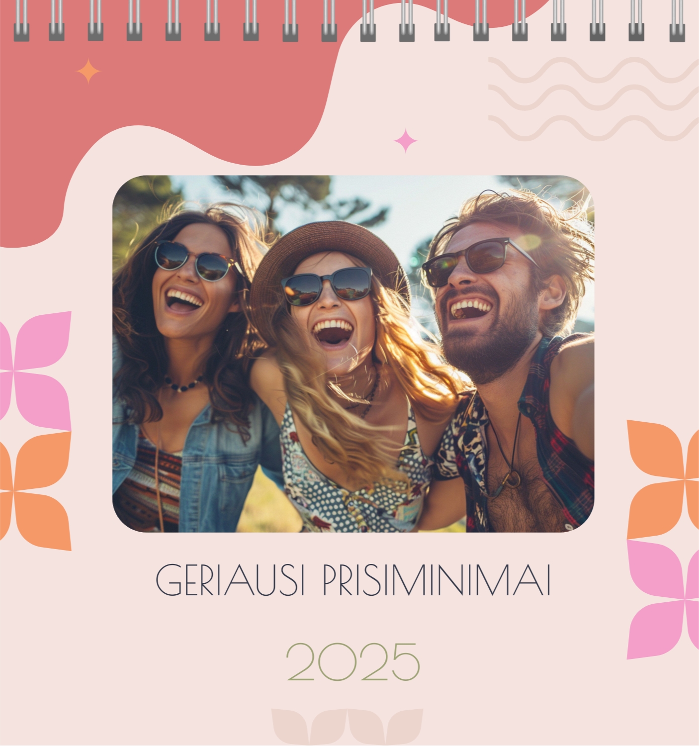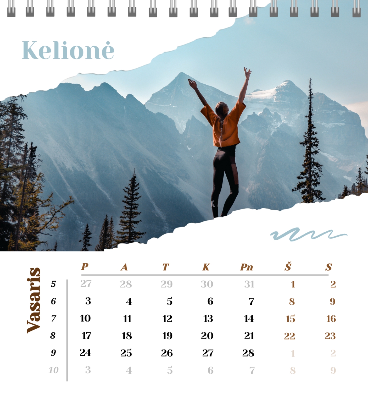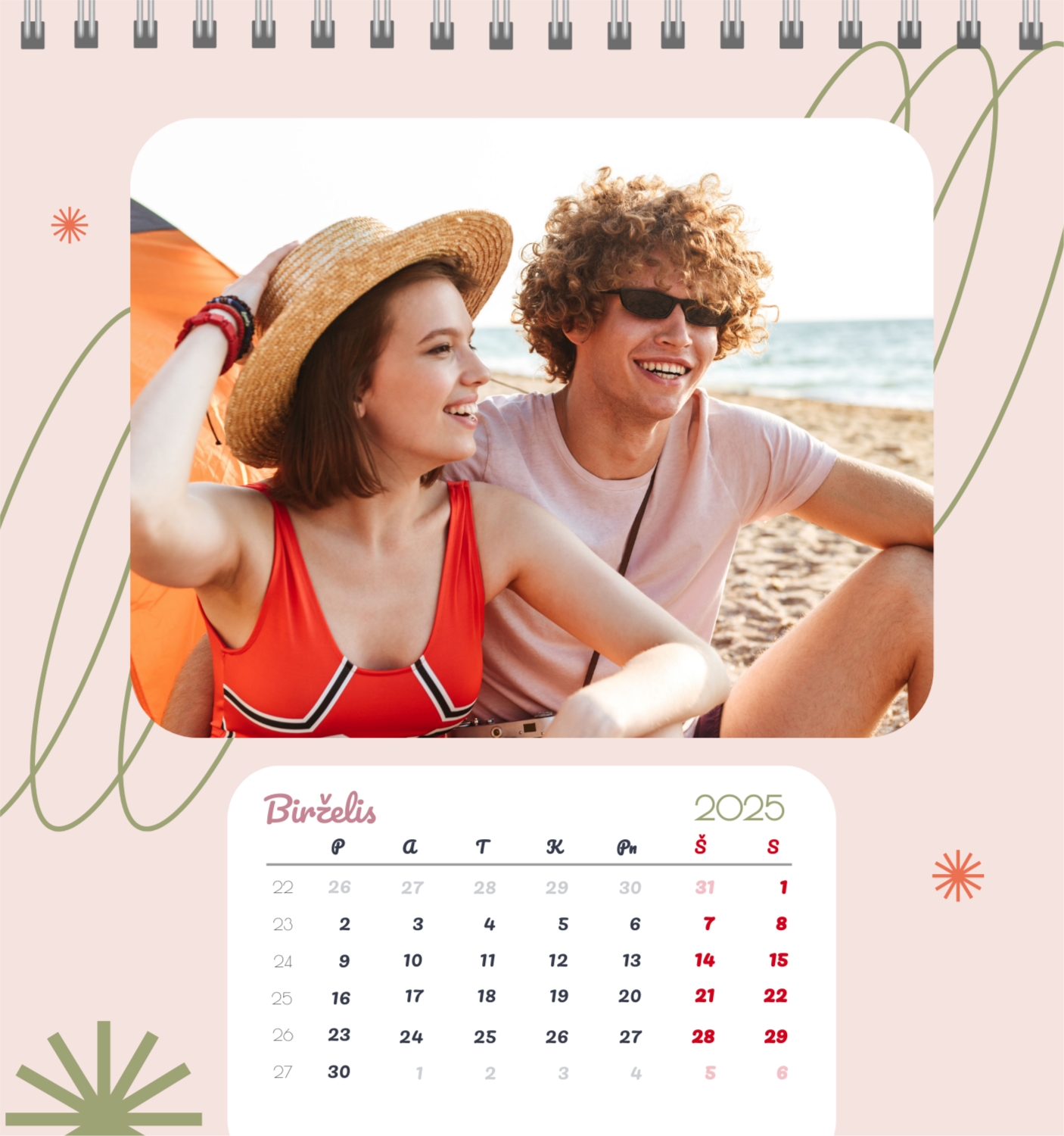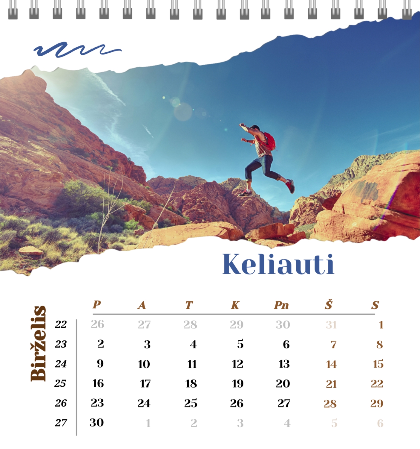 Nemokamas kalendoriaus šablonas su įsimintinomis kelionių, šeimos atostogų, atostogų akimirkomis. Sukurkite išdėstymą su savo rankomis internetiniame kalendoriaus dizaineryje.