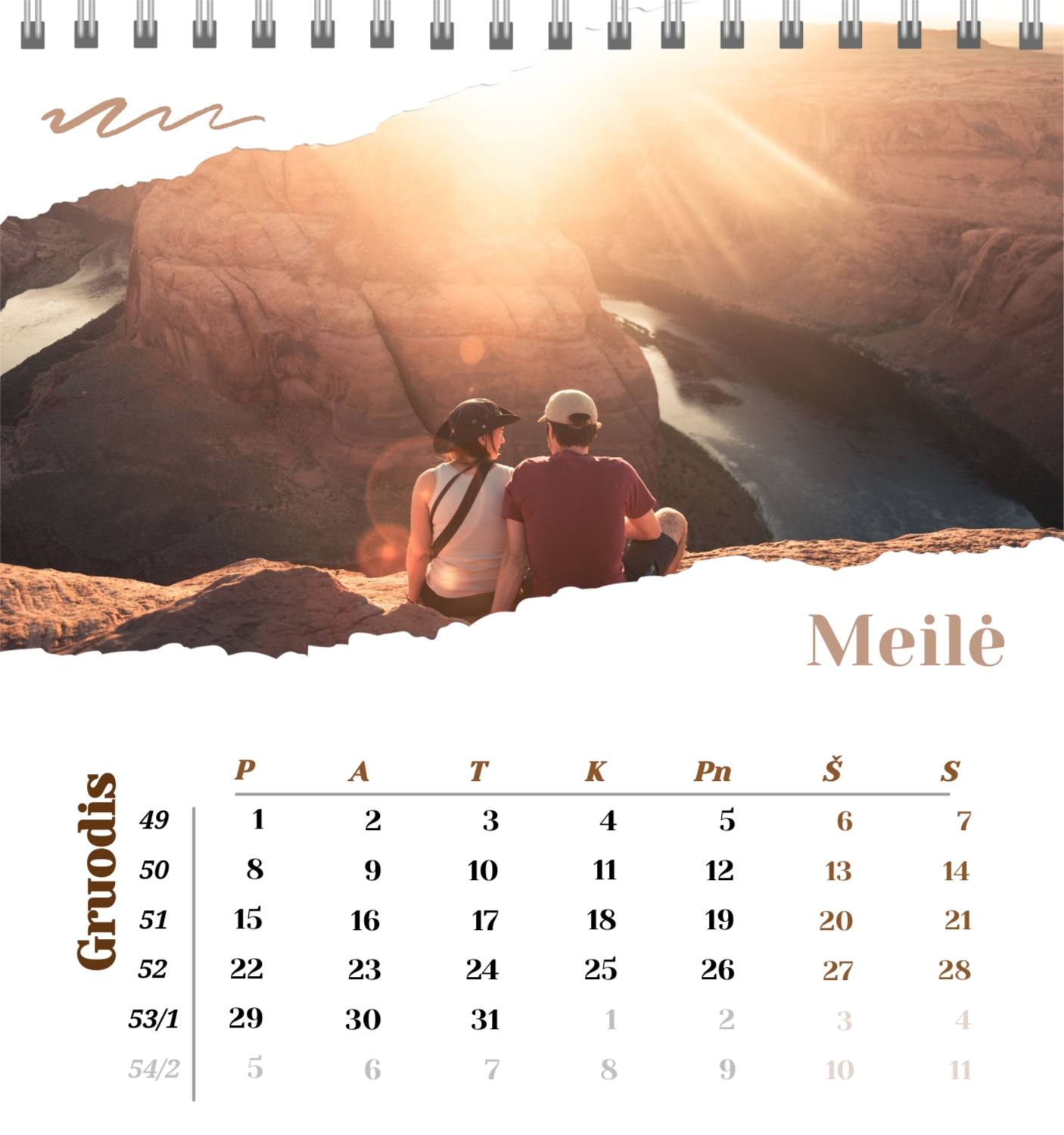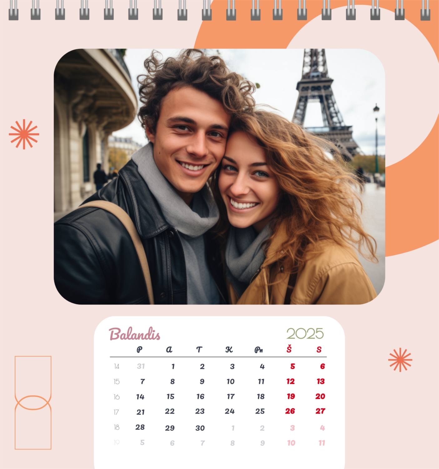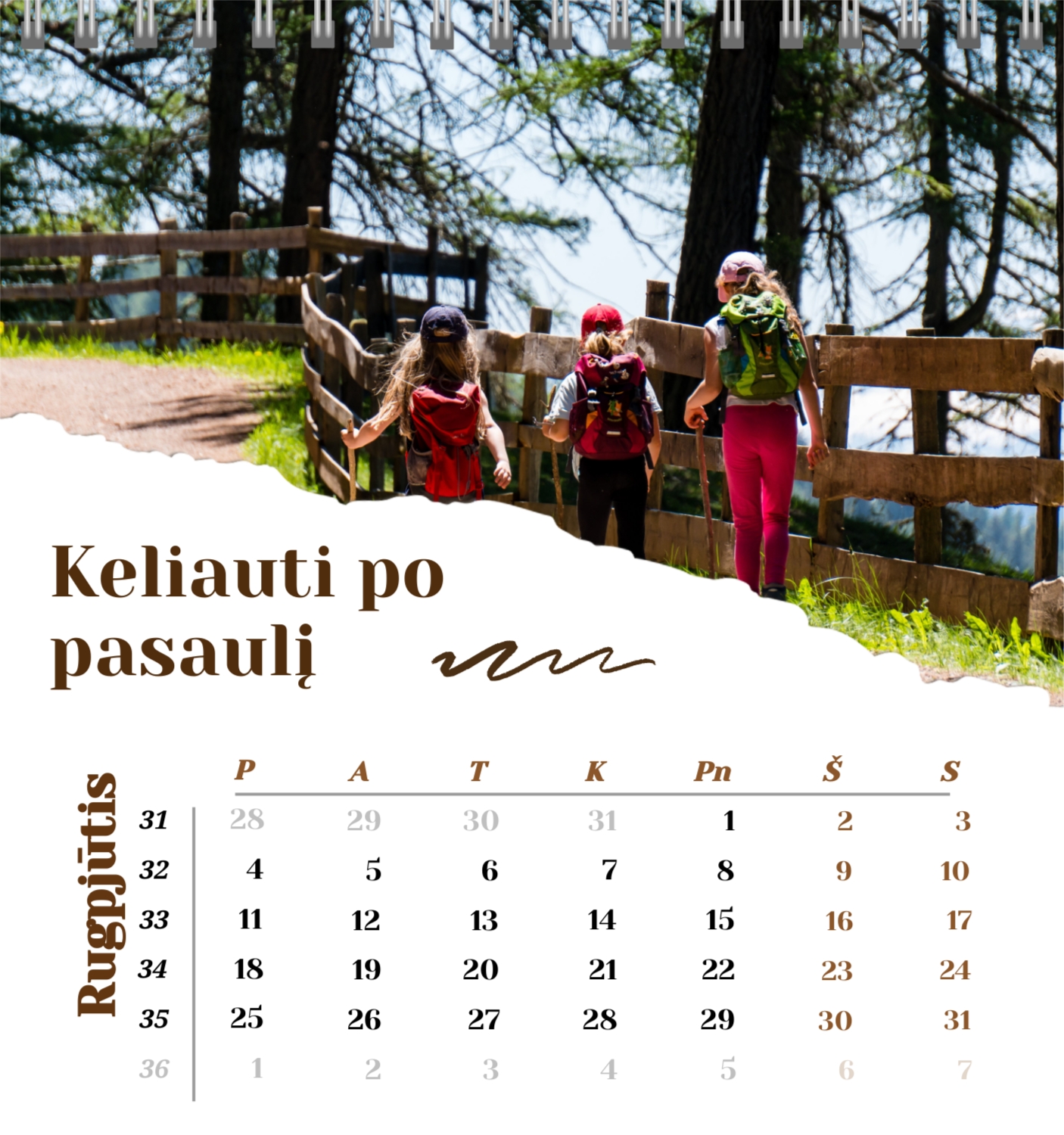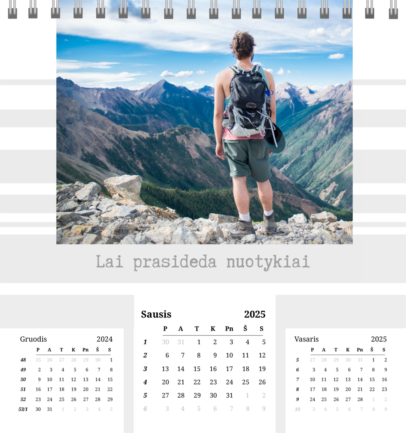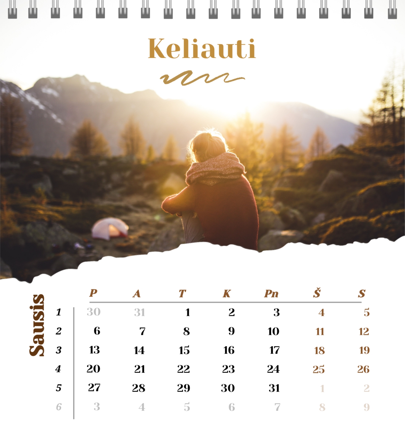 Nemokamas kalendoriaus šablonas su įsimintinomis kelionių, šeimos atostogų, atostogų akimirkomis. Sukurkite išdėstymą su savo rankomis internetiniame kalendoriaus dizaineryje.