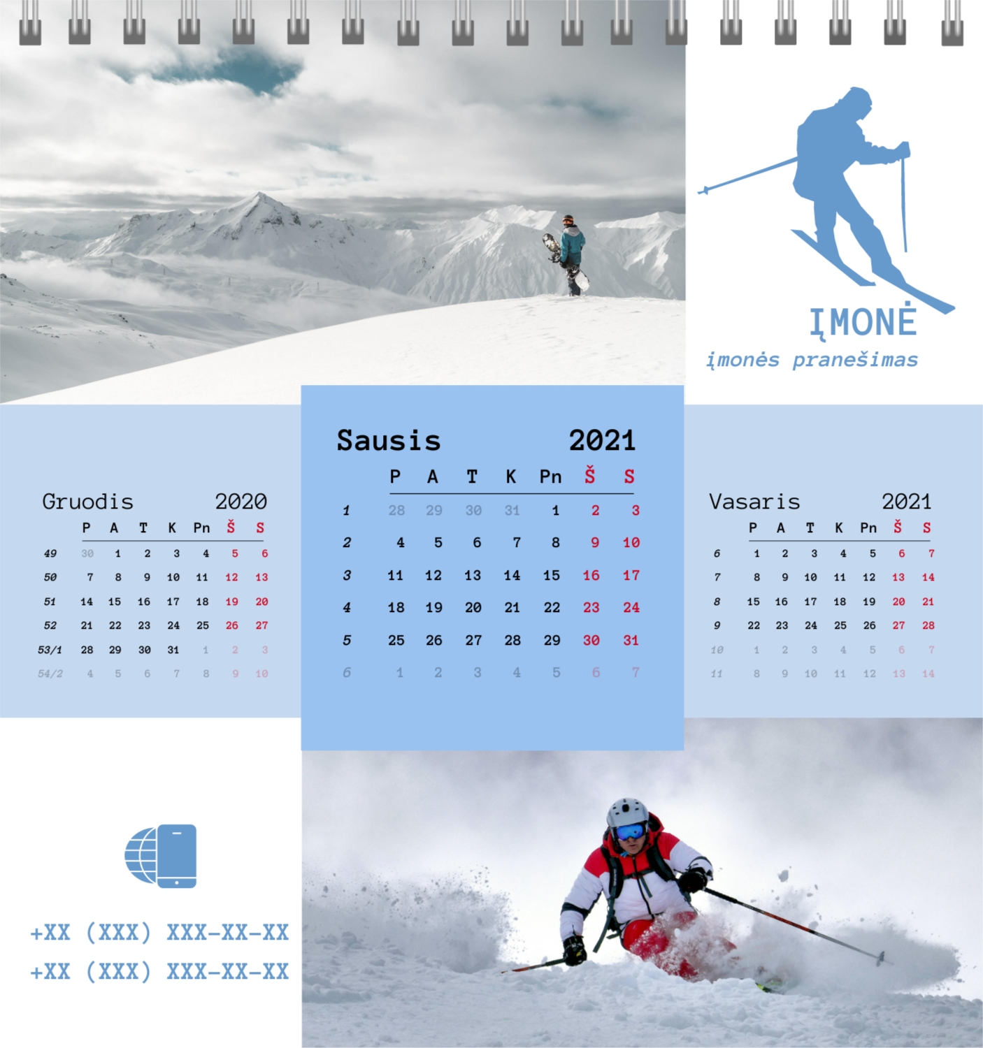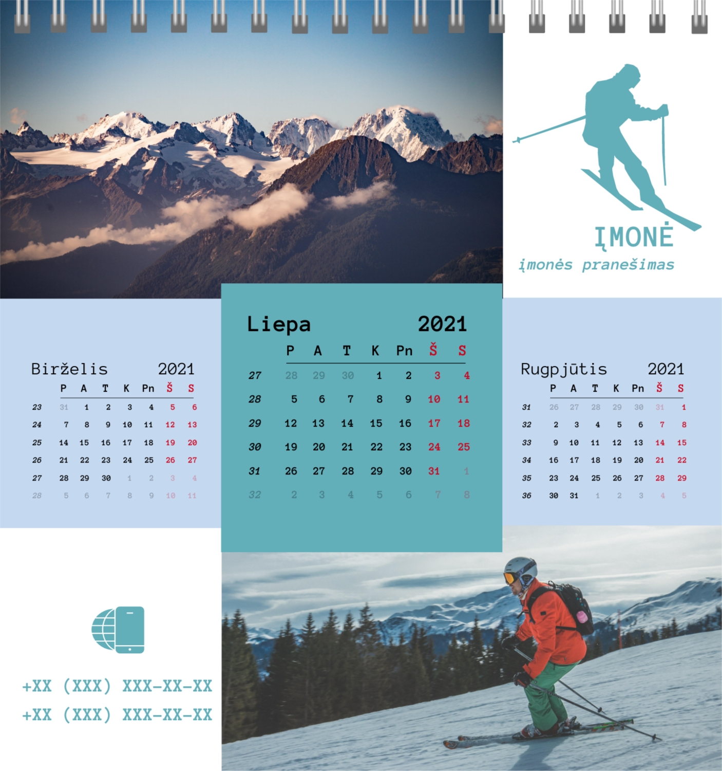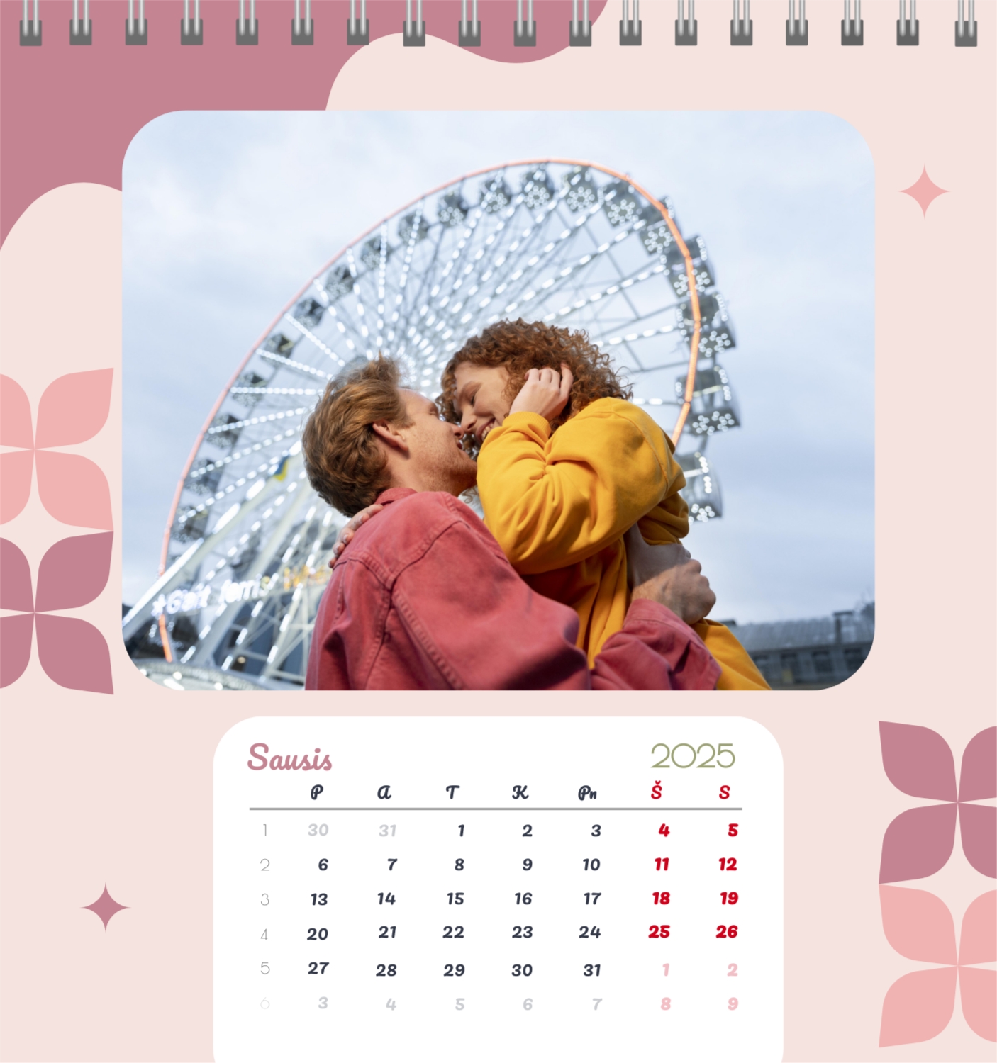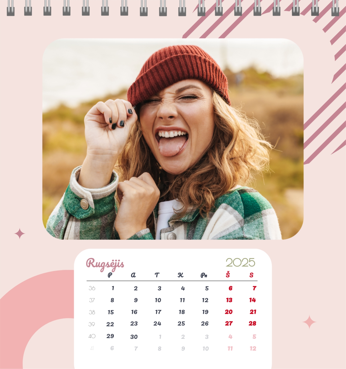 Nemokamas kalendoriaus šablonas su įsimintinomis kelionių, šeimos atostogų, atostogų akimirkomis. Sukurkite išdėstymą su savo rankomis internetiniame kalendoriaus dizaineryje.