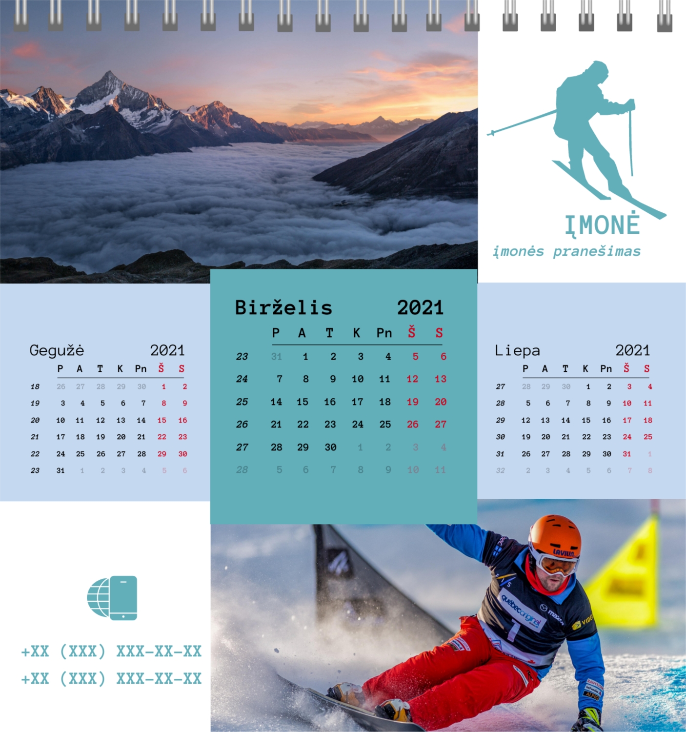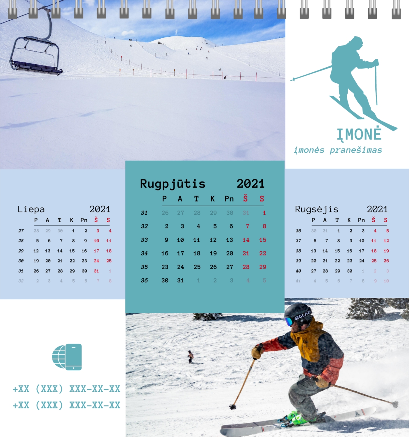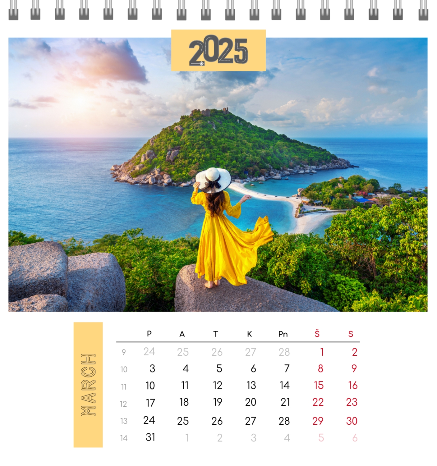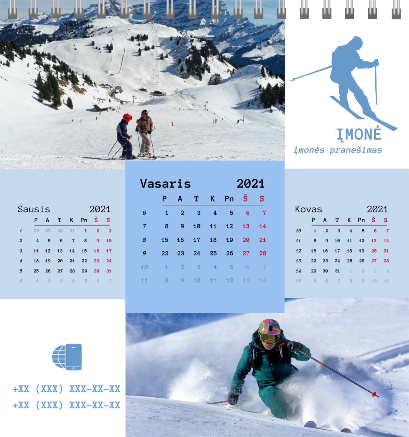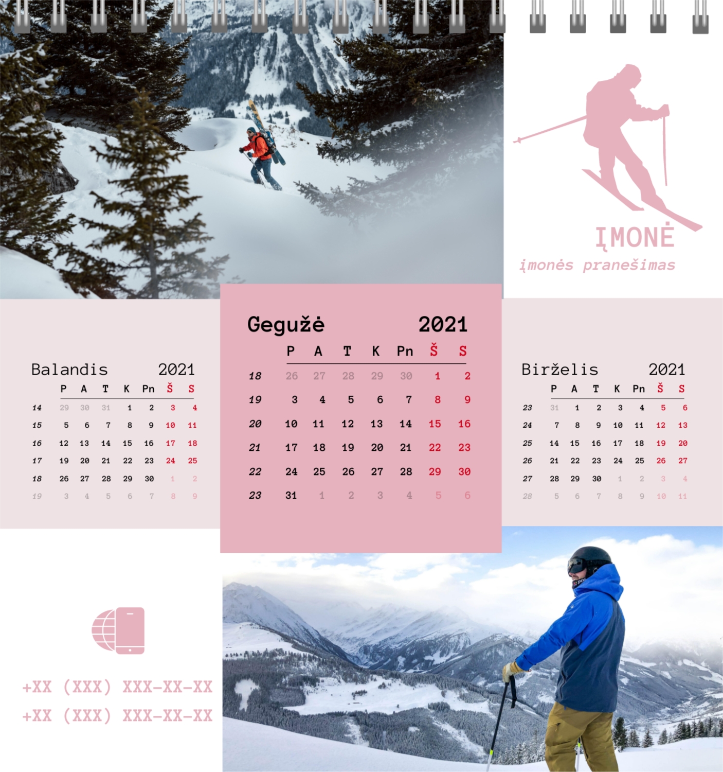 Nemokamas kalendoriaus šablonas su įsimintinomis kelionių, šeimos atostogų, atostogų akimirkomis. Sukurkite išdėstymą su savo rankomis internetiniame kalendoriaus dizaineryje.