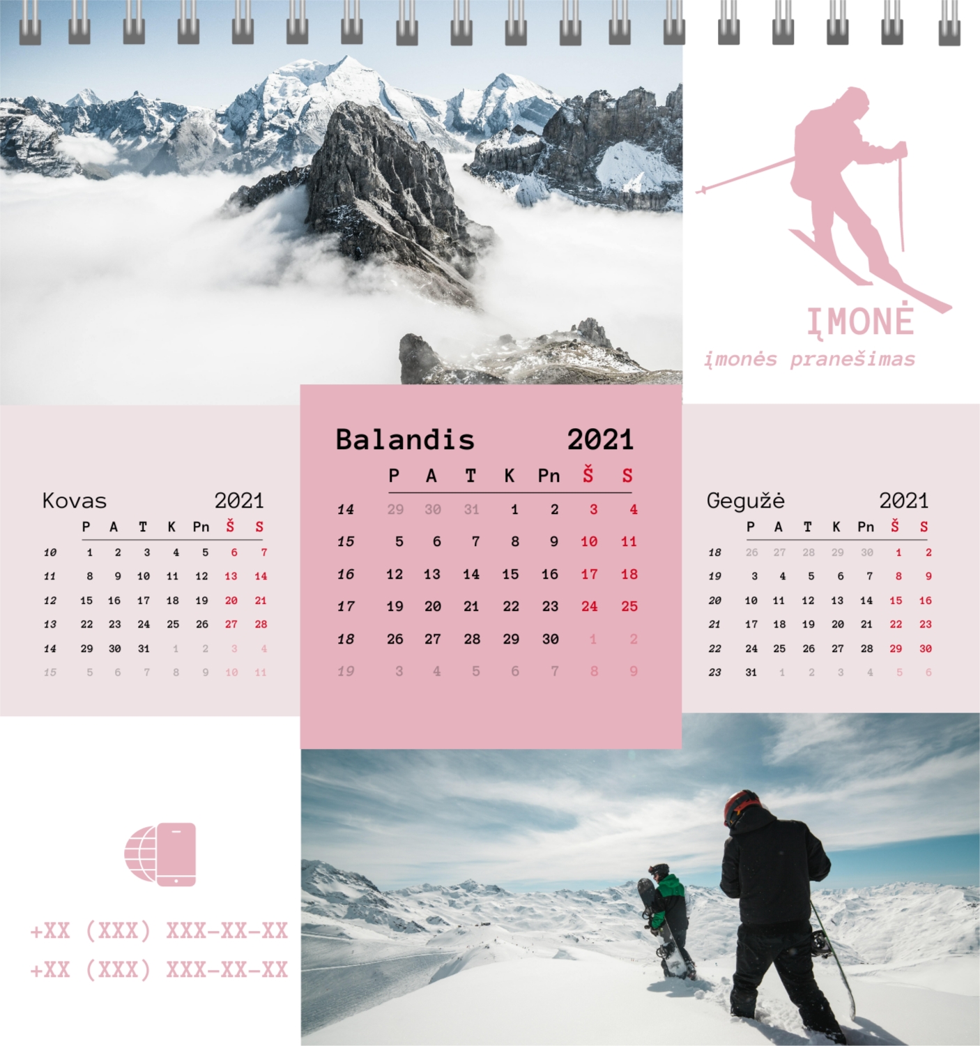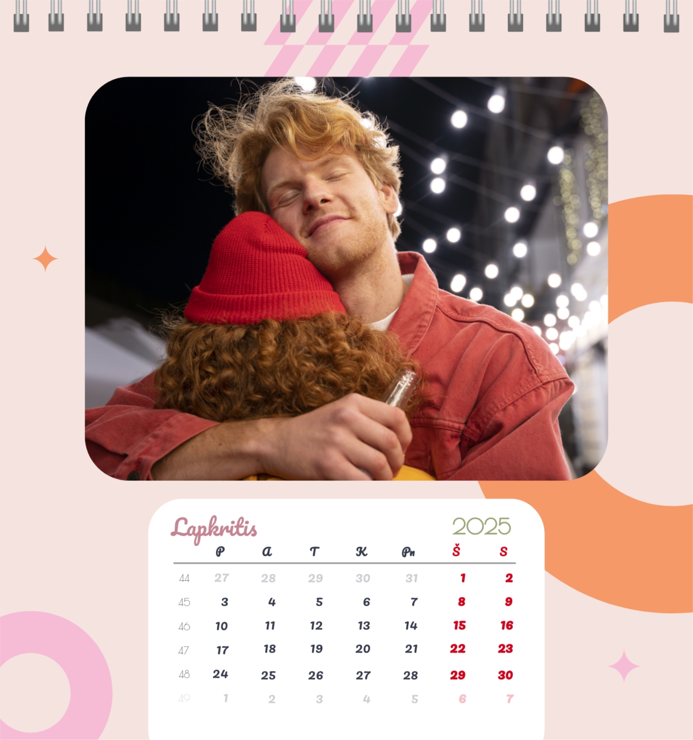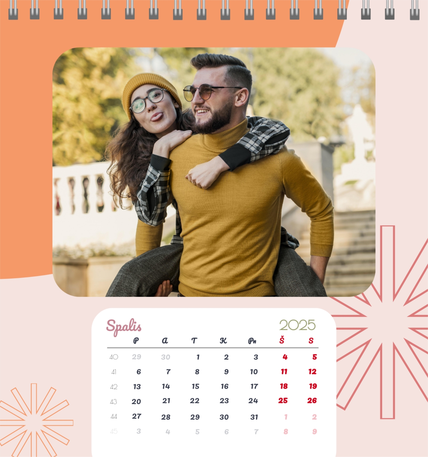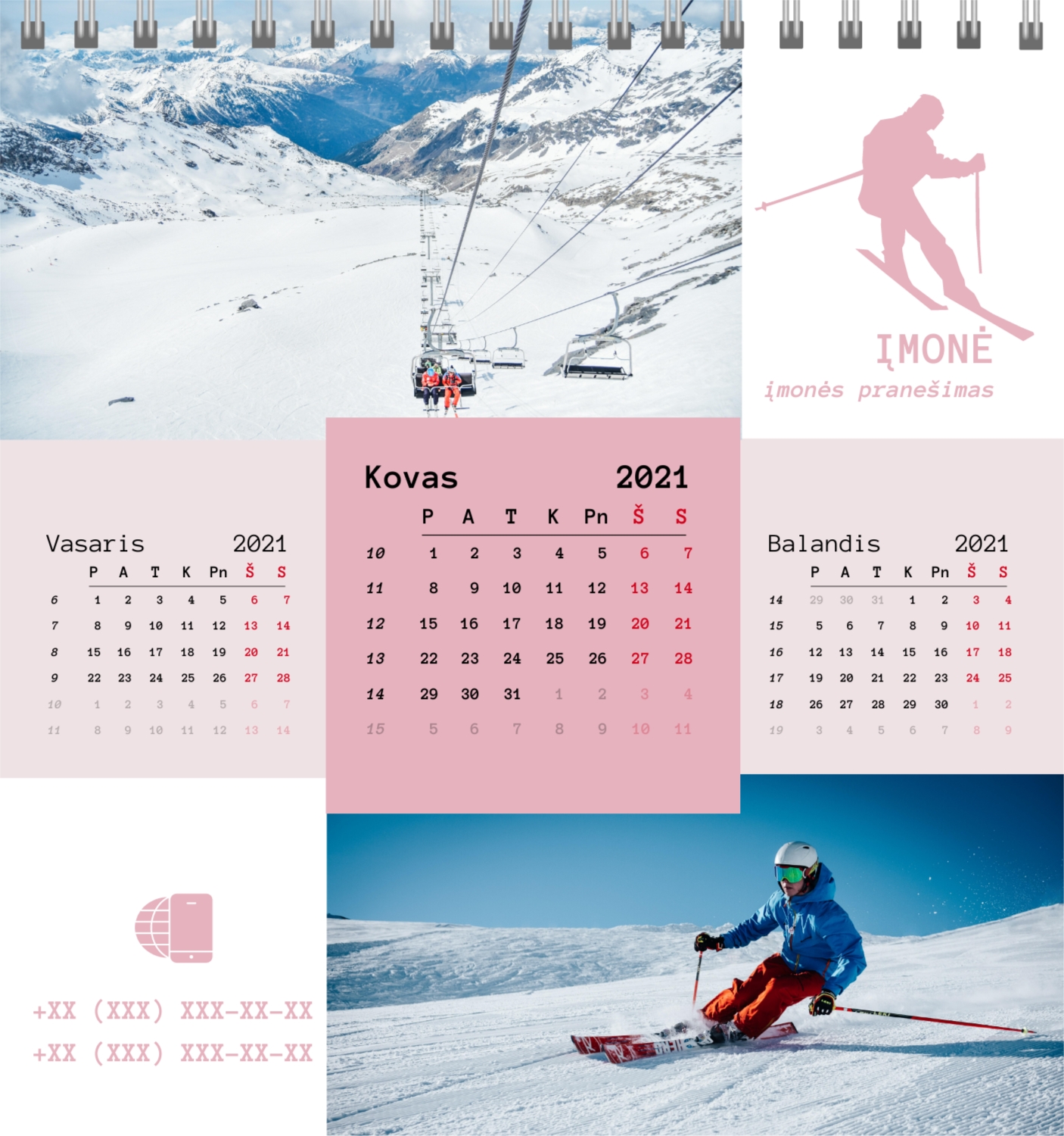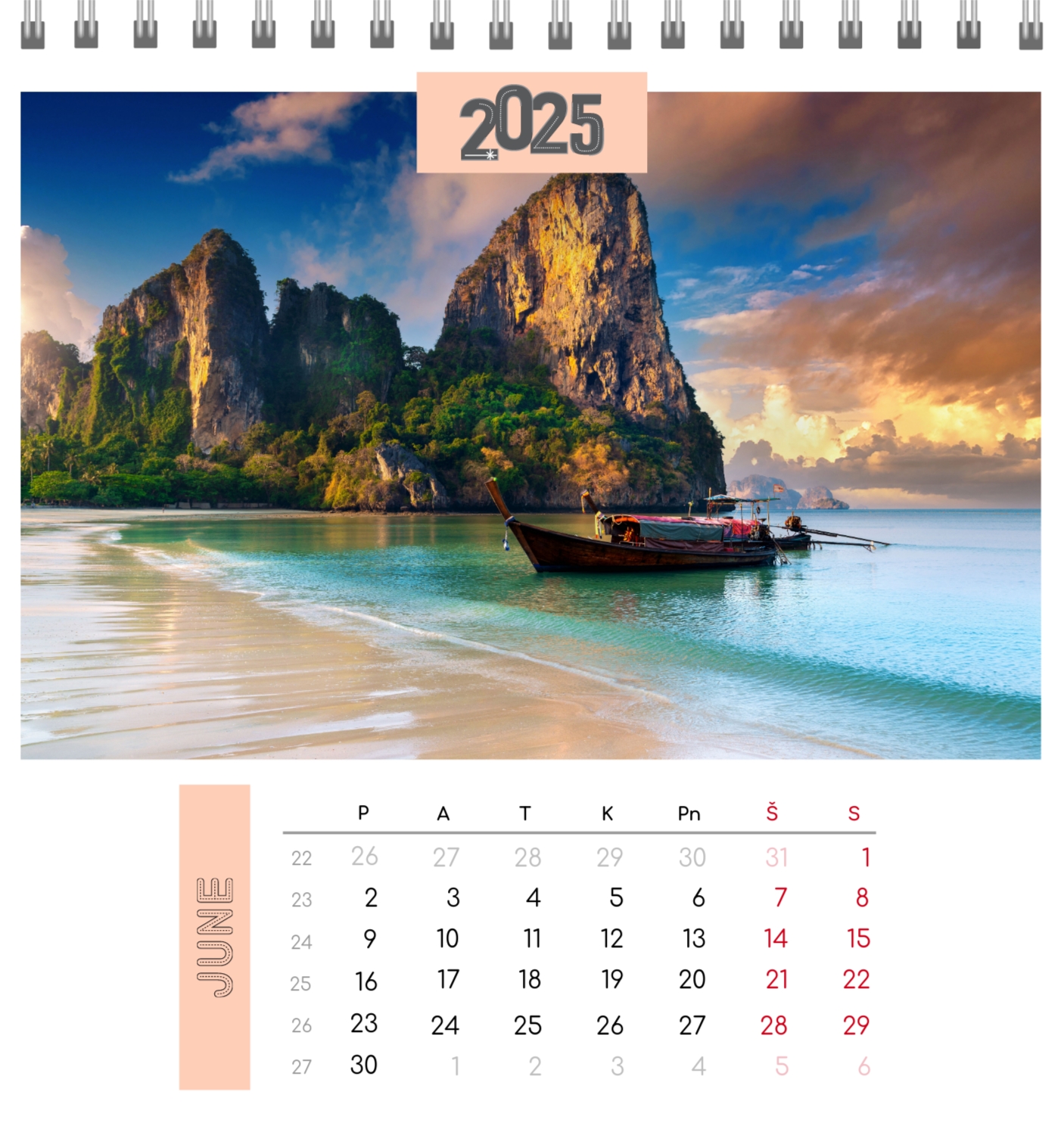 Nemokamas kalendoriaus šablonas su įsimintinomis kelionių, šeimos atostogų, atostogų akimirkomis. Sukurkite išdėstymą su savo rankomis internetiniame kalendoriaus dizaineryje.