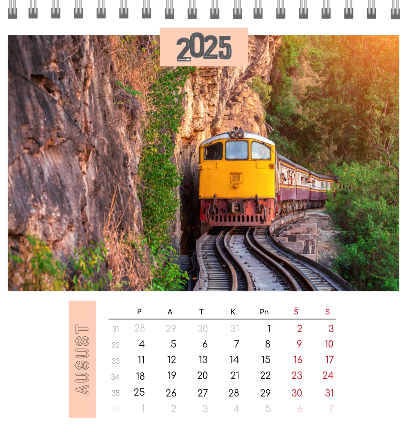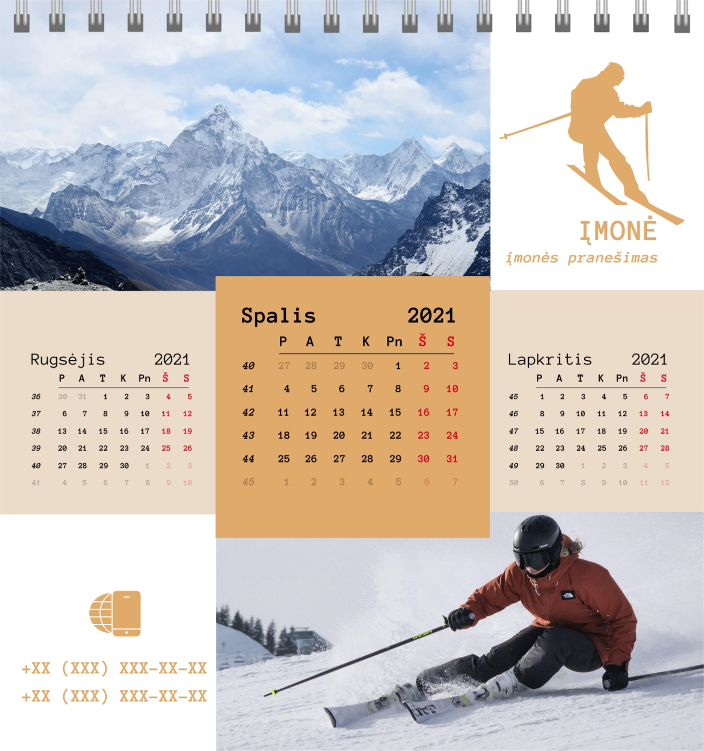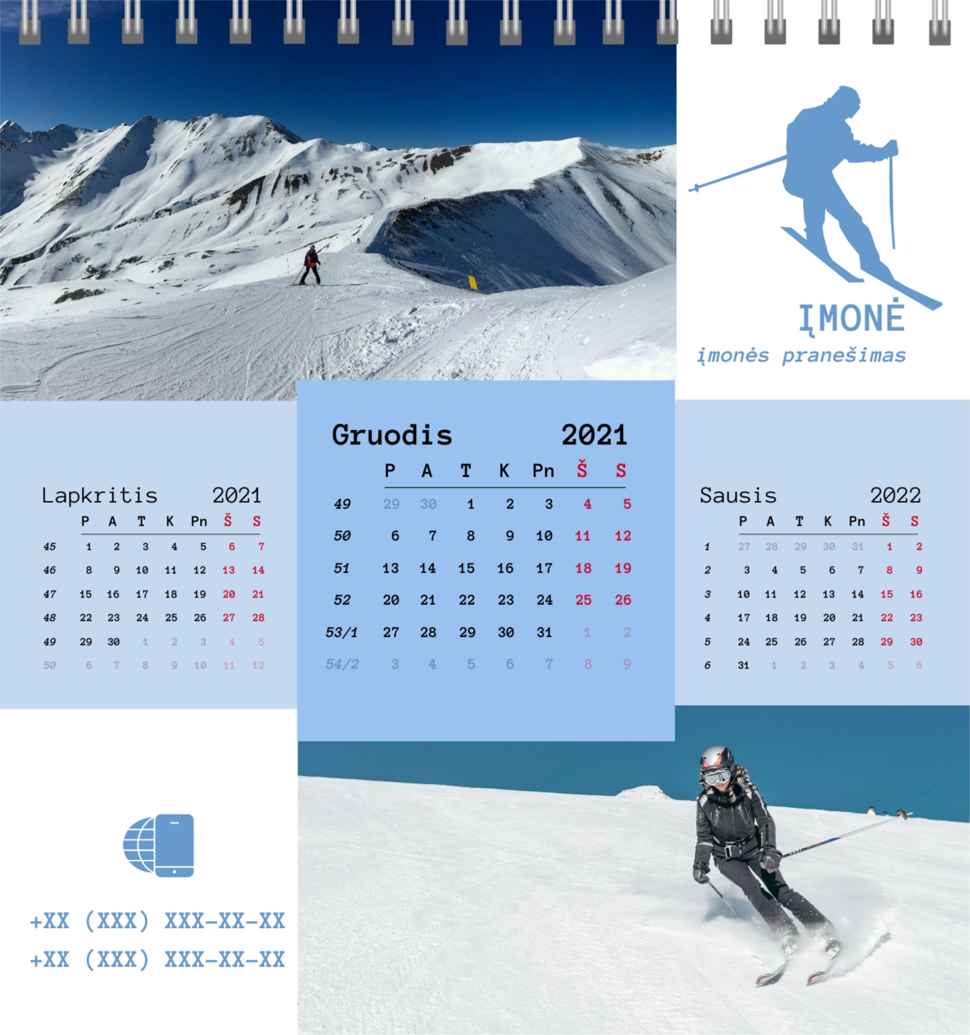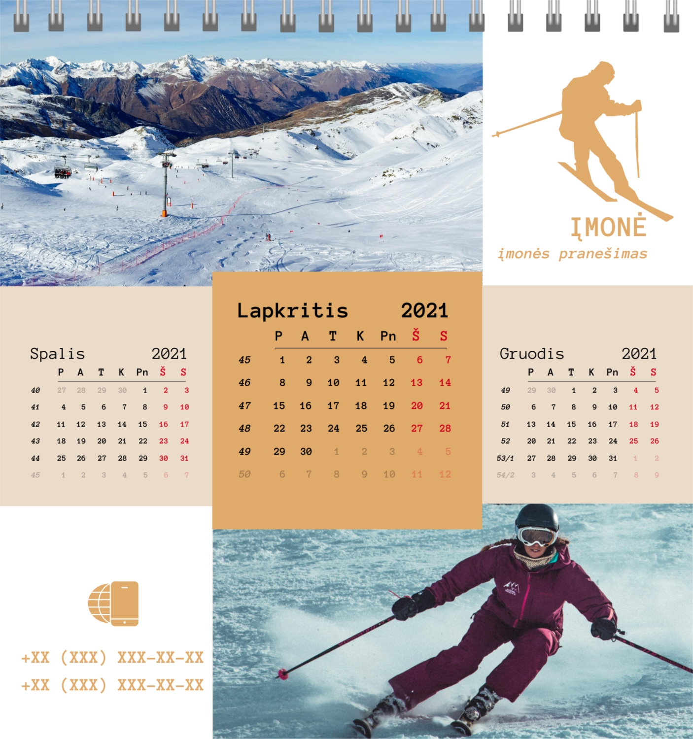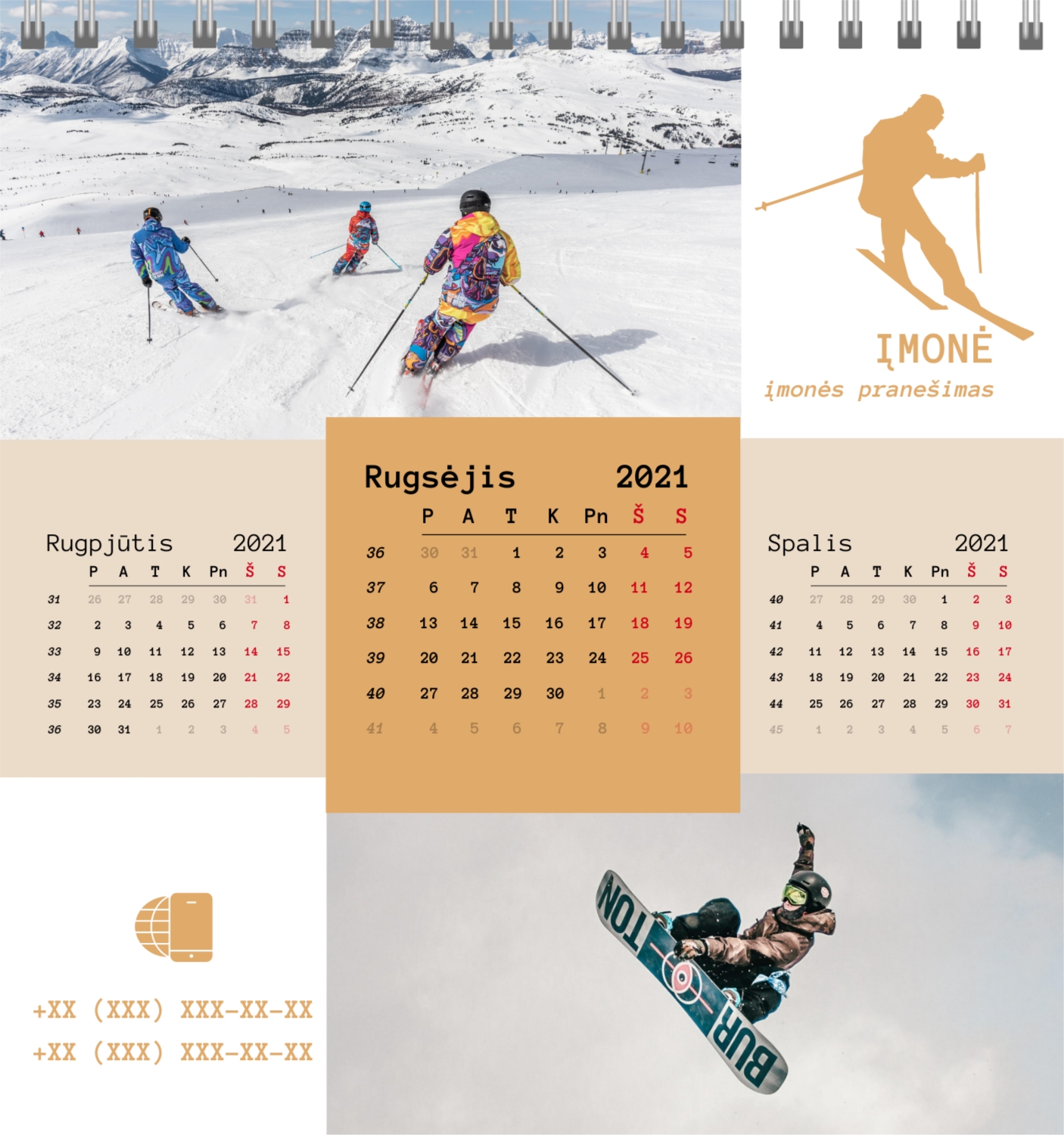 Nemokamas kalendoriaus šablonas su įsimintinomis kelionių, šeimos atostogų, atostogų akimirkomis. Sukurkite išdėstymą su savo rankomis internetiniame kalendoriaus dizaineryje.