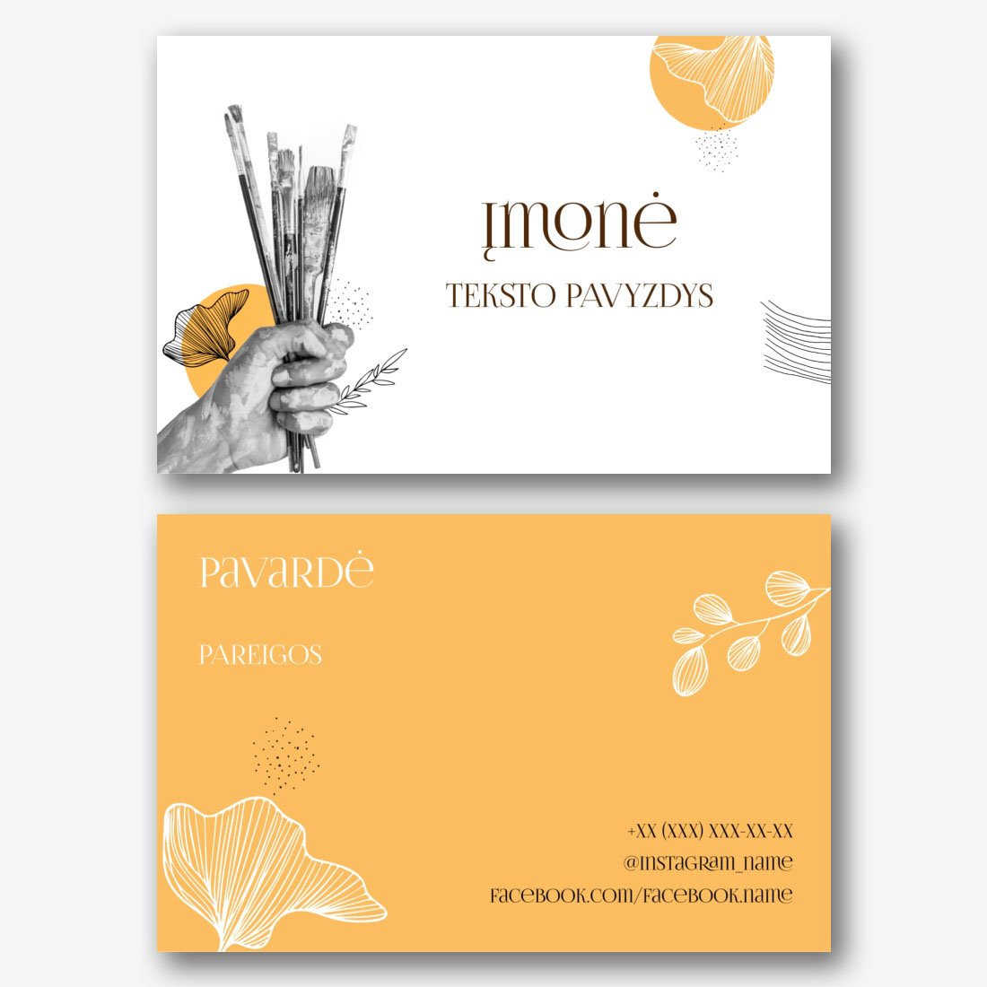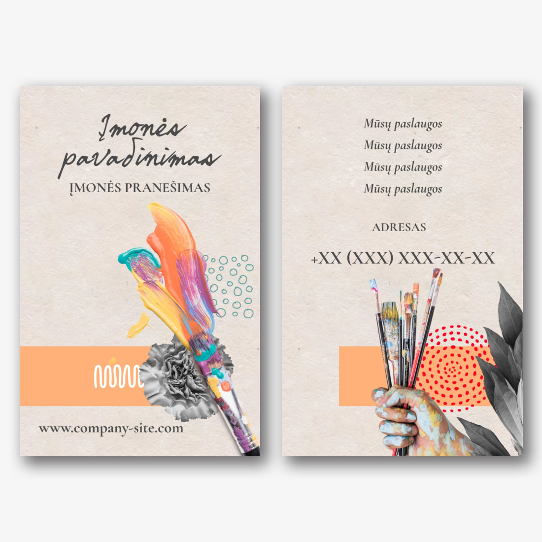 Nemokamas vizitinės kortelės Šablonas meno mokyklai, menininkams, piešimo ir tapybos kursams. Sukurkite išdėstymą su savo rankomis vizitinės kortelės dizaineriu.