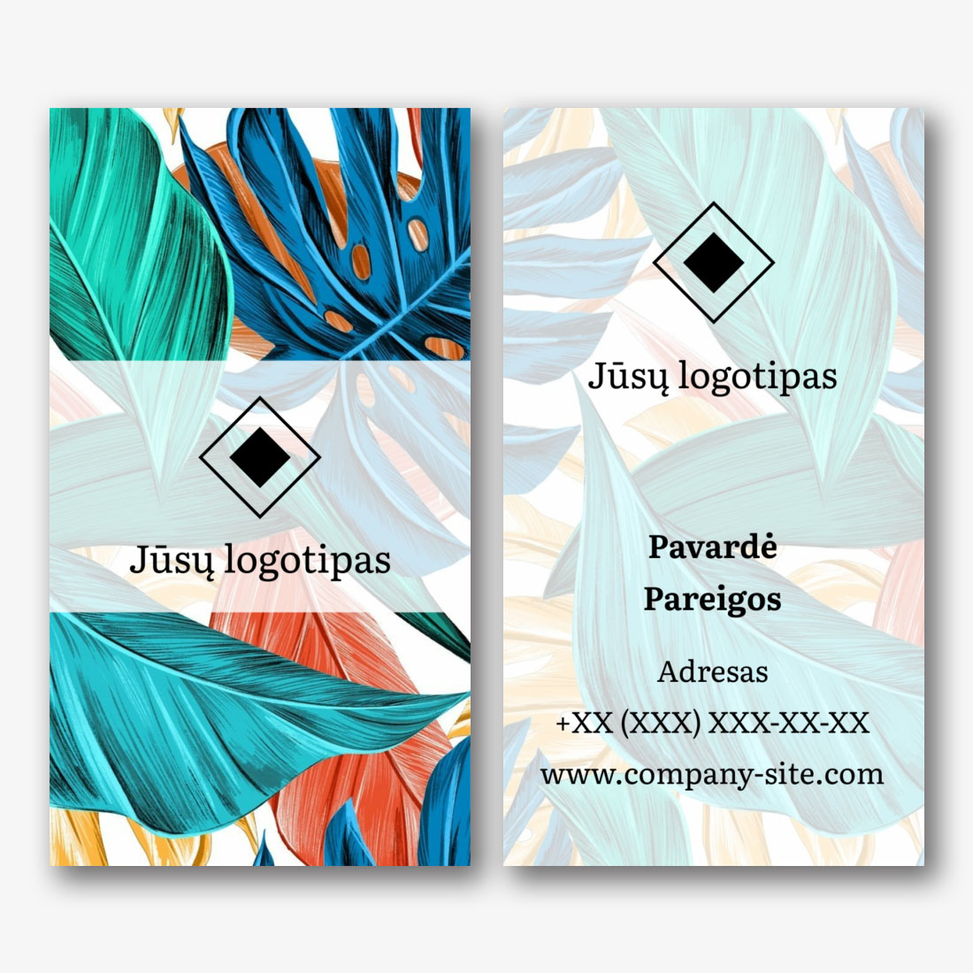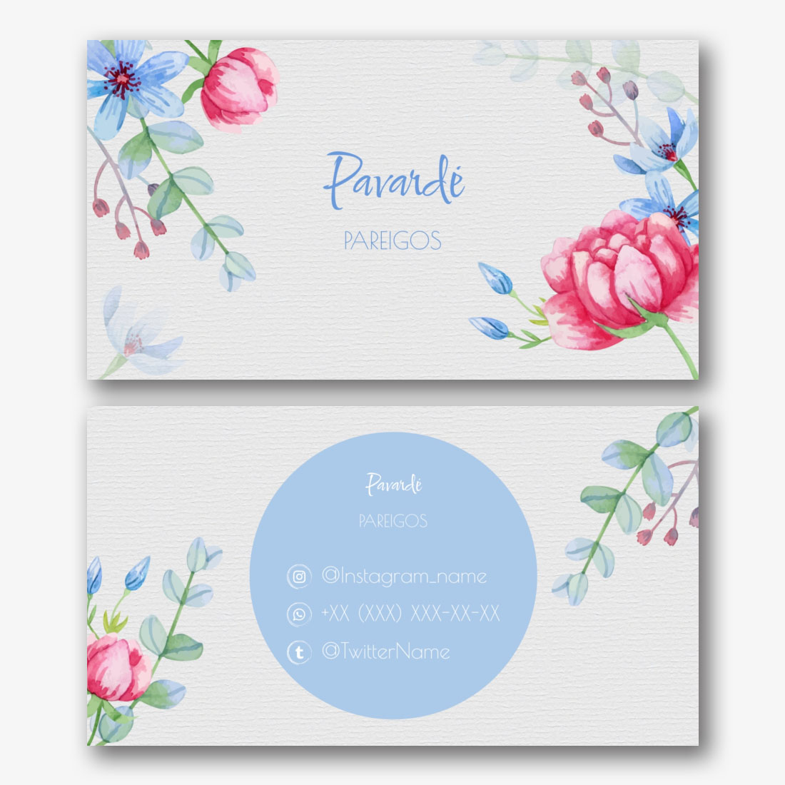 Nemokamas klasikinės vizitinės kortelės modelis fitodizaineriui, floristui ar gėlių pardavėjui. Ryškus ir gražus gėlių puokštė kartu su atogrąžų augalų elementais apibūdina įmonę, kuri užsiima fitodizainu, ir žino, kaip sujungti amžinai žaliuojančius augalus su gėlėmis, sukuriant unikalias kompozicijas. Vizitinės kortelės Šablonas subtiliomis rožinėmis spalvomis-gražus ir unikalus, pabrėžs jūsų individualų stilių ir originalumą.