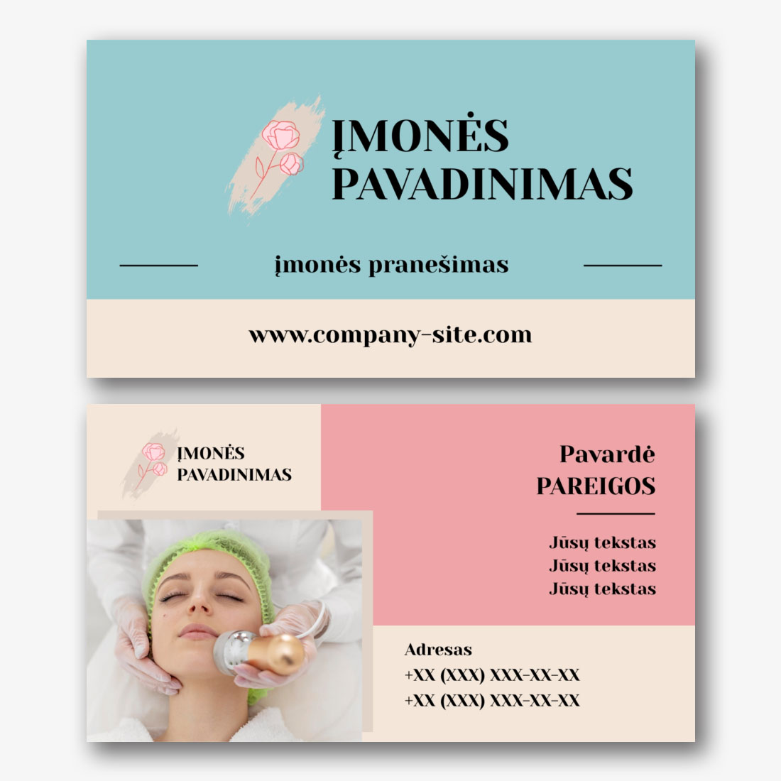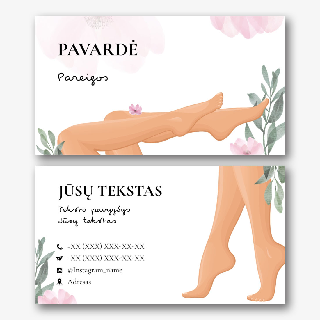 Masažuotojo vizitinės kortelės, manikiūro meistro, grožio studijos šablonas yra universalus dizainas, tinkamas įvairioms grožio ir sveikatos profesijoms. Tai apima minimalistinį dizainą, malonias spalvas ir glaustą šriftą. Masažuotojo vizitinės kortelės šabloną, manikiūro meistrą, grožio studiją galima naudoti internetiniame dizaineryje. Norėdami tai padaryti, pasirinkite tinkamą dizainą ir pridėkite savo kontaktinius duomenis. Paruošta vizitinė kortelė atrodys profesionaliai ir patraukliai, o tai padės pritraukti potencialių klientų dėmesį. Vizitinės kortelės šablono naudojimas padės sukurti vieningą ir gražią reklaminės medžiagos dizaino stilių.