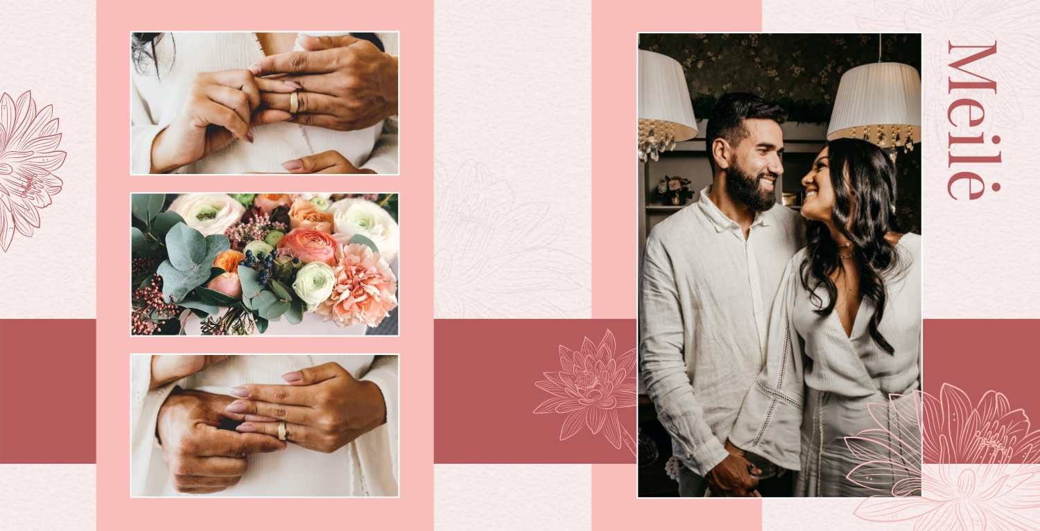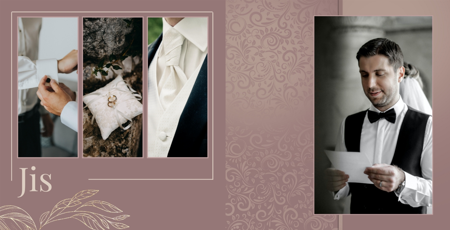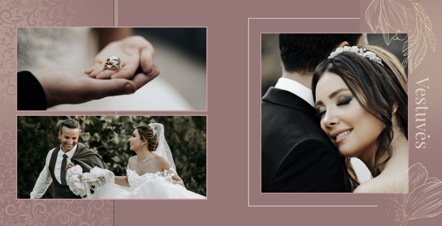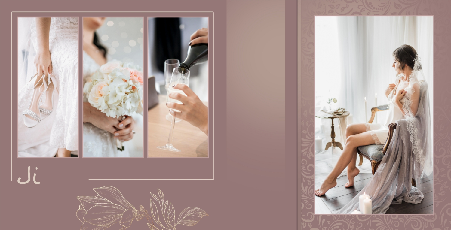 Vestuvių fotografijų fotoknygos šablonas yra paruoštas dizainas, kurį galite naudoti internetiniame dizaineryje, kad sukurtumėte savo unikalų vestuvių nuotraukų albumą. Šis šablonas suteikia pagrindą jūsų albumui apipavidalinti, įskaitant nuotraukų talpinimą, šriftų stilių pasirinkimą, elementų paskirstymą ir bendros estetikos kūrimą. Šablonas apima įvairius nuotraukų išdėstymo maketus. Galite pridėti parašus nuotraukoms, vestuvių akimirkų aprašymams ar pasakojimui apie tai, kaip susipažinote ir įsimylėjote. Naudodami tokį kvadratinį fotoknygos šabloną kietame viršelyje, galite lengvai sukurti savo unikalų vestuvių albumą. Tiesiog įkelkite savo nuotraukas, įklijuokite tekstą ir pritaikykite dizainą pagal savo pageidavimus. Internetinis dizaineris turi platų įrankių pasirinkimą, kad jūsų fotoknyga taptų tikrai ypatinga ir įsimintina.