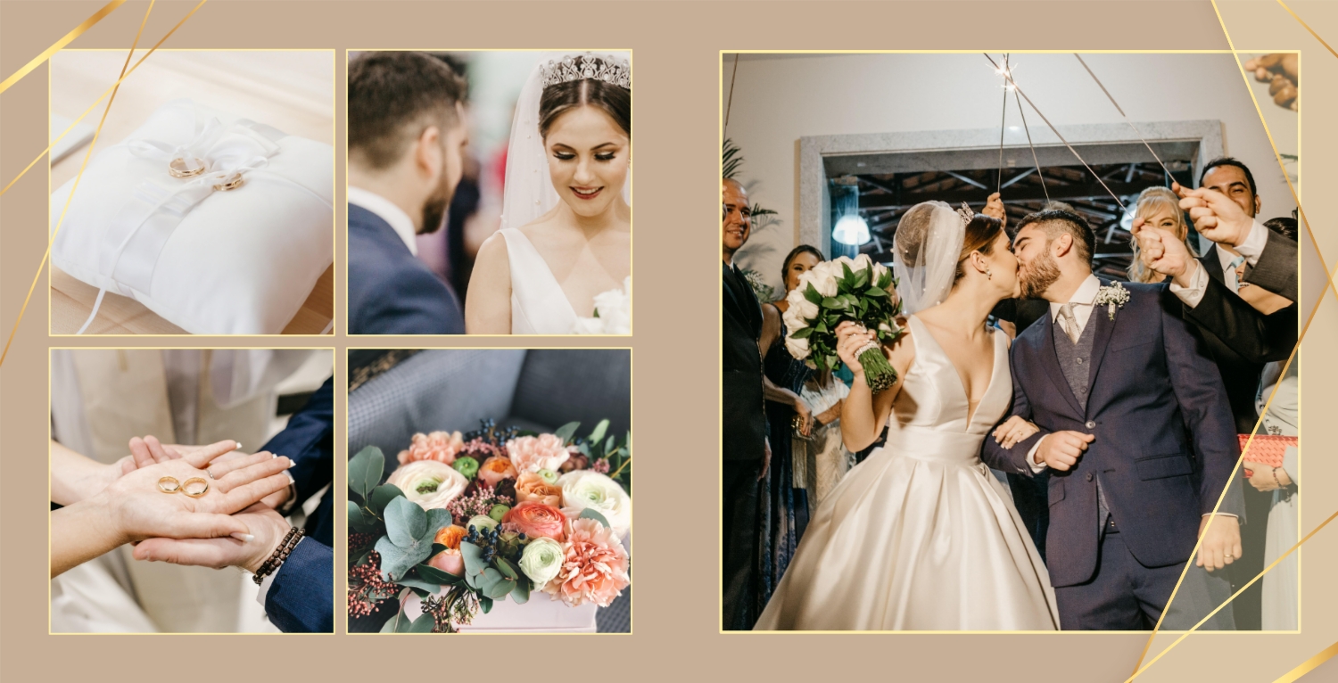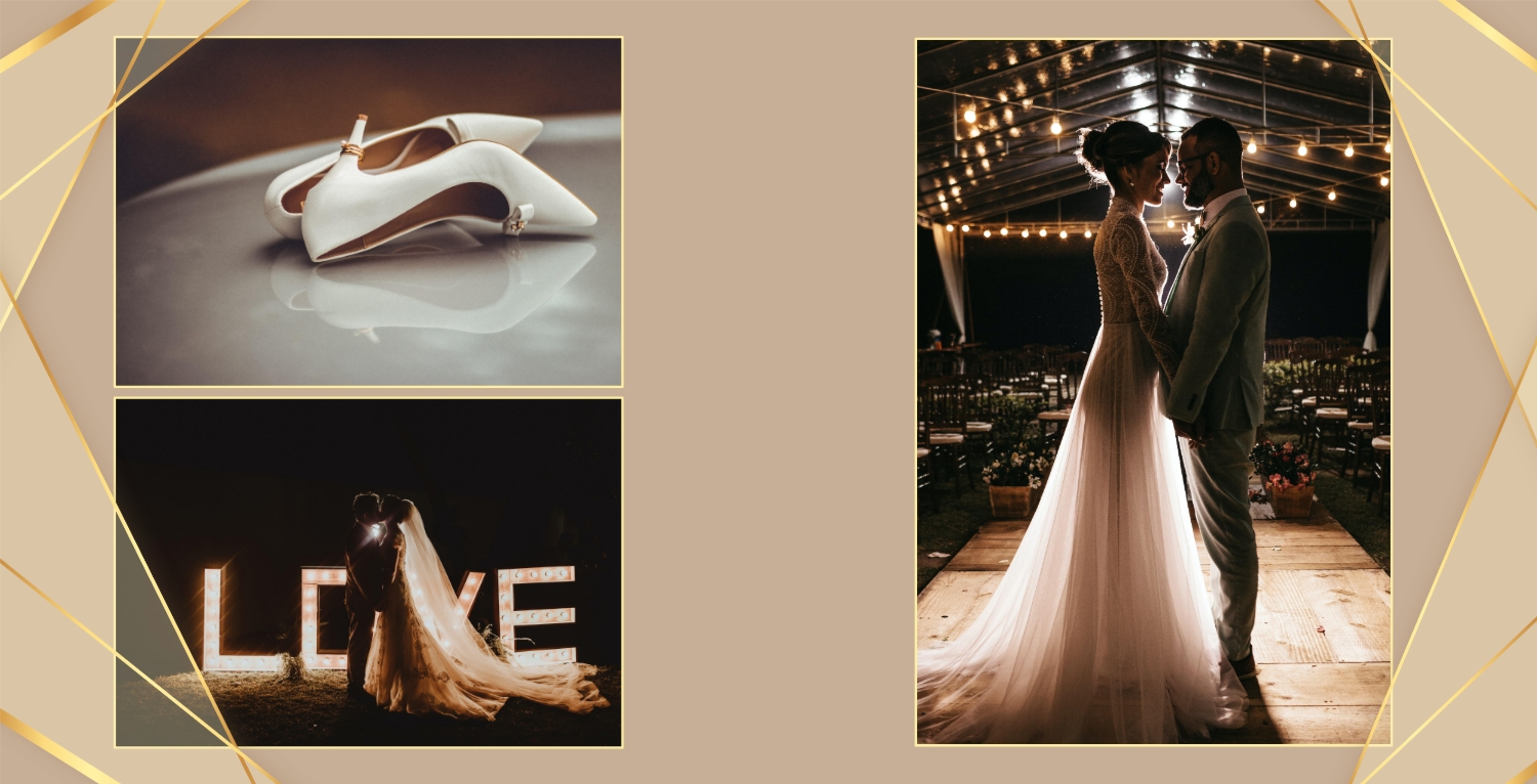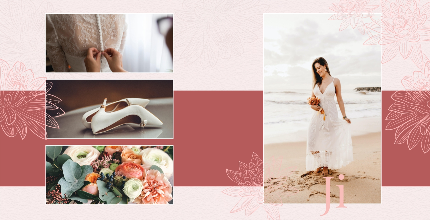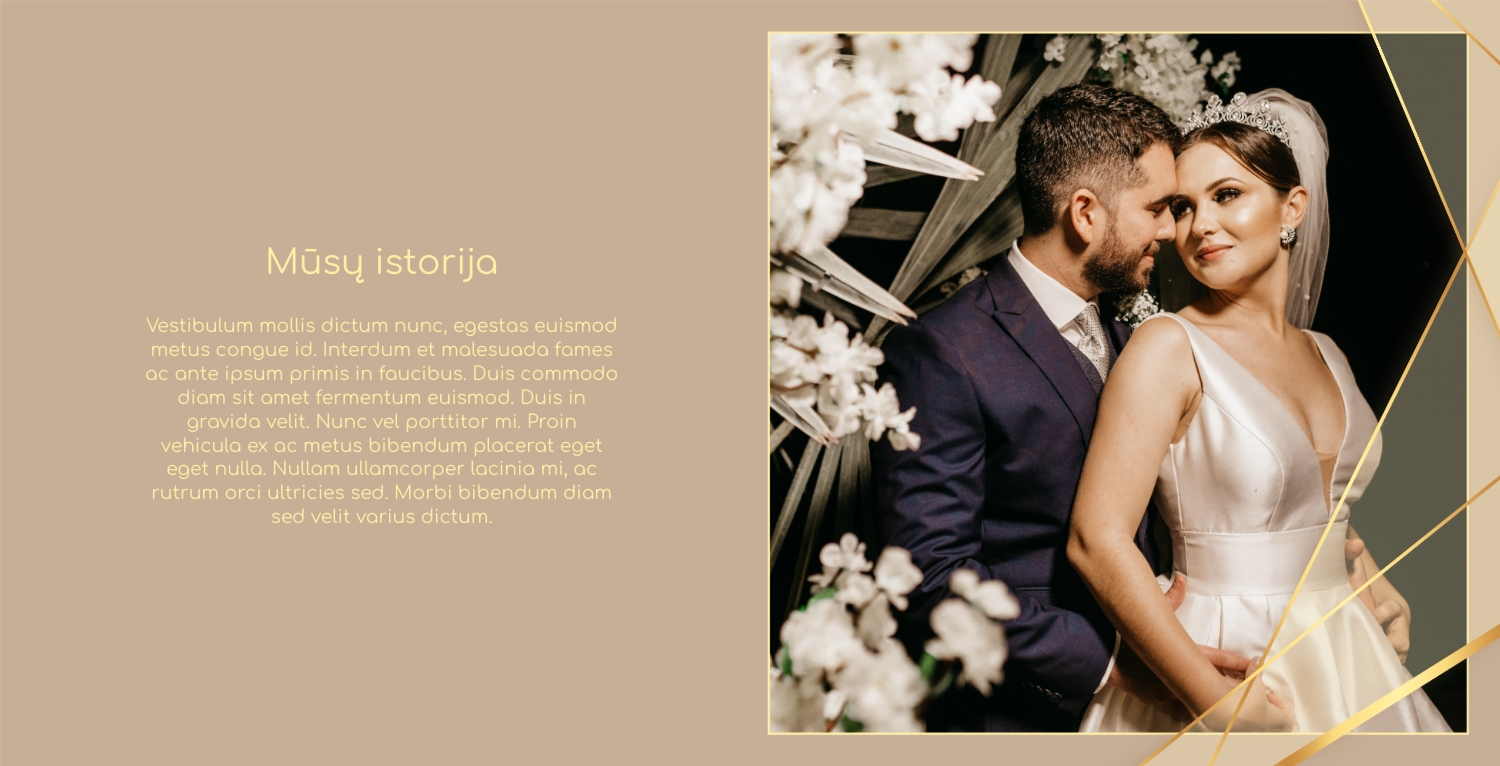 Vestuvių fotografijų fotoknygos šablonas yra paruoštas dizainas, kurį galite naudoti internetiniame dizaineryje, kad sukurtumėte savo unikalų vestuvių nuotraukų albumą. Šis šablonas suteikia pagrindą jūsų albumui apipavidalinti, įskaitant nuotraukų talpinimą, šriftų stilių pasirinkimą, elementų paskirstymą ir bendros estetikos kūrimą. Šablonas apima įvairius nuotraukų išdėstymo maketus. Galite pridėti parašus nuotraukoms, vestuvių akimirkų aprašymams ar pasakojimui apie tai, kaip susipažinote ir įsimylėjote. Naudodami tokį kvadratinį fotoknygos šabloną kietame viršelyje, galite lengvai sukurti savo unikalų vestuvių albumą. Tiesiog įkelkite savo nuotraukas, įklijuokite tekstą ir pritaikykite dizainą pagal savo pageidavimus. Internetinis dizaineris turi platų įrankių pasirinkimą, kad jūsų fotoknyga taptų tikrai ypatinga ir įsimintina.