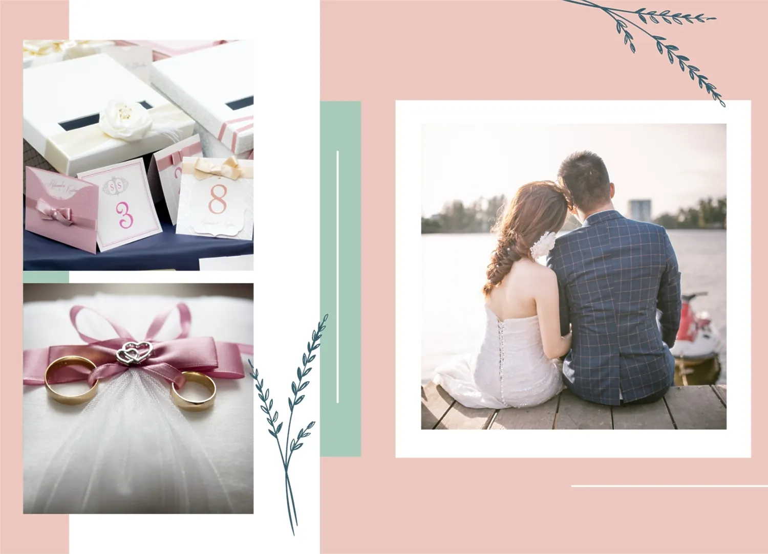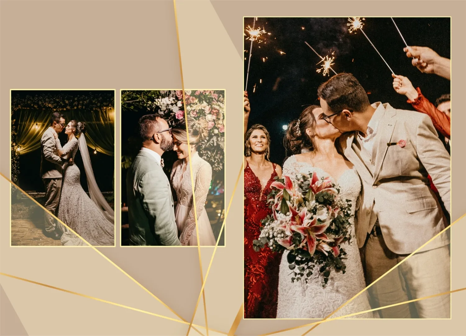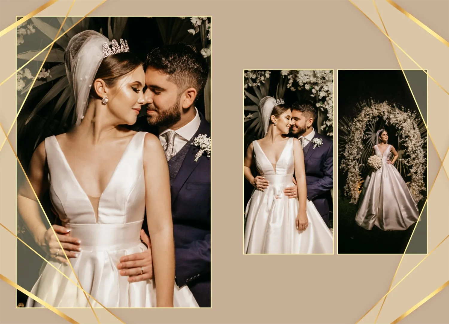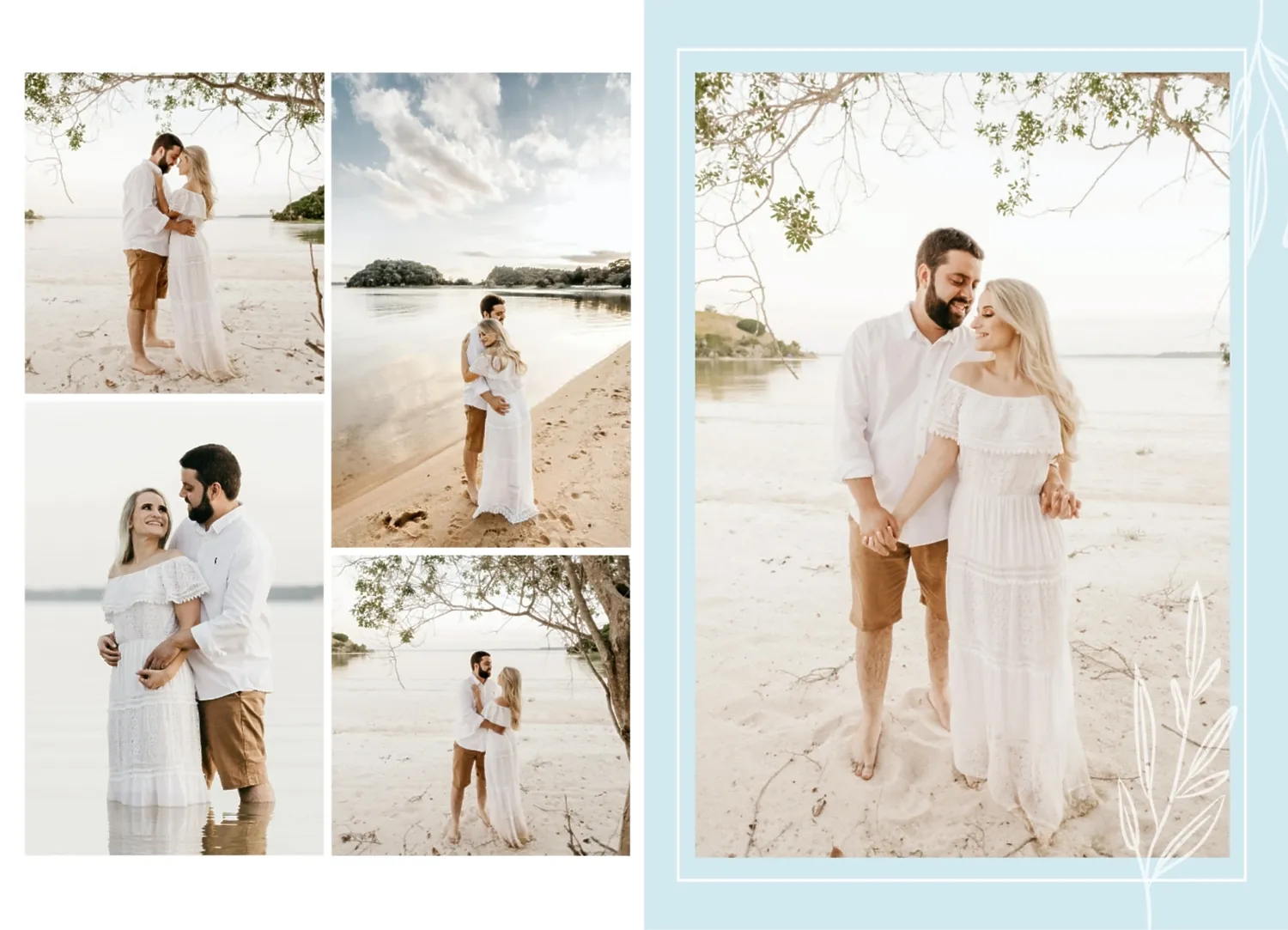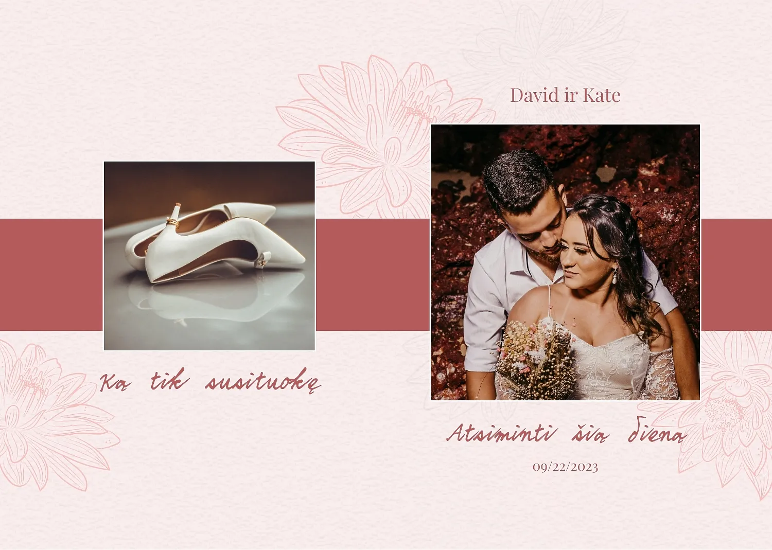 Vestuvių fotografijų fotoknygos šablonas yra paruoštas dizainas, kurį galite naudoti internetiniame dizaineryje, kad sukurtumėte savo unikalų vestuvių nuotraukų albumą. Šis šablonas suteikia pagrindą jūsų albumui apipavidalinti, įskaitant nuotraukų talpinimą, šriftų stilių pasirinkimą, elementų paskirstymą ir bendros estetikos kūrimą. Šablonas apima įvairius nuotraukų išdėstymo maketus. Galite pridėti parašus į nuotraukas, vestuvių momentų aprašymus. Naudodami šį šabloną galite lengvai sukurti savo unikalią vestuvių fotoknygą kietu viršeliu. Tiesiog įkelkite savo nuotraukas, įklijuokite tekstą ir pritaikykite dizainą pagal savo pageidavimus. Internetinis dizaineris turi platų šablonų ir įrankių pasirinkimą, kad jūsų fotoknyga taptų tikrai ypatinga ir įsimintina.