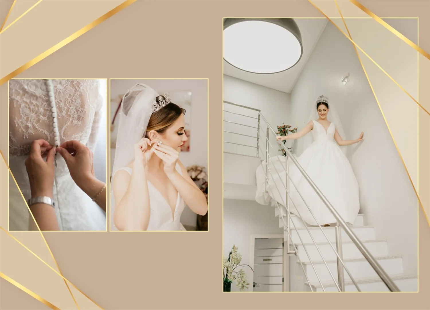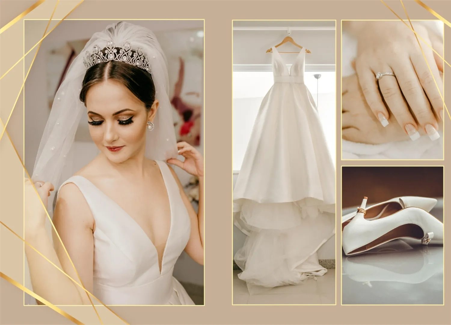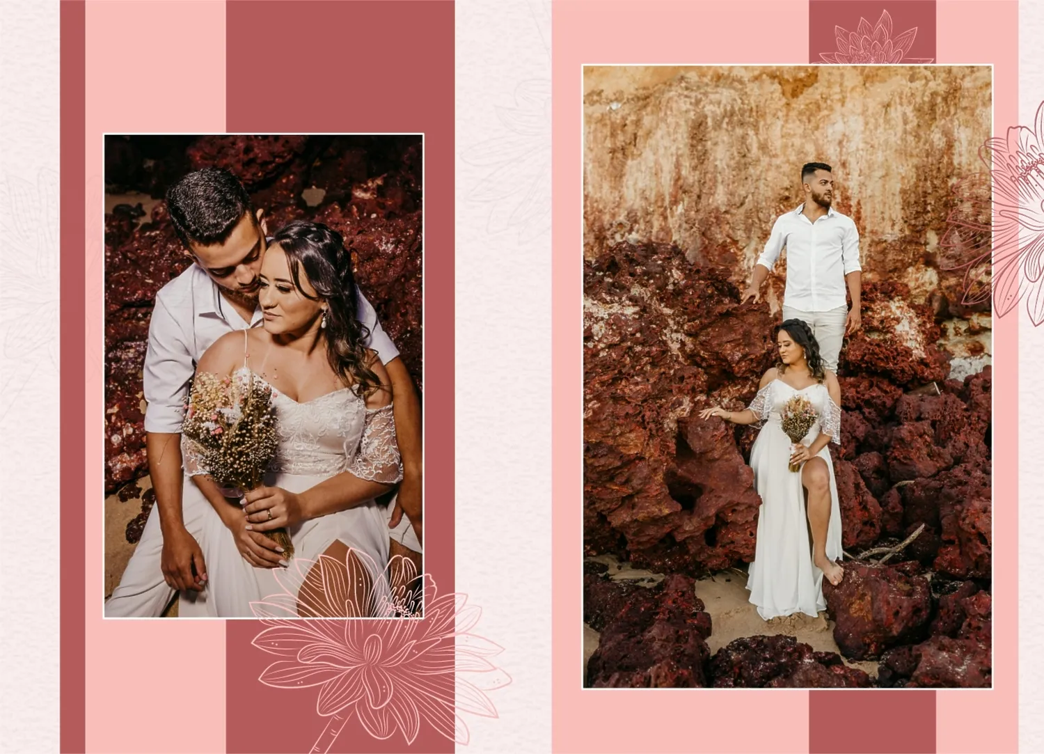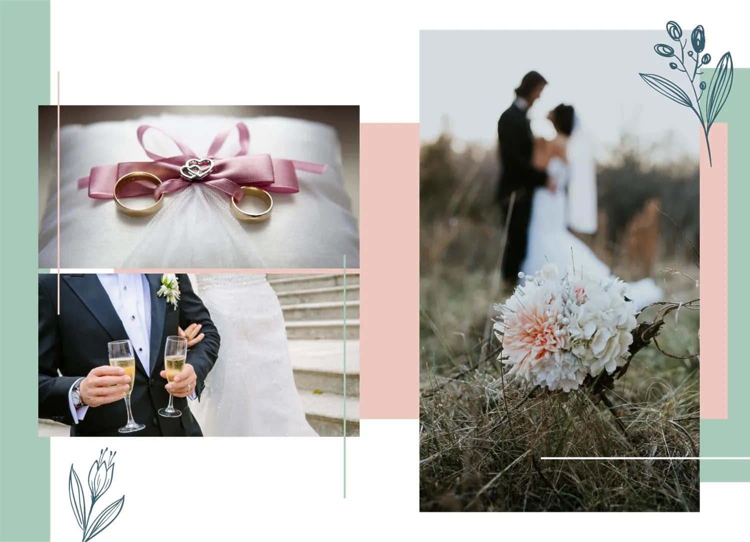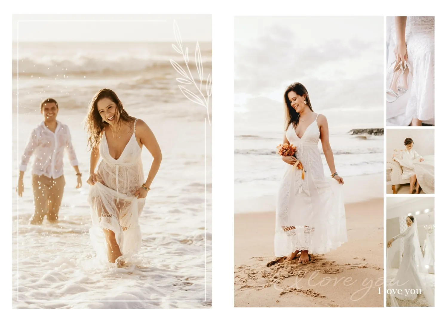 Vestuvių fotografijų fotoknygos šablonas yra paruoštas dizainas, kurį galite naudoti internetiniame dizaineryje, kad sukurtumėte savo unikalų vestuvių nuotraukų albumą. Šis šablonas suteikia pagrindą jūsų albumui apipavidalinti, įskaitant nuotraukų talpinimą, šriftų stilių pasirinkimą, elementų paskirstymą ir bendros estetikos kūrimą. Šablonas apima įvairius nuotraukų išdėstymo maketus. Galite pridėti parašus į nuotraukas, vestuvių momentų aprašymus. Naudodami šį šabloną galite lengvai sukurti savo unikalią vestuvių fotoknygą kietu viršeliu. Tiesiog įkelkite savo nuotraukas, įklijuokite tekstą ir pritaikykite dizainą pagal savo pageidavimus. Internetinis dizaineris turi platų šablonų ir įrankių pasirinkimą, kad jūsų fotoknyga taptų tikrai ypatinga ir įsimintina.