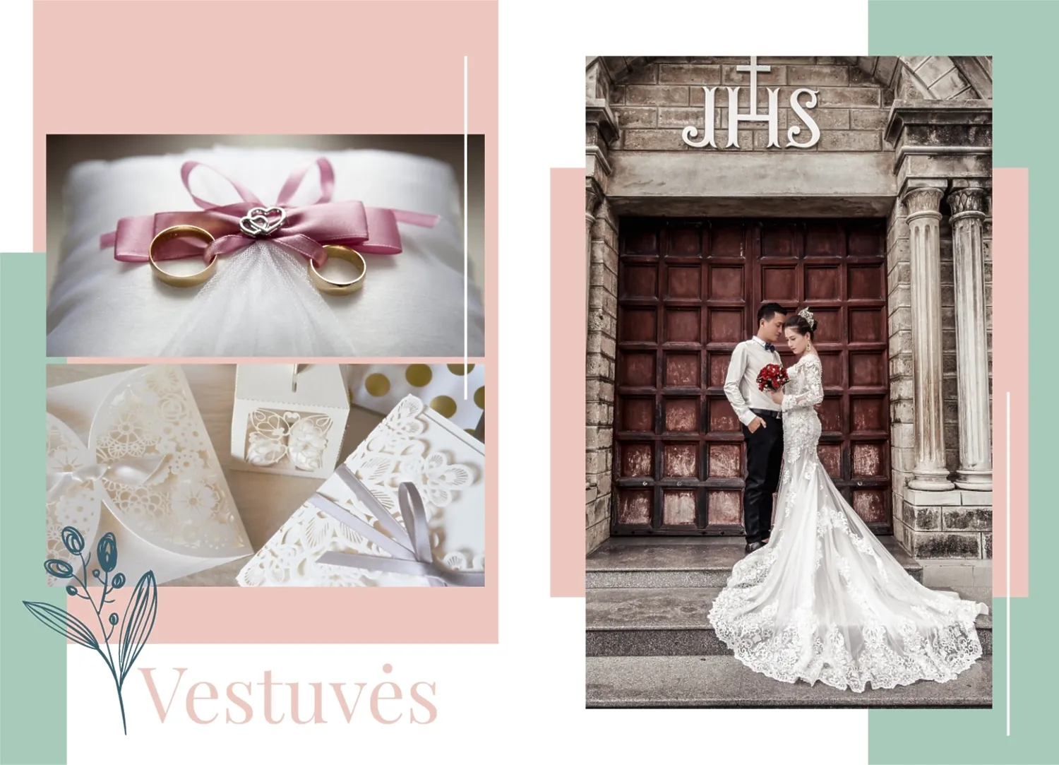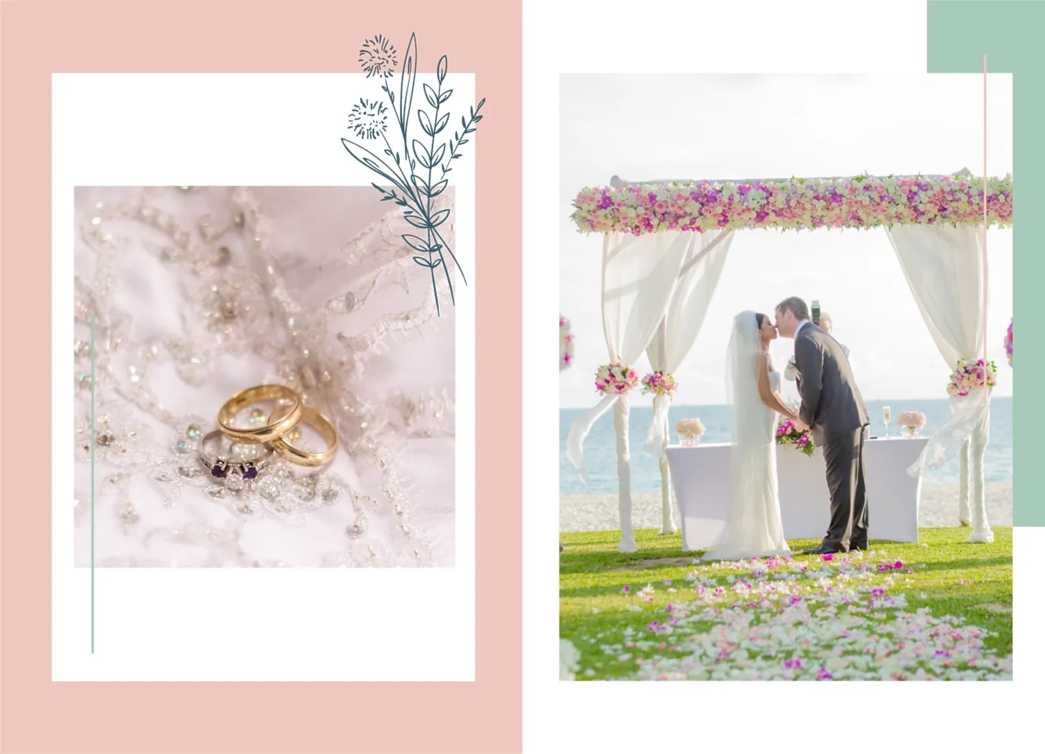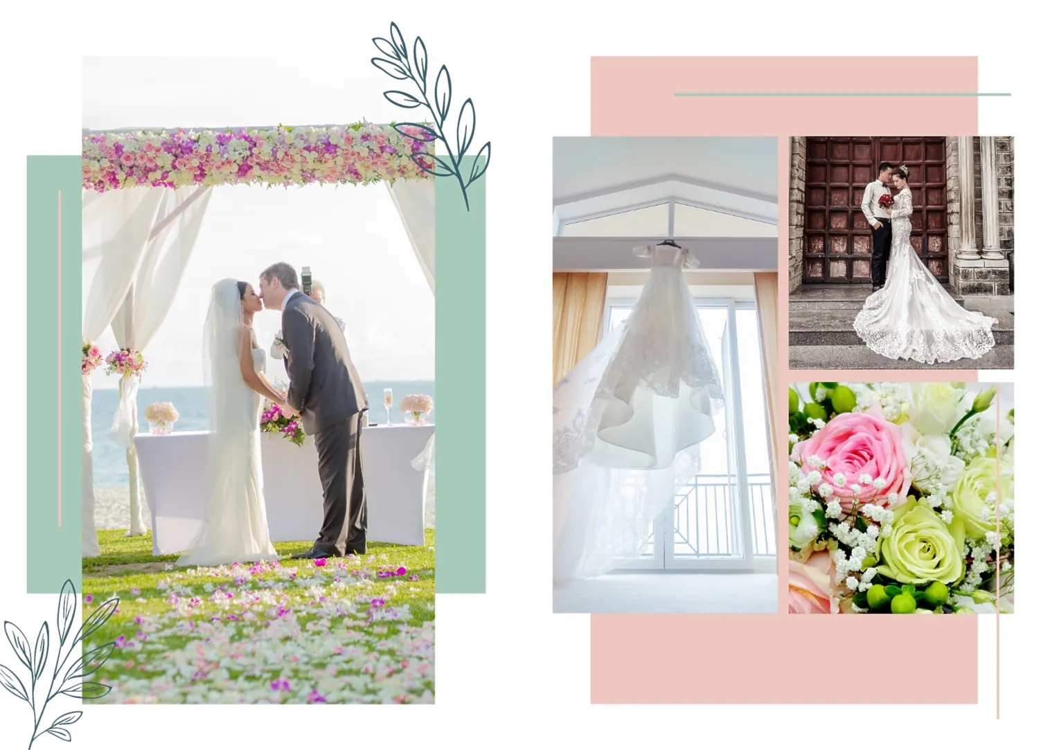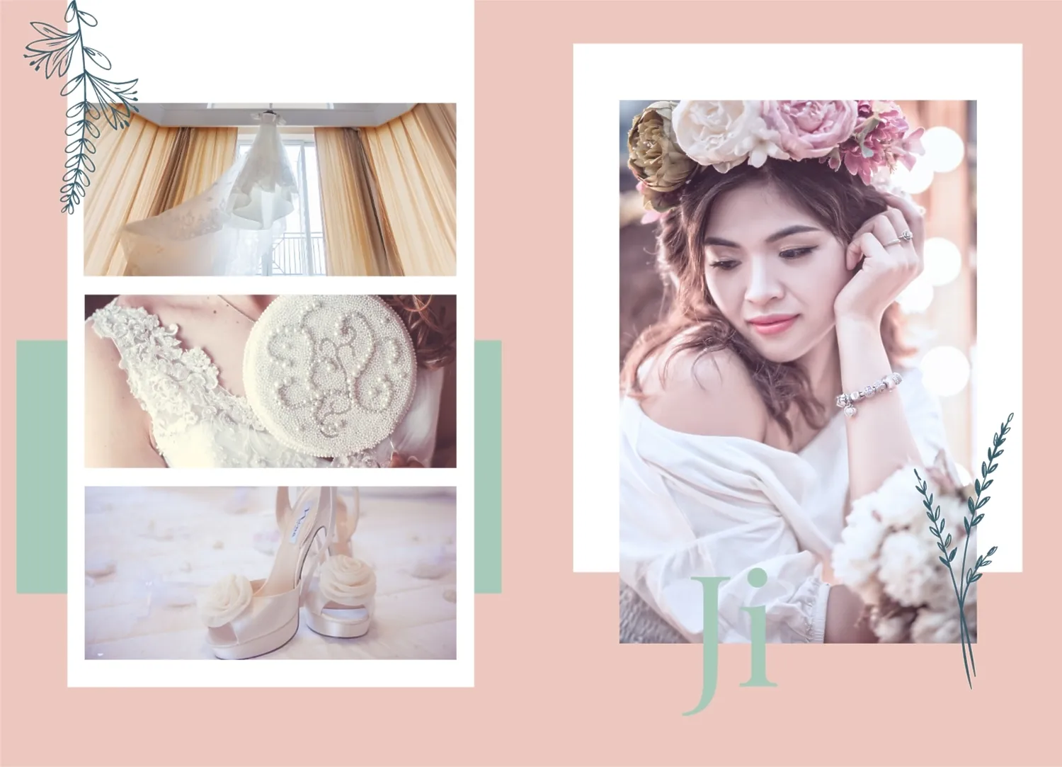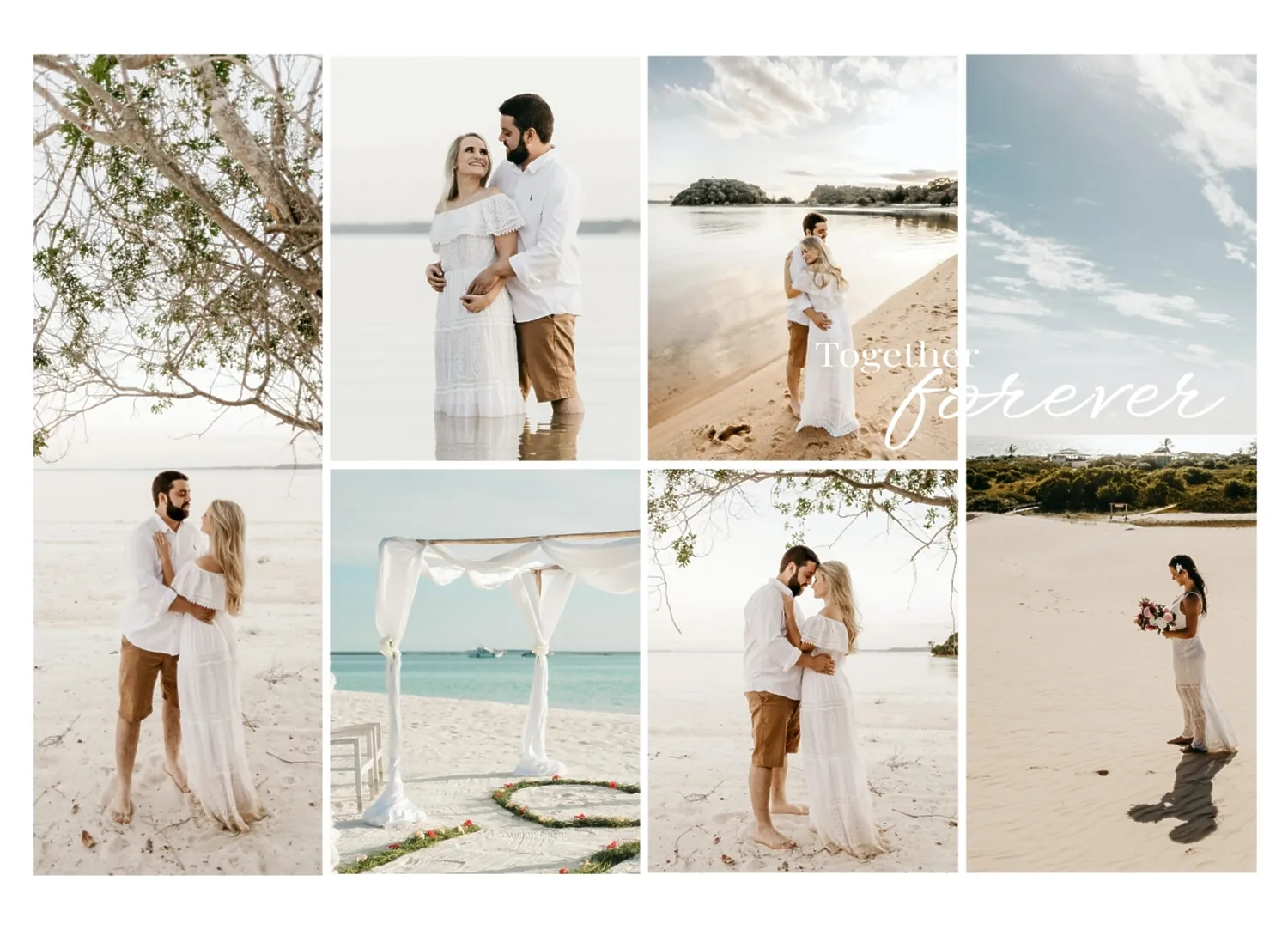 Vestuvių fotografijų fotoknygos šablonas yra paruoštas dizainas, kurį galite naudoti internetiniame dizaineryje, kad sukurtumėte savo unikalų vestuvių nuotraukų albumą. Šis šablonas suteikia pagrindą jūsų albumui apipavidalinti, įskaitant nuotraukų talpinimą, šriftų stilių pasirinkimą, elementų paskirstymą ir bendros estetikos kūrimą. Šablonas apima įvairius nuotraukų išdėstymo maketus. Galite pridėti parašus į nuotraukas, vestuvių momentų aprašymus. Naudodami šį šabloną galite lengvai sukurti savo unikalią vestuvių fotoknygą kietu viršeliu. Tiesiog įkelkite savo nuotraukas, įklijuokite tekstą ir pritaikykite dizainą pagal savo pageidavimus. Internetinis dizaineris turi platų šablonų ir įrankių pasirinkimą, kad jūsų fotoknyga taptų tikrai ypatinga ir įsimintina.