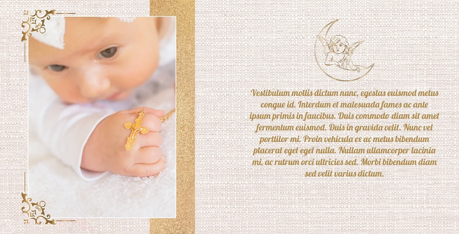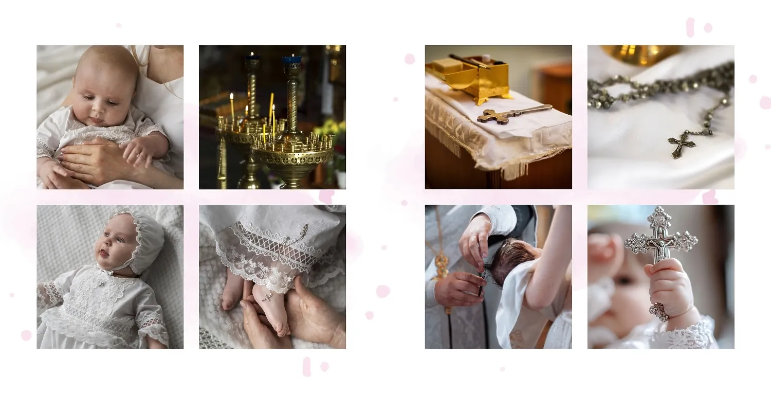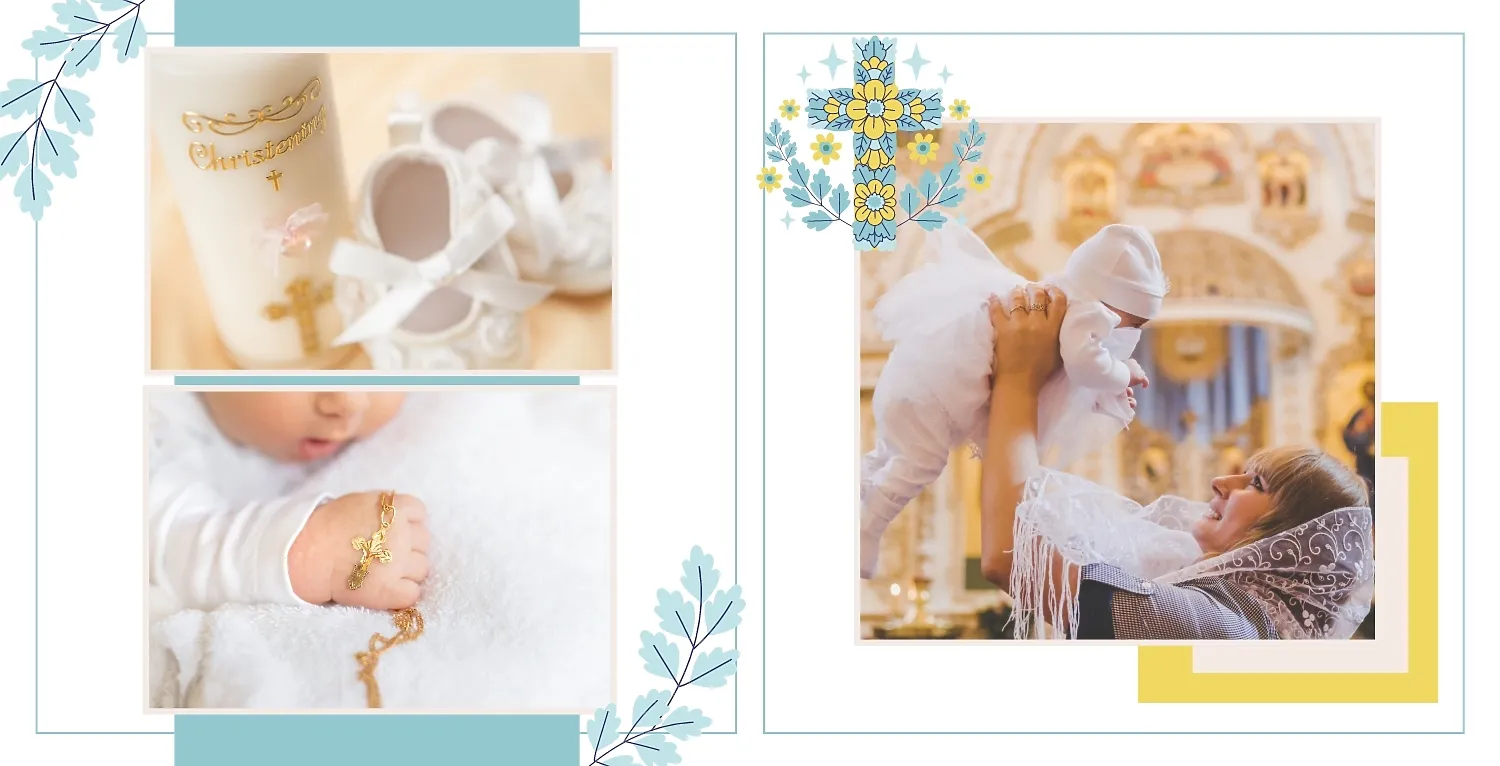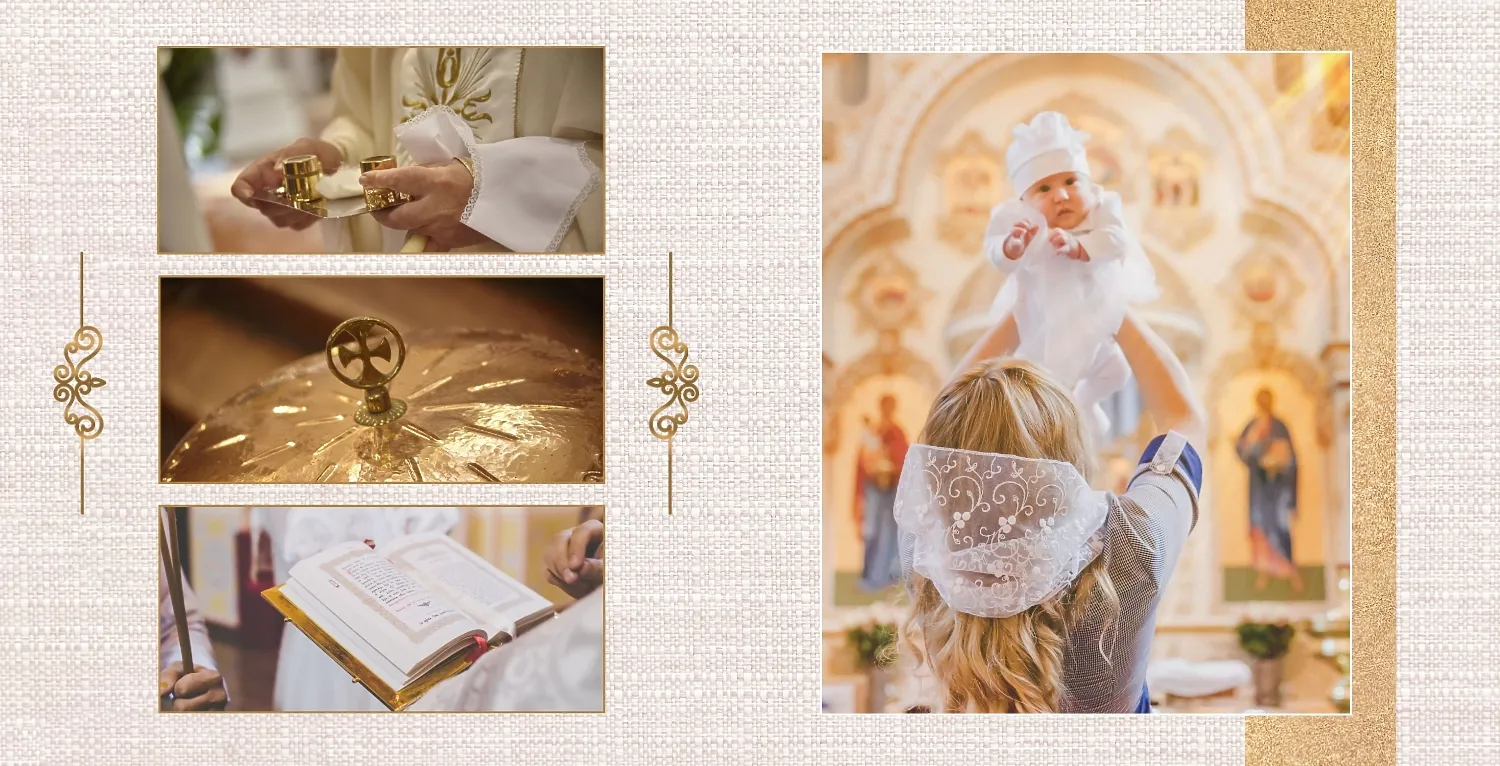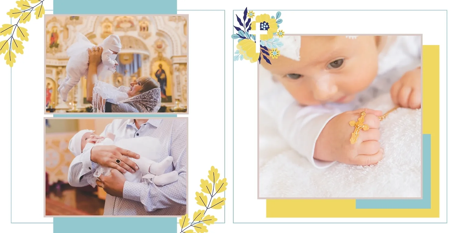 Krikštas yra ypač svarbus ir šventas įvykis mažo žmogaus gyvenime, ir daugelis tėvų nori jį išsaugoti atmintinose nuotraukose. Unikalios fotoknygos, skirtos šiai dienai, sukūrimas padės jums amžinai išsaugoti ceremonijos prisiminimus ir pasidalinti jais su artimaisiais. Mūsų internetiniame dizaineryje siūlome pakeisti paruoštą kvadratinės fotoknygos šabloną kietame viršelyje, specialiai pritaikytą jūsų pageidavimams. Šis šablonas, sukurtas krikšto nuotraukai, turi rafinuotą ir subtilų dizainą, kuris puikiai tinka šio momento iškilmingumui ir džiaugsmui parodyti. Fotoknygos viršelyje galite įdėti savo kūdikio vaizdą gražioje krikšto aprangoje, taip pat ceremonijos datą. Fotoknygos viduje rasite įvairius nuotraukų maketus su krikštatėviais ir svečiais, taip pat vietą įrašams ir pageidavimams. Šablono elementų fonas ir dekoras pabrėžs šio įvykio svarbą ir sukurs šventės atmosferą. Kurdami unikalią fotoknygą apie krikštą, jūs darote kažką ypatingo savo šeimai. Ši knyga bus vertingas palikimas ir paminklas jūsų rūpesčiui ir meilei mažam jūsų šeimos nariui.