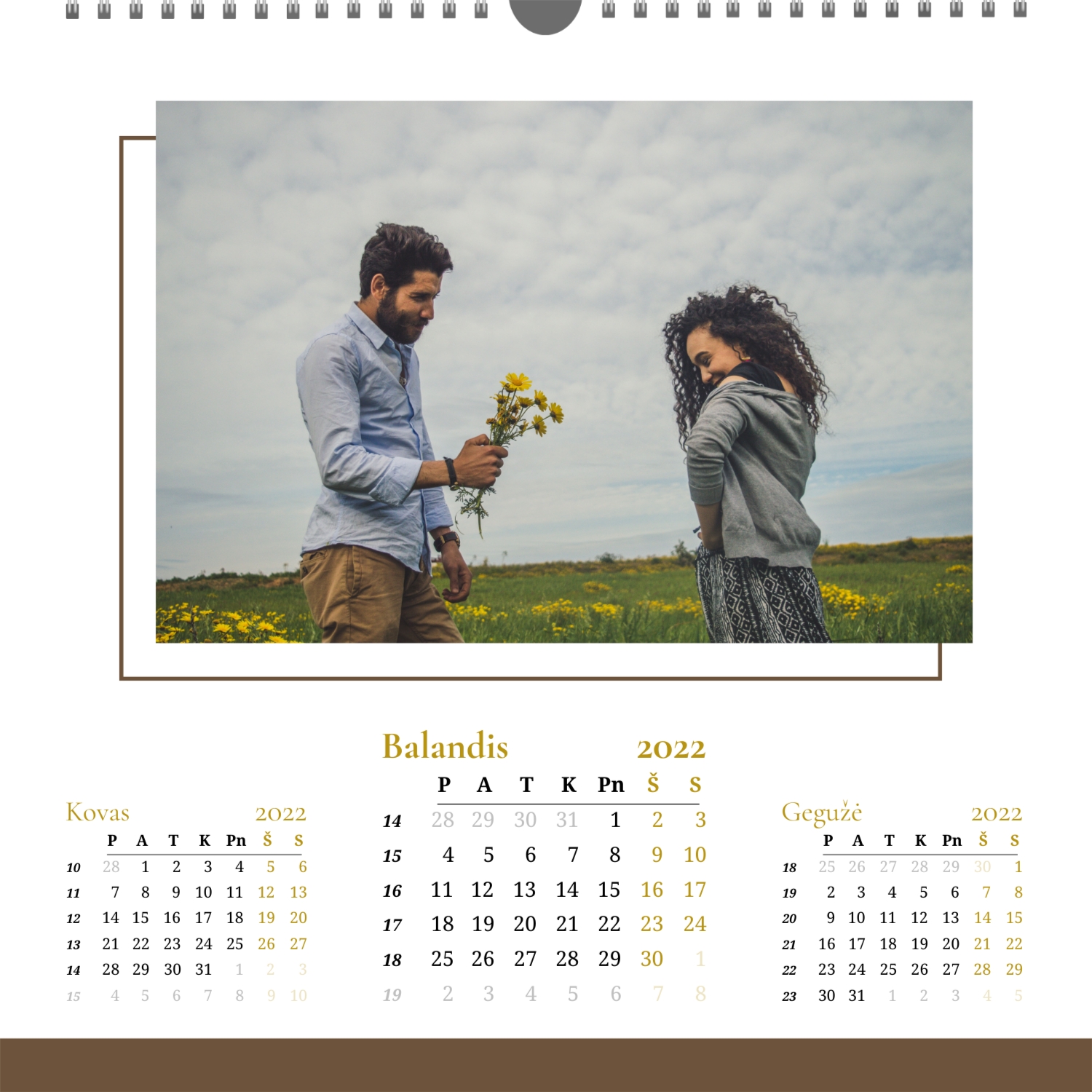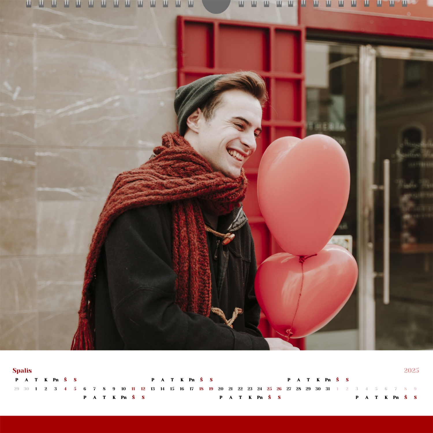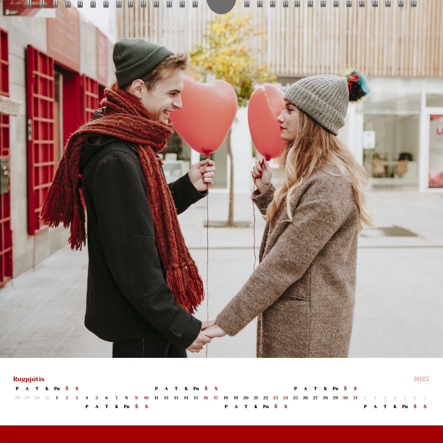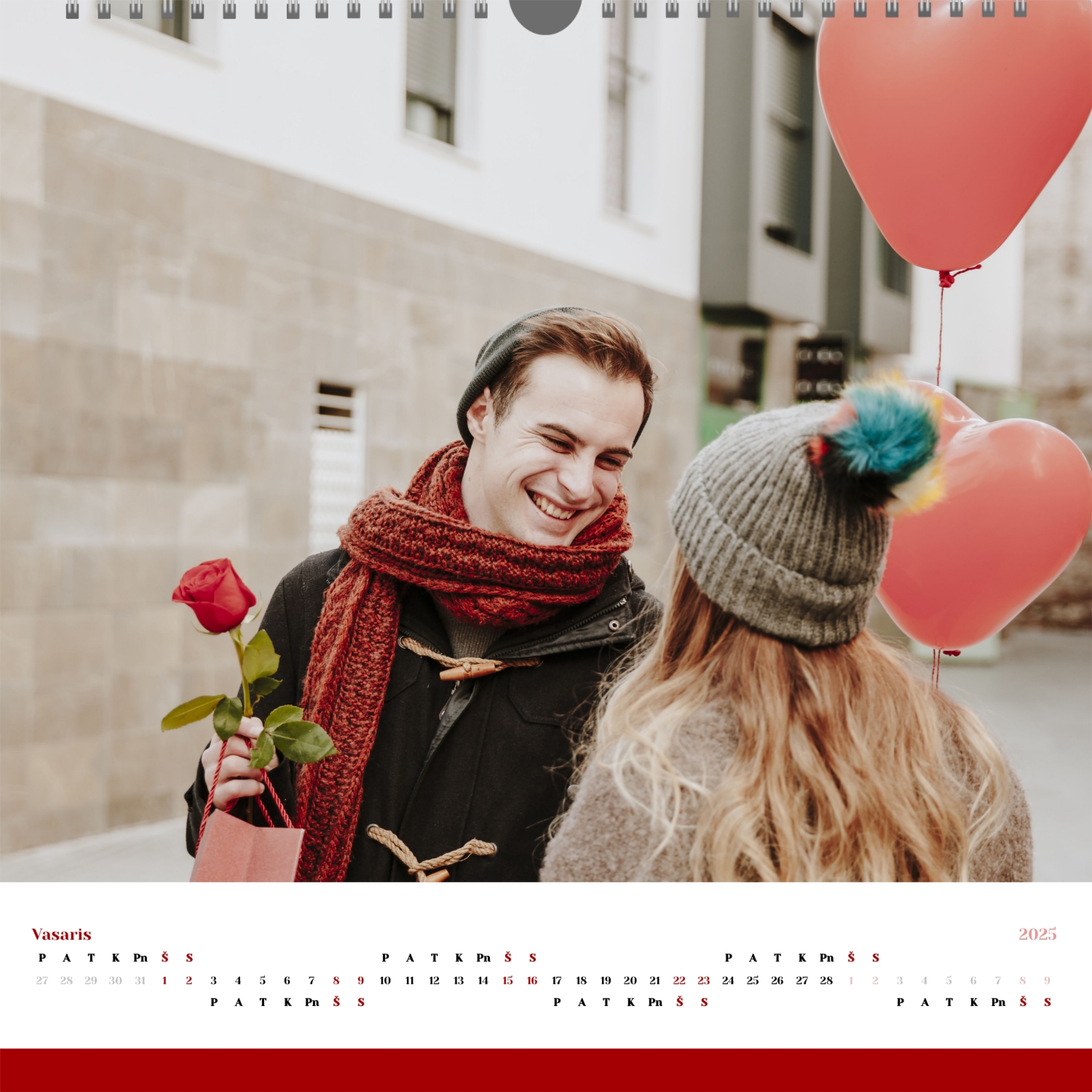 Žiemos magija paversta elegantišku sieninio kvadratinio kalendoriaus šablonu "laiminga žiema", sukurtu specialiai įsimylėjėliams. Šis unikalus dizainas sujungia subtilius žiemos spindesio atspalvius ir šiltas meilės pastabas. Jis skirtas tapti ne tik praktišku laiko apskaitos įrankiu, bet ir švelniu priminimu apie svarbiausias jūsų dienas. Naudokite įvairius dekoratyvinius elementus, integruotus į dizainerį, kad pabrėžtumėte sezono atmosferą. Specialūs skyriai svarbioms datoms ir įvykiams leidžia pažymėti svarbius jūsų meilės istorijos momentus. Čia gali būti ikoninių susitikimų dienos, bučinių dienos po pūgomis arba tiesiog akimirkos, kurios tapo svarbiausiomis jūsų gyvenime. Lengva redaguoti mūsų internetinį dizainerį leidžia jums išreikšti savo jausmus ir sukurti kalendorių, kuris atspindės jūsų unikalią meilę.