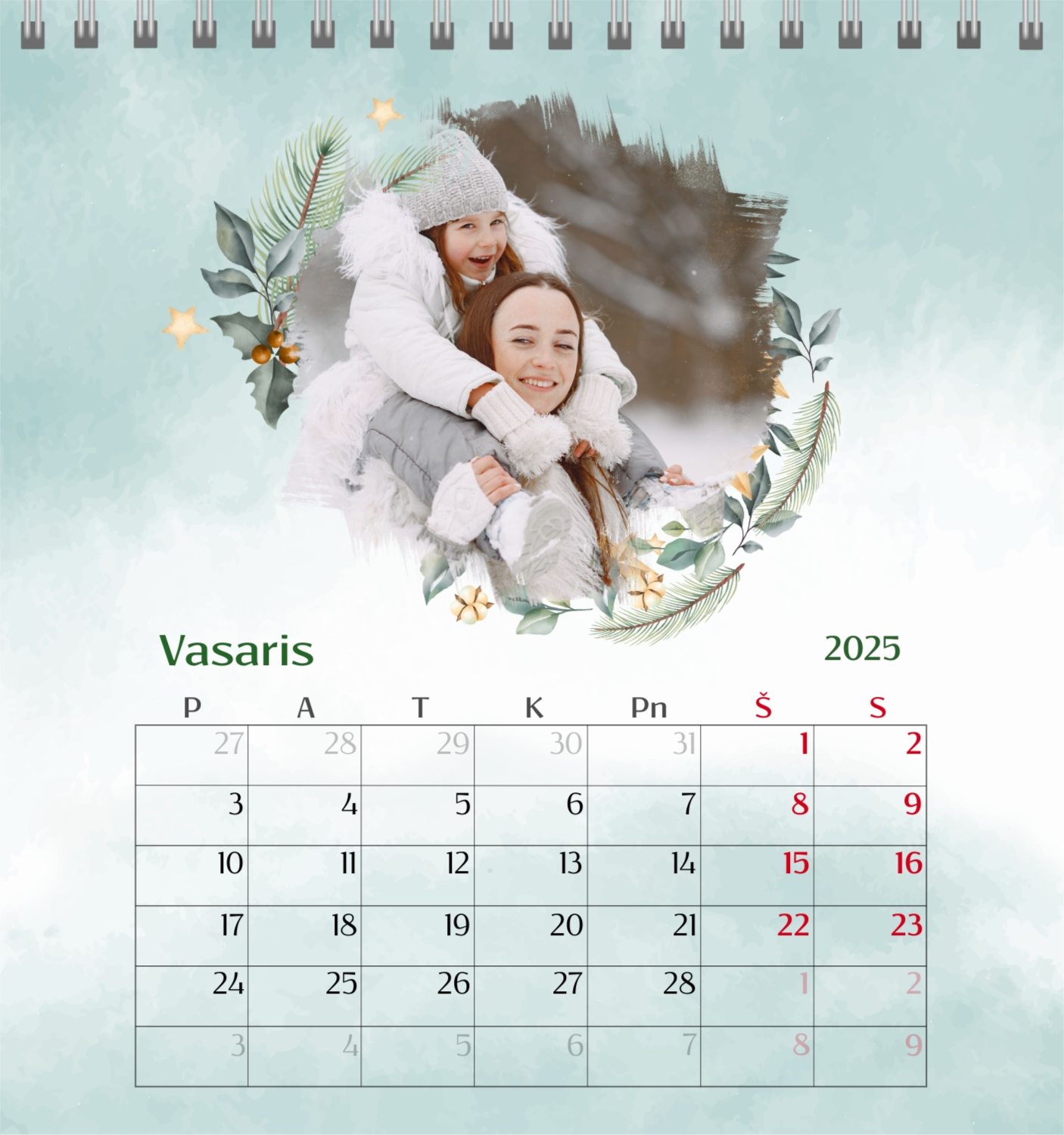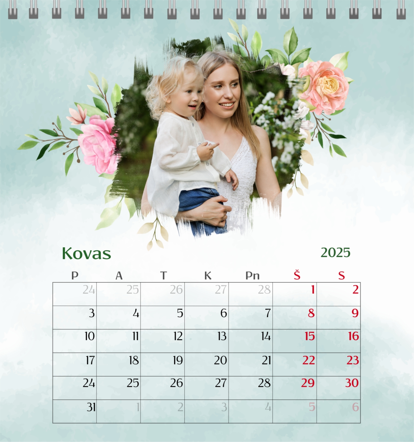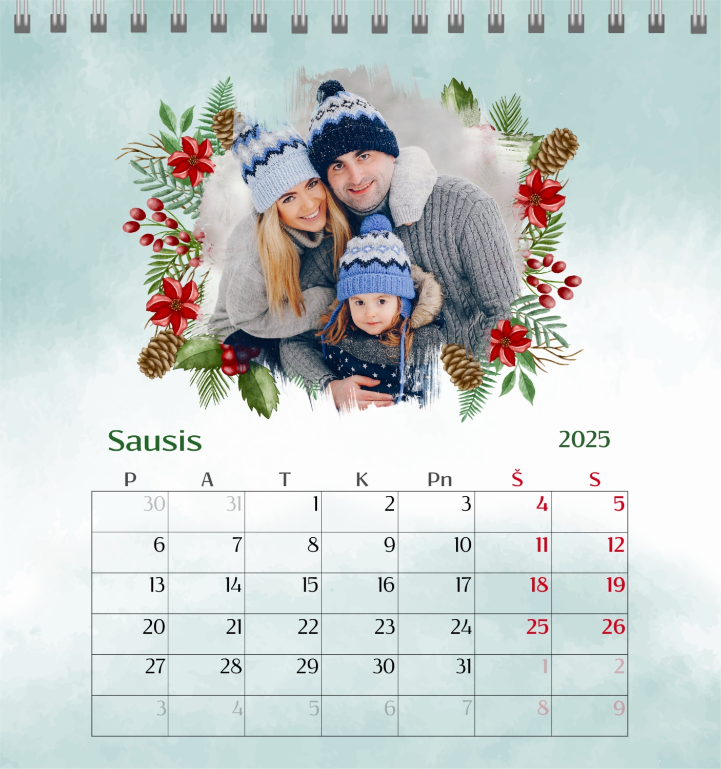 Šablonas" mūsų šeima " mūsų internetinio dizainerio darbalaukio kalendoriui suteikia unikalią galimybę sukurti asmeninį kalendorių, kuris visiškai atspindėtų jūsų šeimos gyvenimą. Internetinis dizaineris suteikia plačias redagavimo galimybes, leidžiančias pritaikyti kalendoriaus išvaizdą pagal jūsų pageidavimus. Galite lengvai keisti spalvų schemą, pasirinkti įvairius fonus ir šriftus, kad kalendorius būtų kuo labiau individualizuotas. Be to, šablonas "mūsų šeima" apima erdvę įrašams ir planams. Galite lengvai pridėti kasdienes užduotis, savaitės planus ir kitas pastabas, kad kalendorius būtų ne tik spalvingas, bet ir praktiškas laiko valdymo įrankis. Tokiu būdu galite sukurti unikalų stalo kalendorių "mūsų šeima", kuris bus ne tik patogus organizatorius, bet ir užpildytas šiltais šeimos prisiminimais.