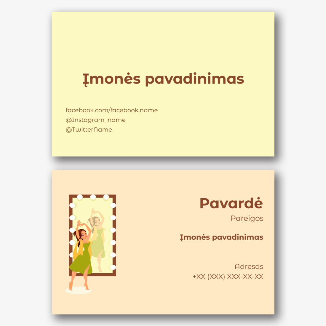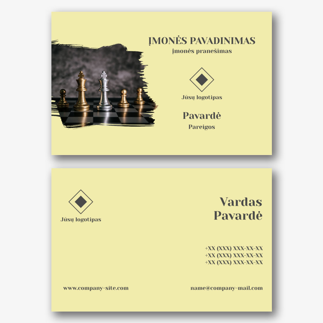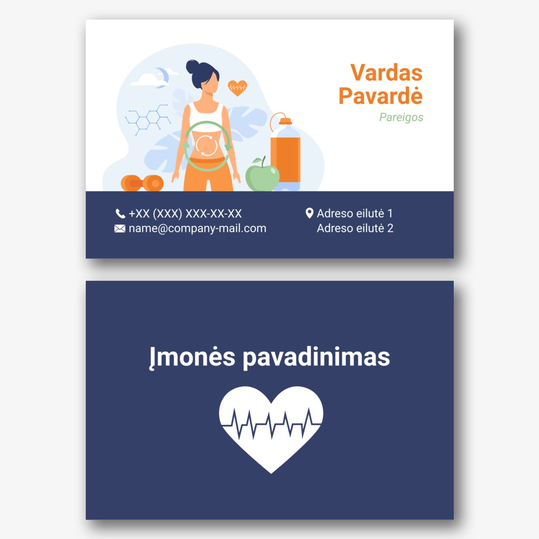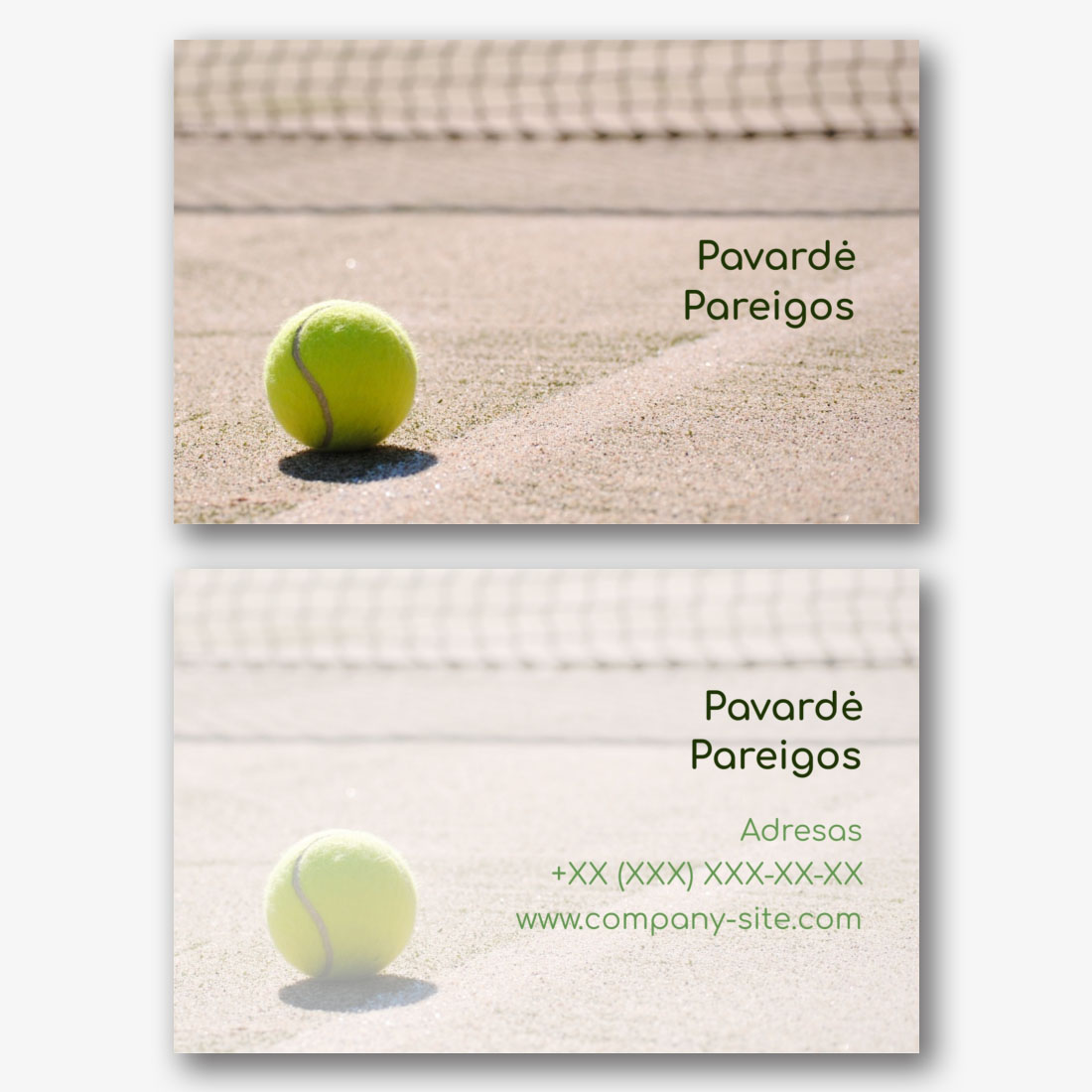 Eurovizijos sporto šablonas yra idealus pasirinkimas tiems, kurie yra susiję su sporto pasauliu ir aktyviu gyvenimo būdu. Vizitinės kortelės fone pavaizduotas baseinas su kristaliniu švariu vandeniu, kuris simbolizuoja šviežumą, vandens sportą ir rūpinimąsi sveikata. Šis modelis tinka profesionaliems plaukimo, vandens aerobikos ar vandens sporto treneriams, taip pat sporto kompleksams, baseinams ir fitneso centrams. Naudodamiesi mūsų internetiniu dizaineriu, galite lengvai pritaikyti šį šabloną savo poreikiams. Pakeiskite visus elementus asmeniškai. Pridėkite savo logotipą, informaciją apie jus ar jūsų įmonę, kontaktinius duomenis ir kitą informaciją, kad sukurtumėte unikalią vizitinę kortelę, atspindinčią jūsų individualumą ir profesionalumą. Sukurkite euro vizitinę kortelę savo rankomis ir pabrėžkite savo patirtį sporto pasaulyje!