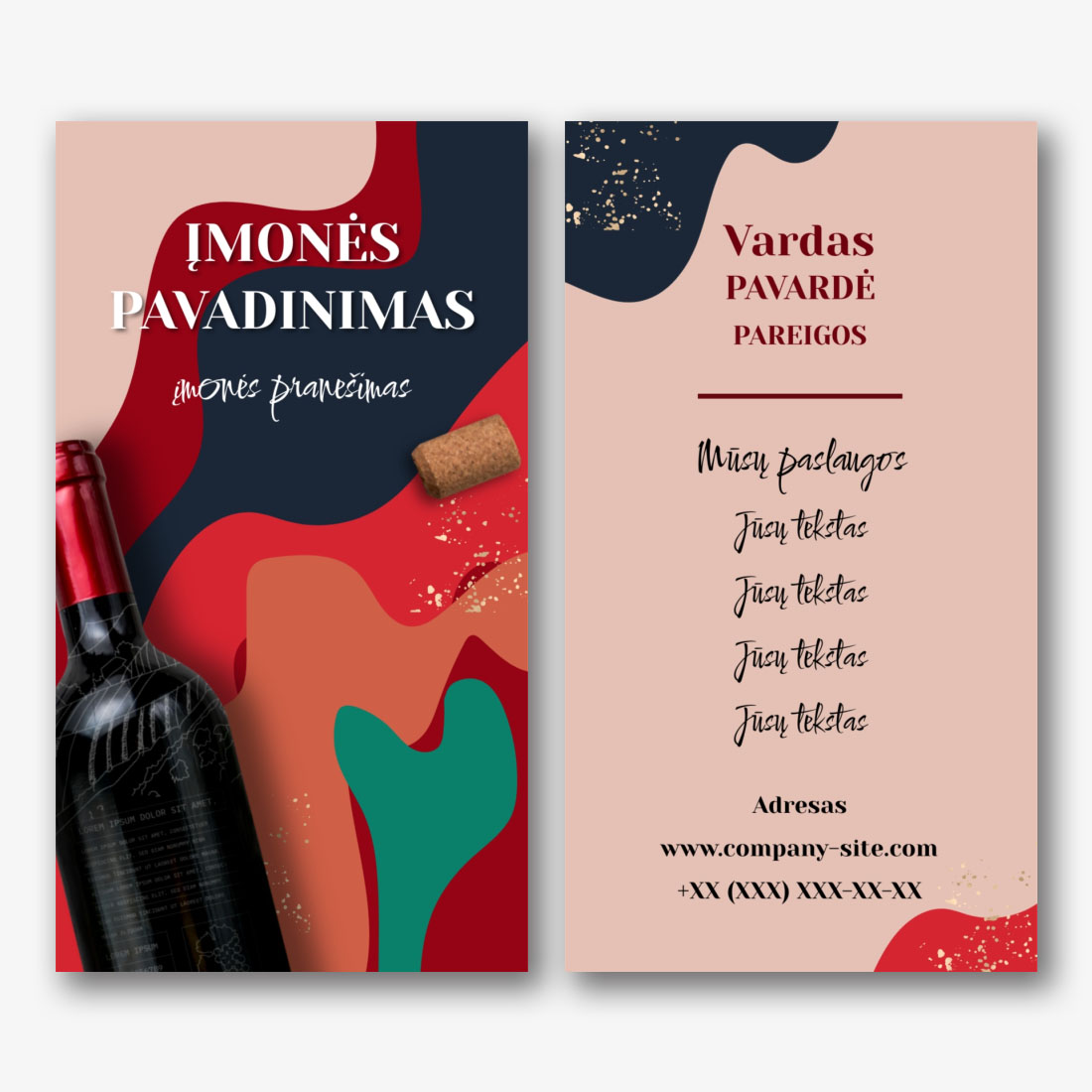 Gatavą vizitinės kortelės šabloną, skirtą barams ir klubams, galite lengvai pritaikyti prie savo poreikių. Šis šablonas yra idealus stiliaus, funkcionalumo ir patogumo derinys. Kurdami šį šabloną, mes atsižvelgėme į visas barų ir klubų savybes, tokias kaip ryškus dizainas, vietos informacijos ir kontaktinių duomenų svarba, taip pat į galimybę pridėti elementų, atspindinčių unikalią jūsų institucijos atmosferą. Galite įvesti savo asmeninius duomenis, įskaitant logotipą, šūkį ar įmonės stilių. Mes taip pat suteikėme lankstumo pasirinkdami spalvų paletę, šriftus ir elementų išdėstymą, kad galėtumėte pritaikyti vizitinę kortelę pagal savo prekės ženklą ir skonį. Naudodamiesi mūsų internetiniu dizaineriu, galite lengvai pridėti ar pakeisti informaciją, vaizdus ir net dizaino elementus, kad sukurtumėte unikalią vizitinę kortelę, kuri puikiai atspindi jūsų instituciją. Taigi, mūsų paruoštas baro ar klubo vizitinės kortelės Šablonas yra idealus sprendimas tiems, kurie nori sukurti profesionalų ir įsimintiną savo verslo pristatymą. Su juo galite greitai ir lengvai sukurti unikalią vizitinę kortelę savo rankomis ir pritraukti klientų dėmesį į savo instituciją.