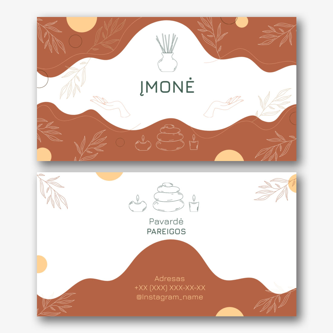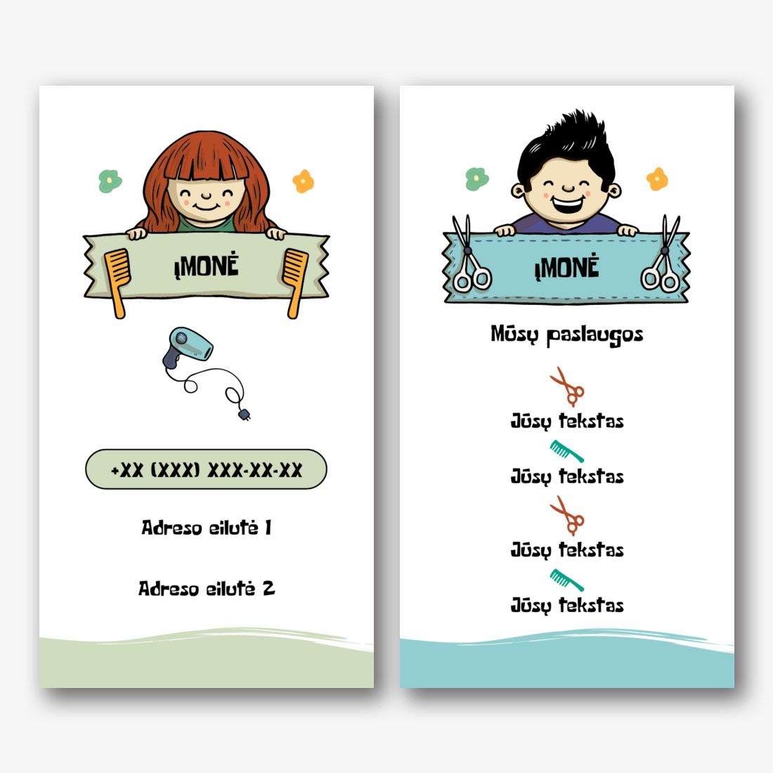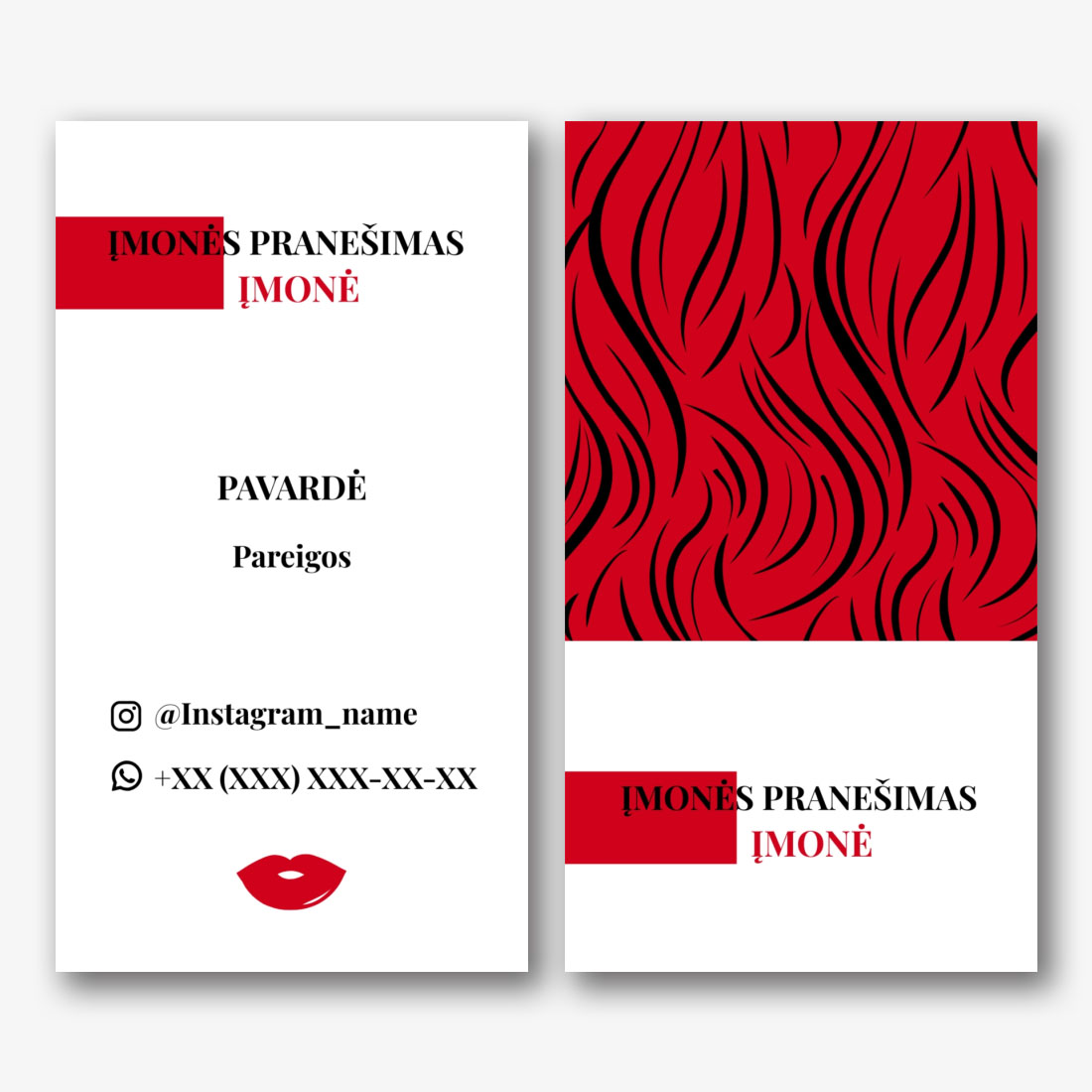 Mūsų internetinio dizainerio vizitinės kortelės Šablonas yra idealus sprendimas grožio ir plaukų priežiūros specialistams. Mūsų vizitinės kortelės Šablonas yra stilingas ir modernus dizainas, kuris pritraukia dėmesį ir palieka ryškų įspūdį potencialiems klientams. Pagrindinis dėmesys skiriamas vizualiniam patrauklumui, kuris ypač svarbus estetikos specialistams. Vizitinėje kortelėje yra elementų, kurie pabrėžia meistro profesionalumą ir kūrybiškumą, nesvarbu, ar tai kirpėjas, spalva ar stilistas. Vienas iš pagrindinių mūsų šablono privalumų yra jo lankstumas ir galimybė visiškai pritaikyti savo individualius poreikius. Internetiniame dizaineryje galite lengvai pakeisti vizitinės kortelės spalvas, šriftus ir elementų vietą, kad ji kuo labiau atitiktų jūsų prekės ženklą ir stilių. Galite pridėti savo nuotrauką, salono logotipą ar kontaktinę informaciją, todėl vizitinė kortelė bus unikali ir įsimintina. Mūsų internetinis dizaineris suteikia intuityvią sąsają, dėl kurios vizitinės kortelės kūrimo procesas tampa paprastas ir įdomus. Galite eksperimentuoti su įvairiais dizaino variantais, kol rasite idealų, kuris atspindės jūsų profesinę tapatybę. Be to, galite išsaugoti keletą vizitinių kortelių variantų ir pasirinkti juos priklausomai nuo konteksto ar tikslinės auditorijos.
