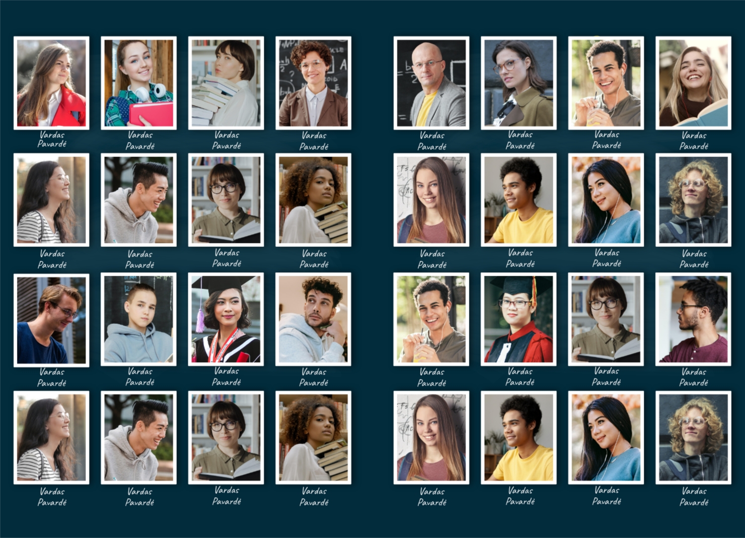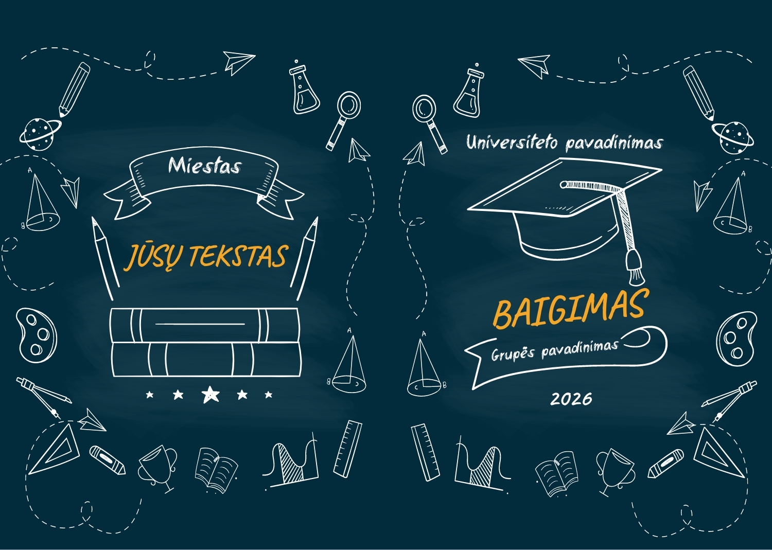 Medicinos universiteto ar koledžo absolventas yra svarbus įvykis jūsų gyvenime, kuris nusipelno ypatingo dėmesio ir įsimintinų puslapių. Jūsų medicininis išsilavinimas yra ne tik žinių rinkinys, bet ir daugybė prisiminimų, kuriuos norite išsaugoti daugelį metų. Kad vertikali fotoknyga kietajame viršelyje būtų unikali, galite naudoti jau paruoštą šabloną, kurį siūlo mūsų internetinis dizaineris. Šis šablonas yra specialiai sukurtas medicinos universitetų absolventams ir jame atsižvelgiama į šios profesijos ypatybes ir svarbius jūsų studijų momentus. Nepamirškite pridėti puslapių su savo draugais ir kolegomis, kad pabrėžtumėte draugystę ir solidarumą, kurie buvo svarbios jūsų studijų dalys. Svarbus dalykas taip pat bus puslapiai, skirti jūsų asmeniniams pasiekimams ir pasididžiavimo akimirkoms, susijusioms su jūsų išsilavinimu. Fotoknygos šablonas medicinos aukštosios mokyklos baigimui mūsų dizaineryje suteikia daug galimybių kurti puslapius, pasirinkti spalvas ir šriftus, taip pat pridėti kūrybinių elementų, susijusių su medicinos temomis. Tokiu būdu jūsų fotoknyga taps ne tik paminklu jūsų išleidimui, bet ir jūsų asmeninių pasiekimų, pastangų ir svarbių momentų jūsų medicininėje karjeroje atspindimi. Jis bus unikalus ir įsimintinas, kaip ir jūsų mokymasis medicinos universitete. Sukurkite Su malonumu ir išsaugokite šiuos brangius prisiminimus savo fotoknygos puslapiuose.
