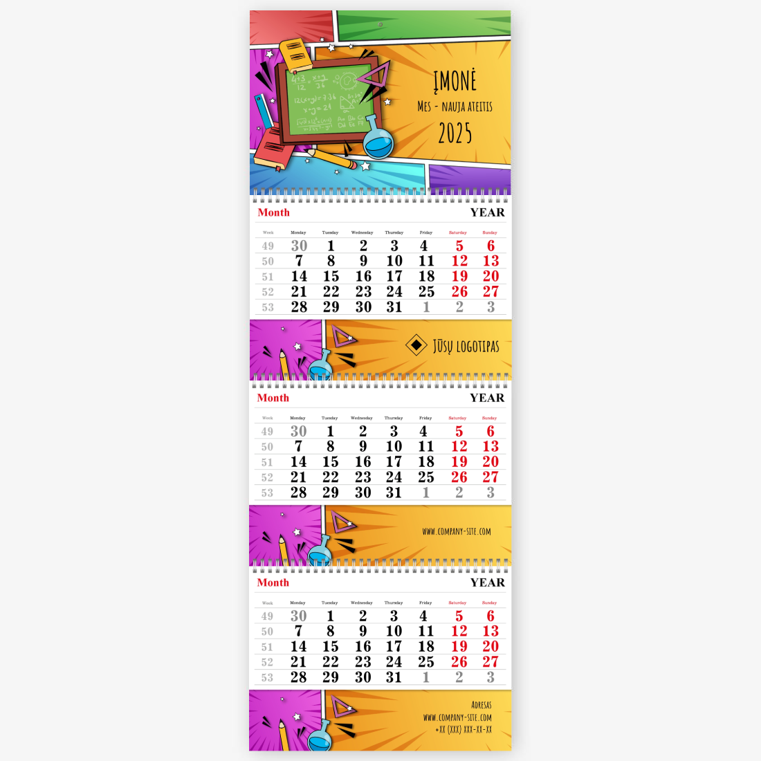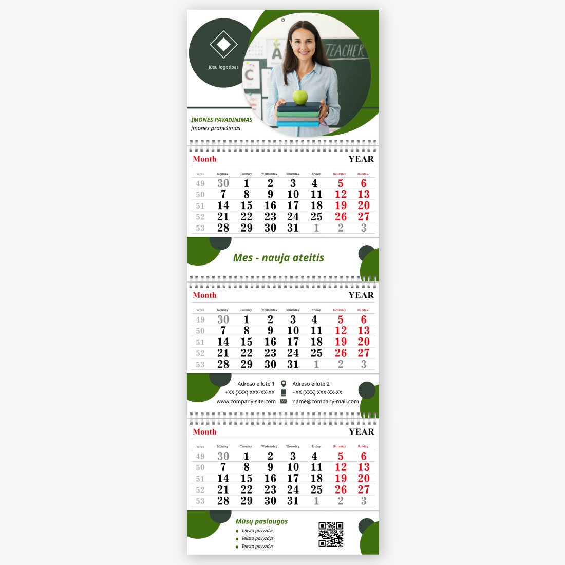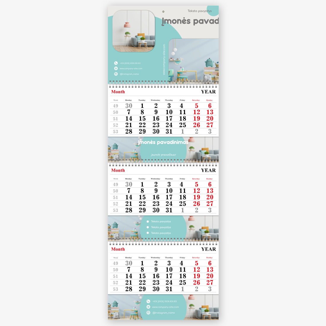 Nemokamas ketvirčio reklamos kalendoriaus šablonas analitinio centro reklamai. Sukurkite išdėstymą su savo rankomis kalendoriaus dizaineriu.