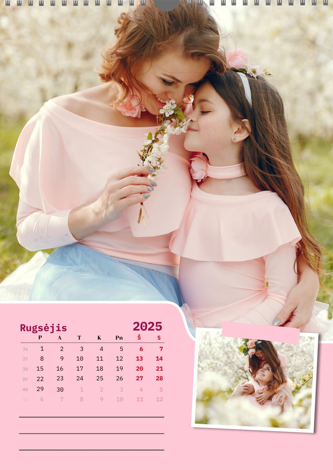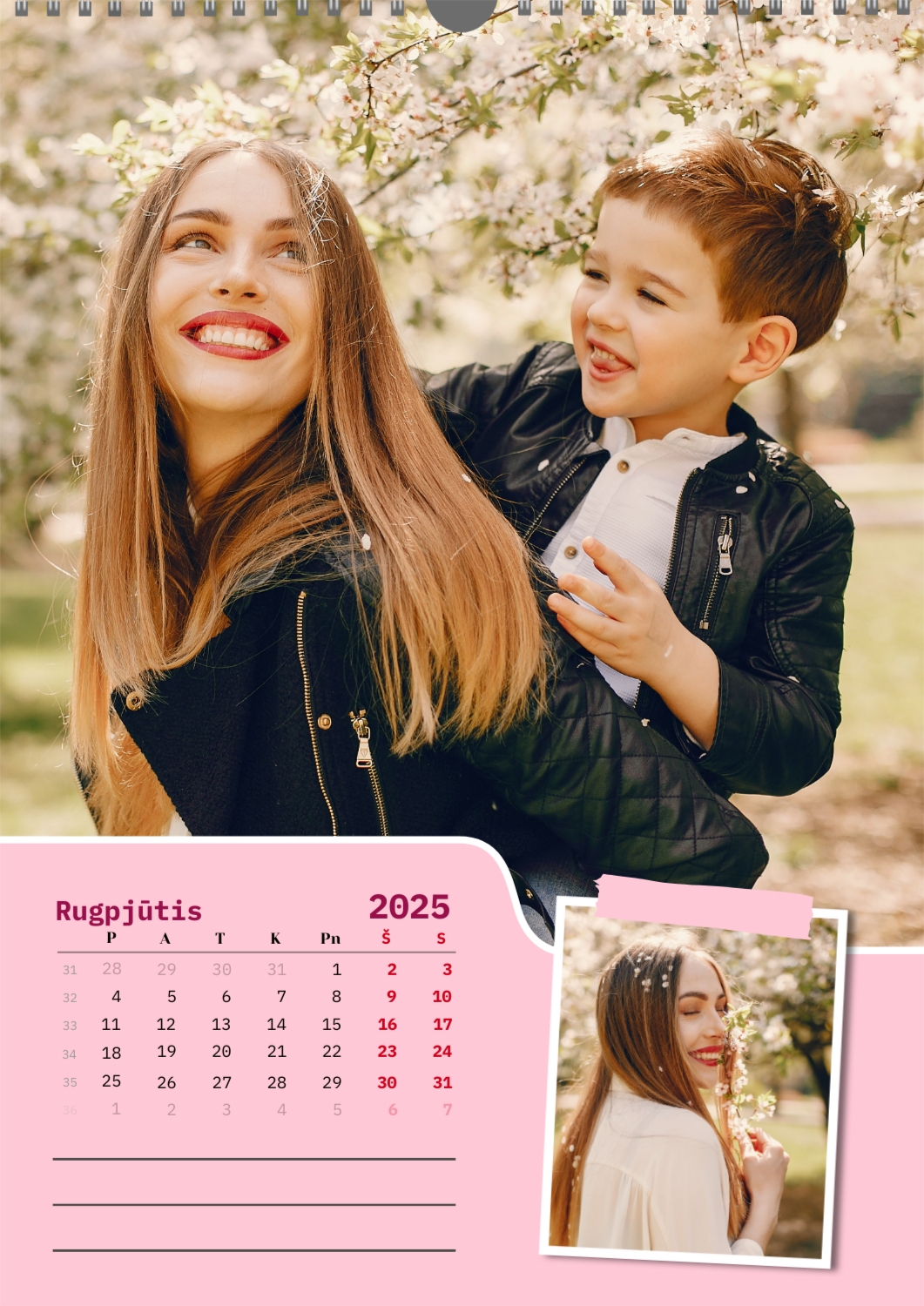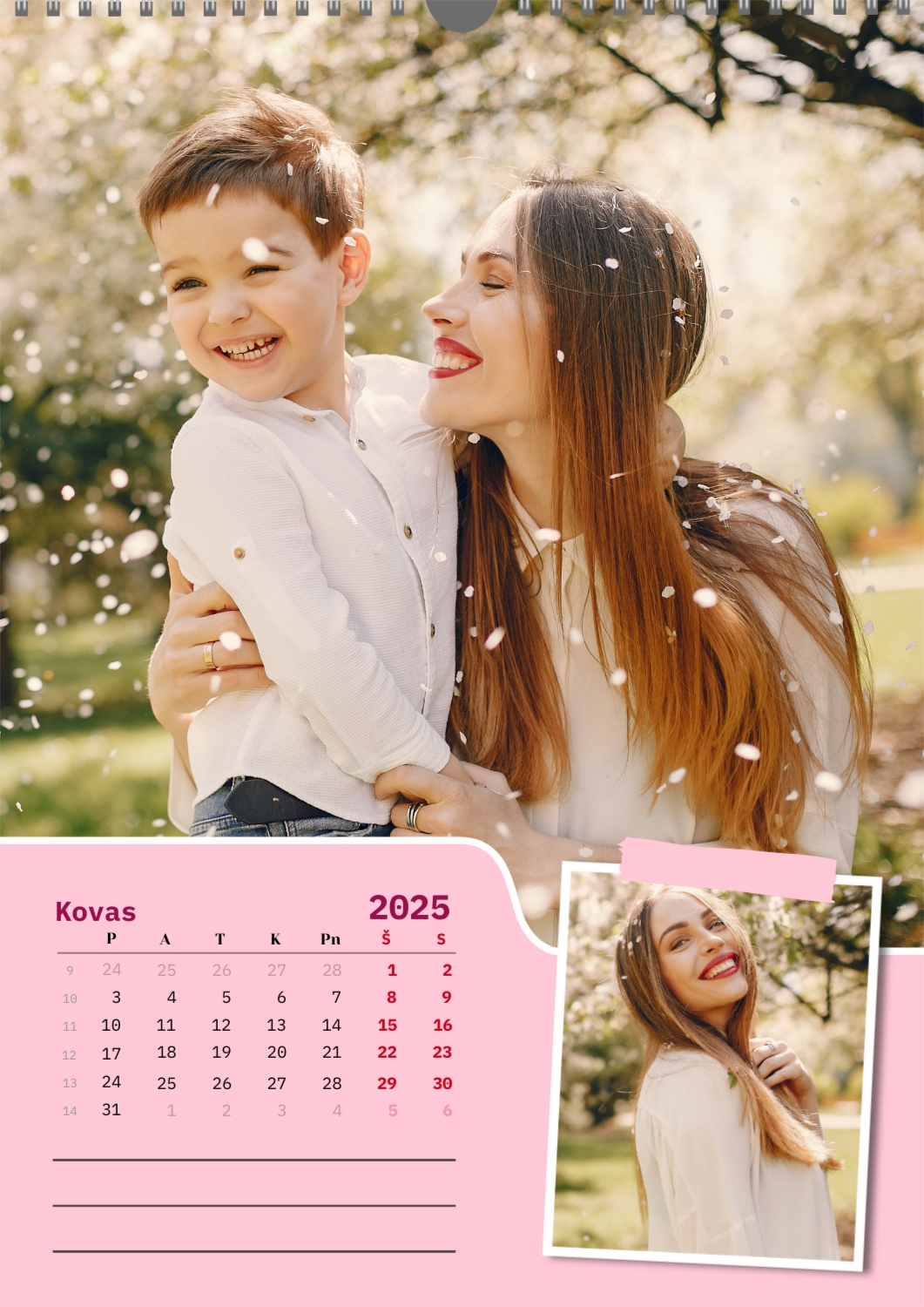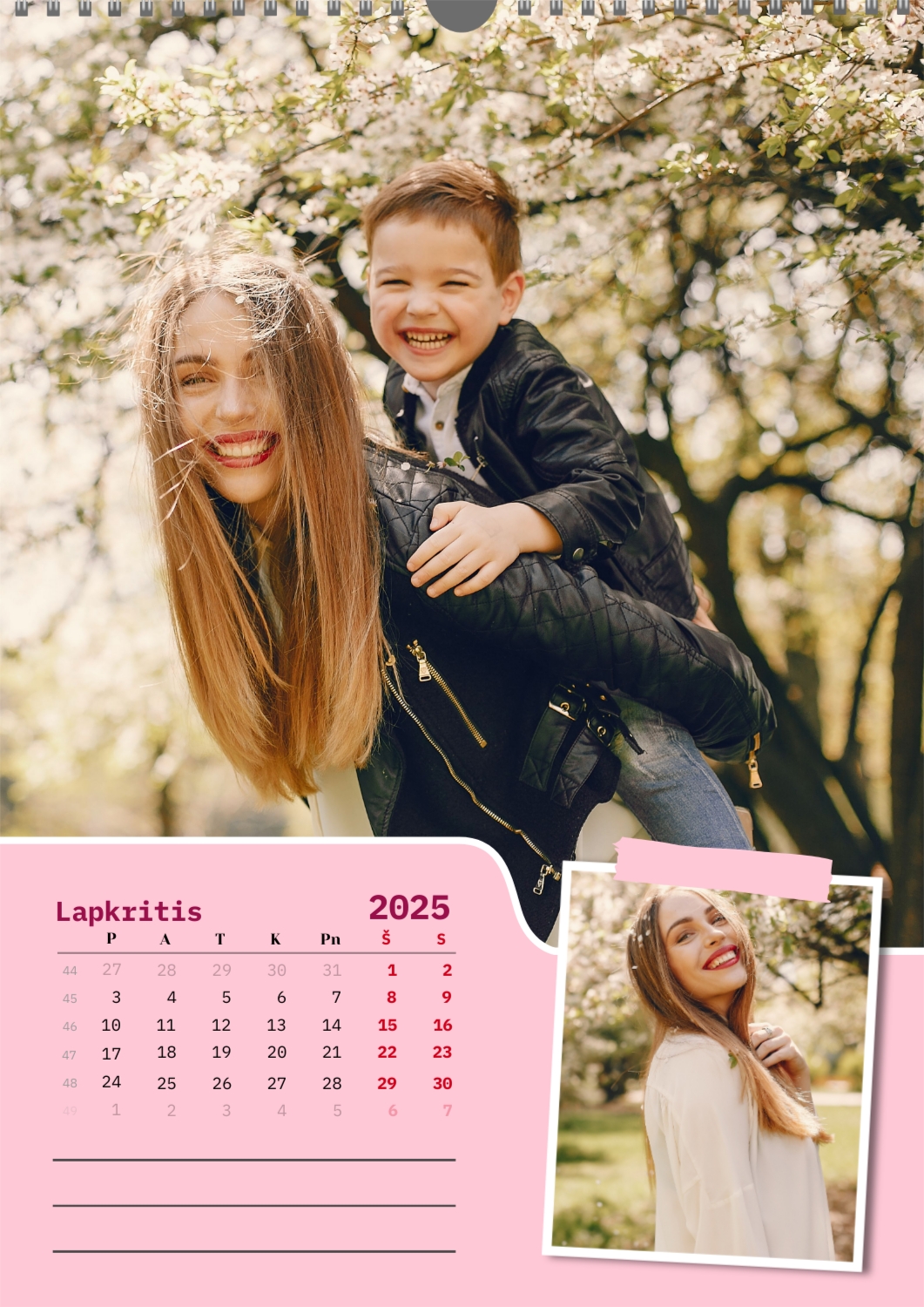 Nemokamas internetinis šalies stiliaus šeimos kalendoriaus šablonas įsimintinoms akimirkoms su galimybe jį redaguoti internetiniame kalendoriaus dizaineryje.