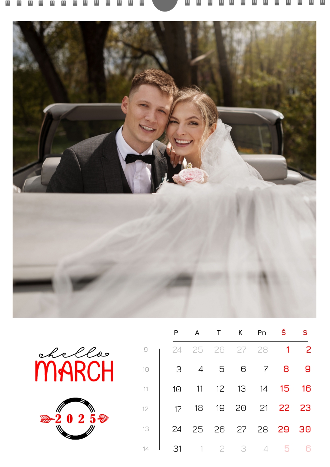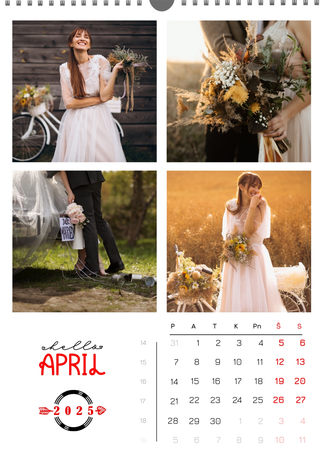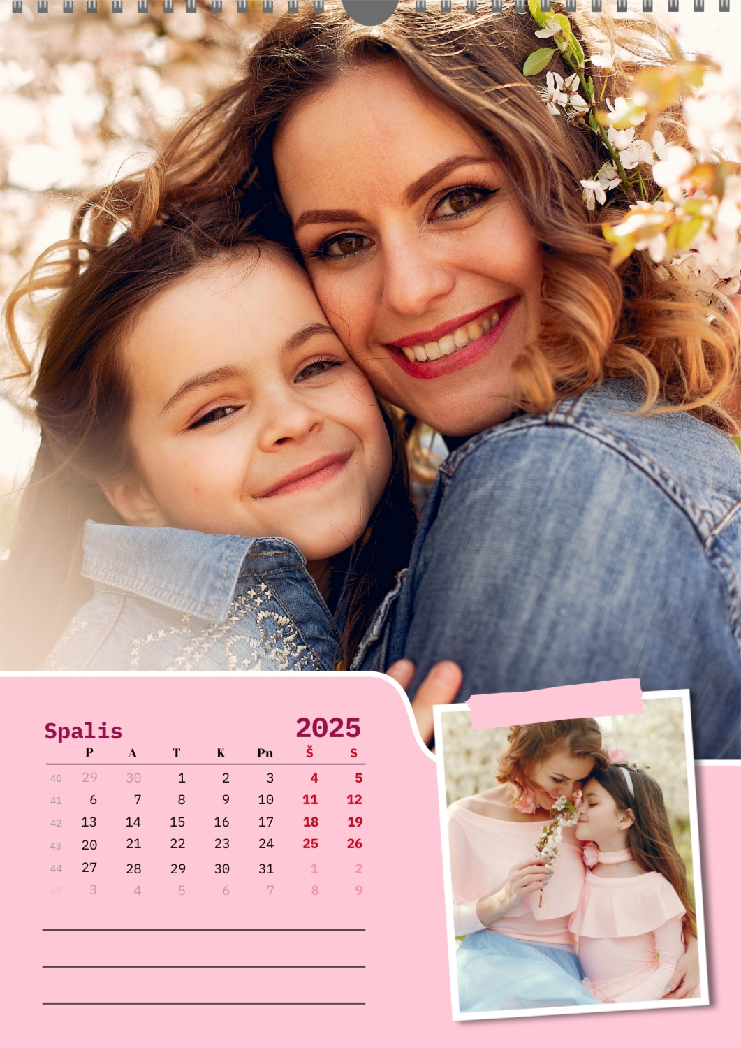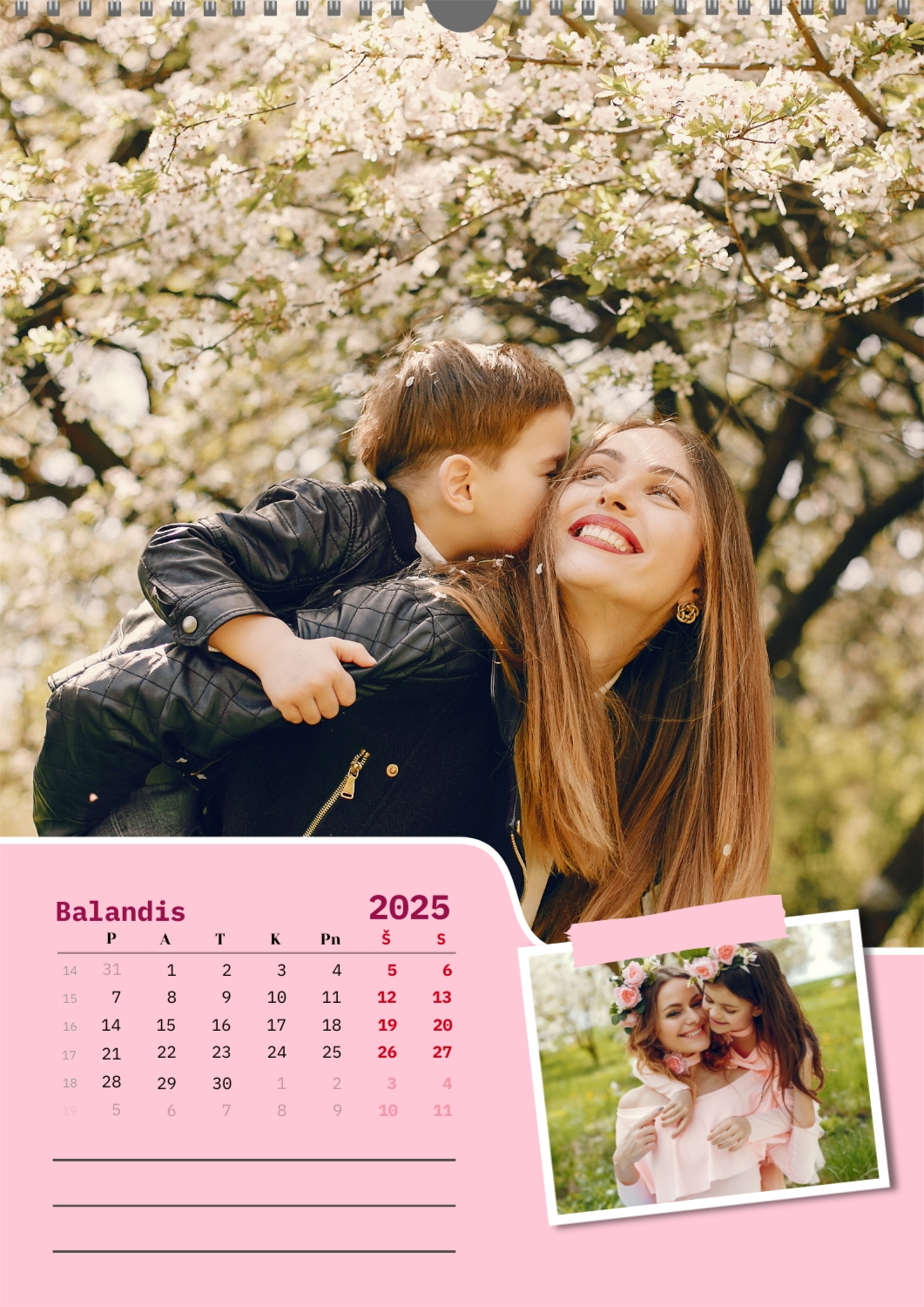 Nemokamas internetinis šalies stiliaus šeimos kalendoriaus šablonas įsimintinoms akimirkoms su galimybe jį redaguoti internetiniame kalendoriaus dizaineryje.