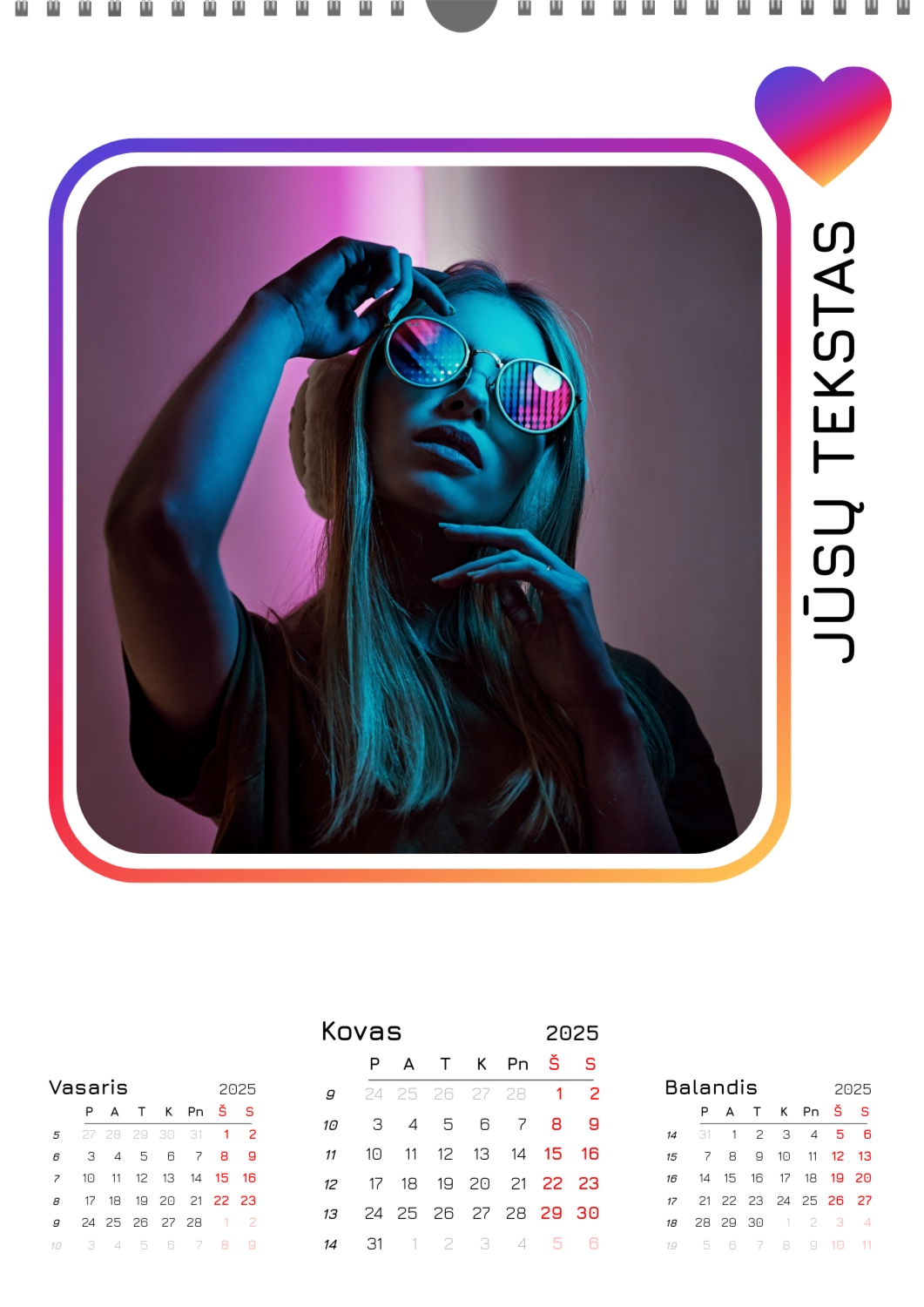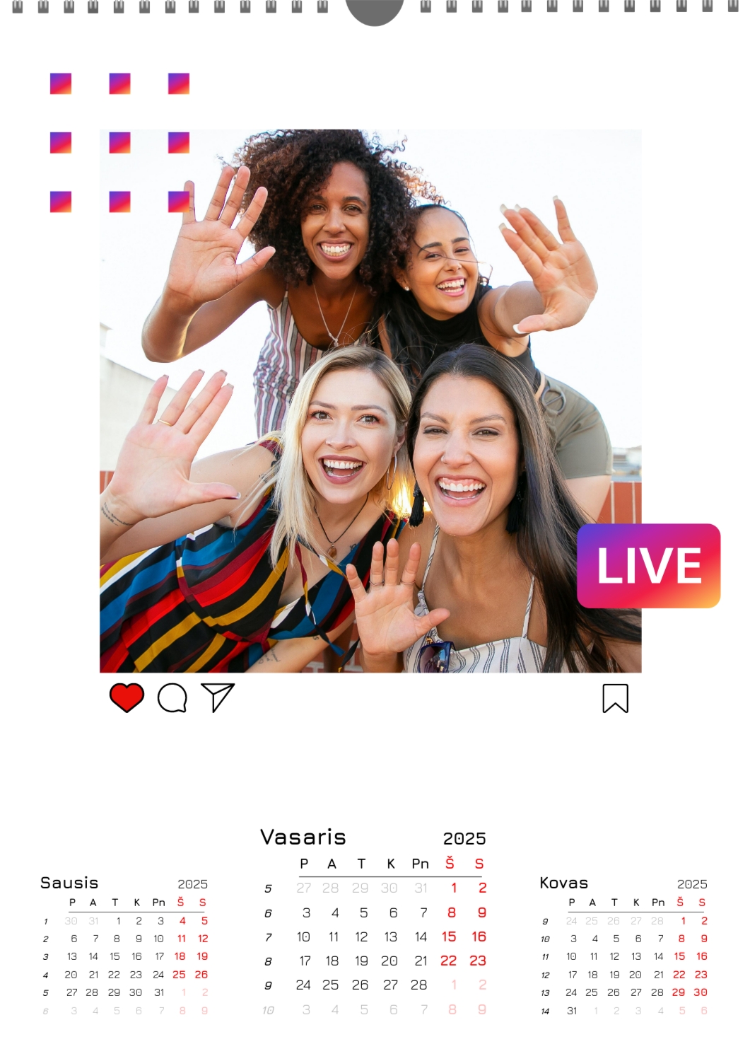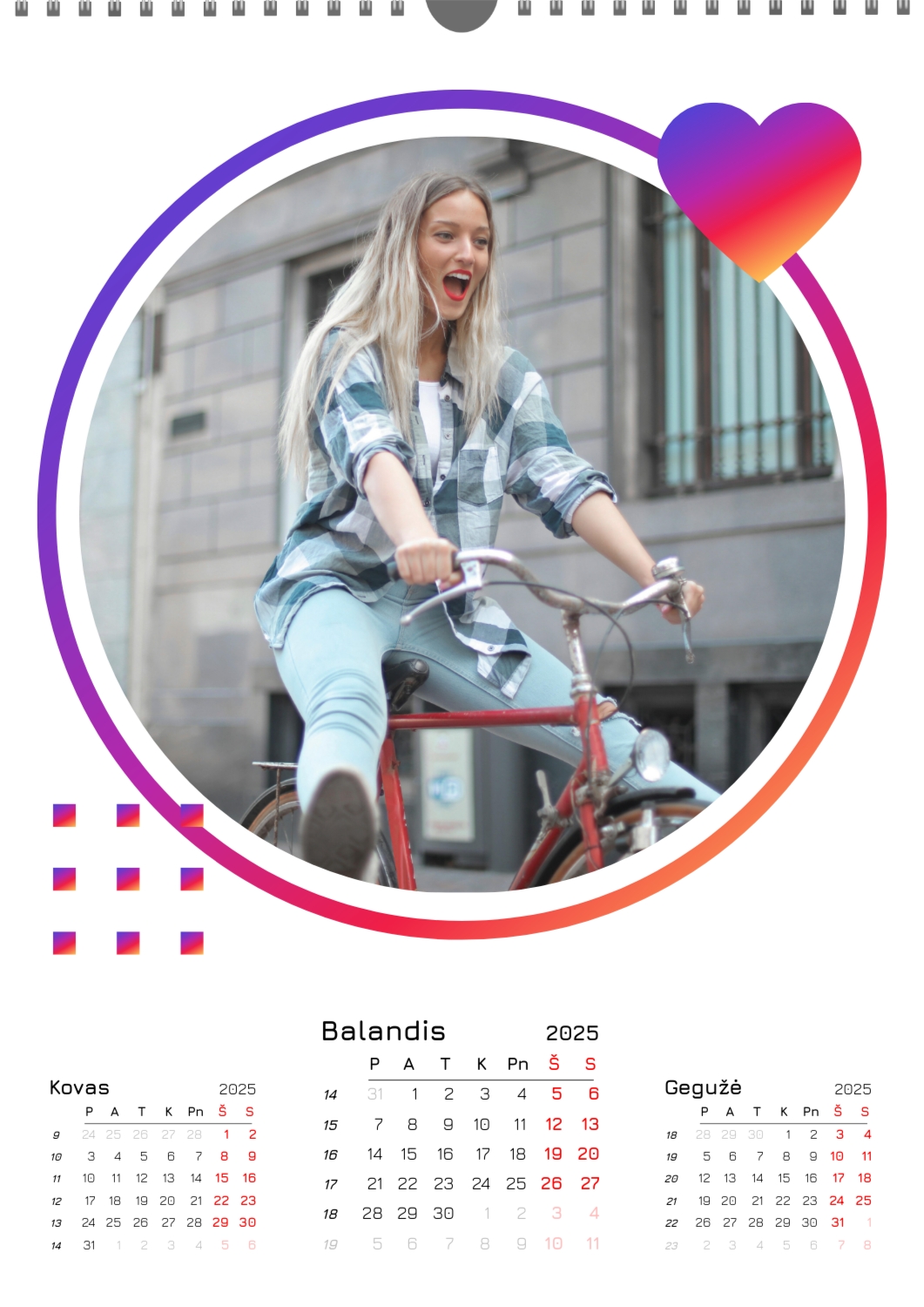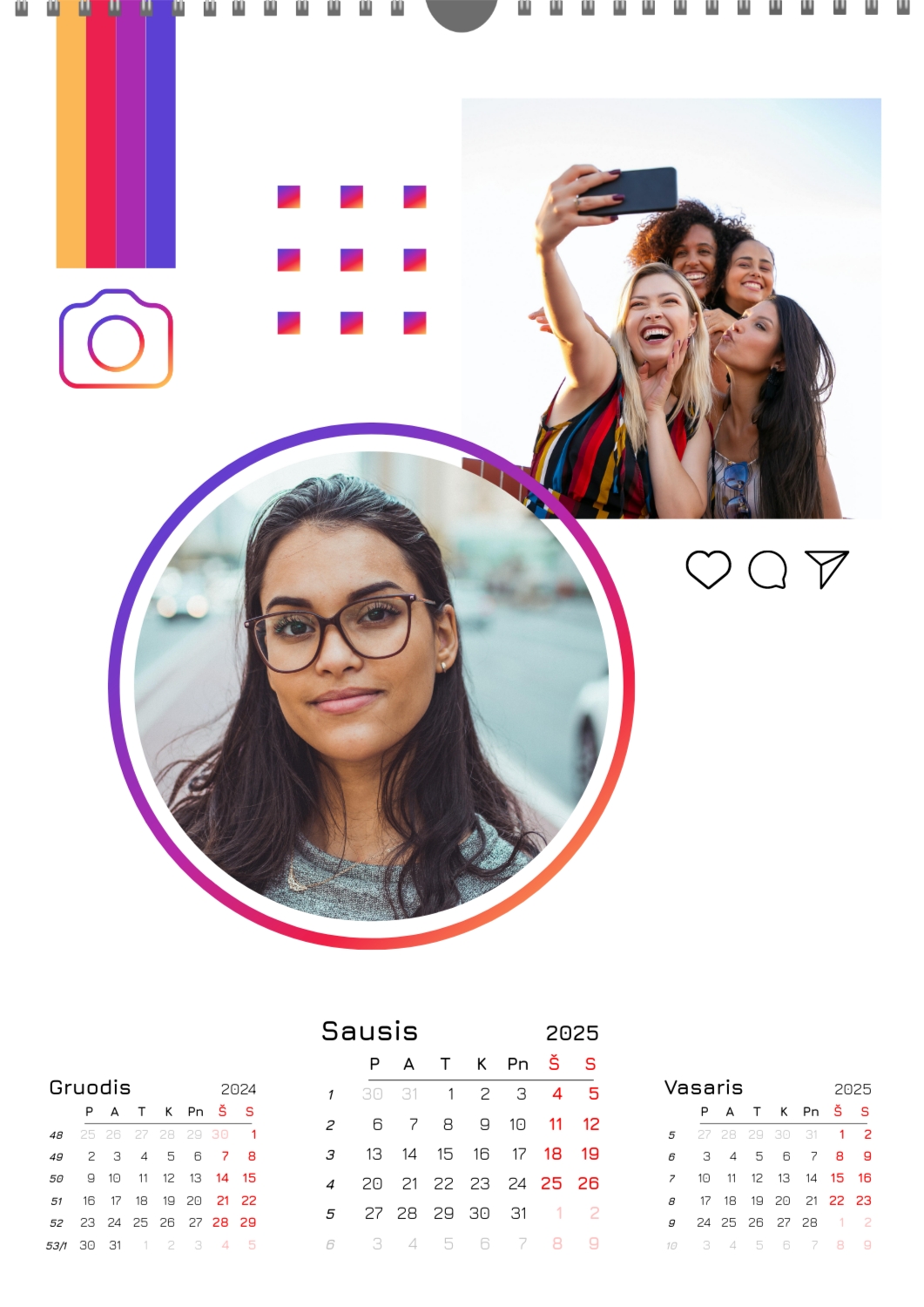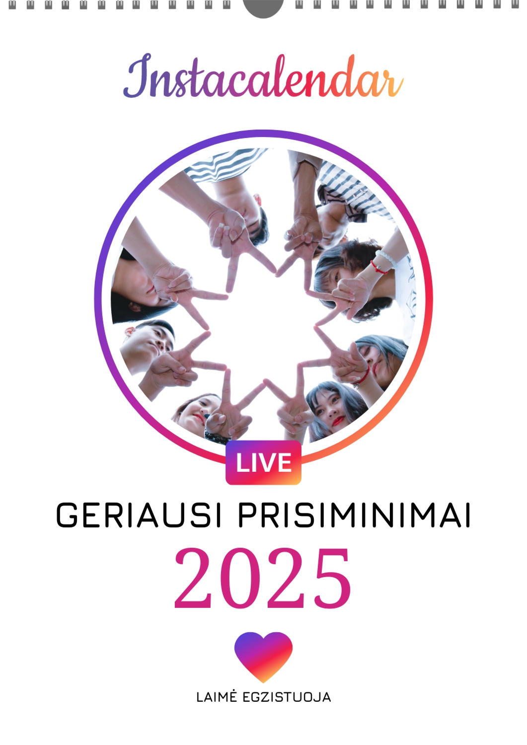 Nemokamas mokyklos kalendoriaus šablonas su klasės ar grupės nuotraukomis. Sukurkite išdėstymą su savo rankomis internetiniame kalendoriaus dizaineryje.