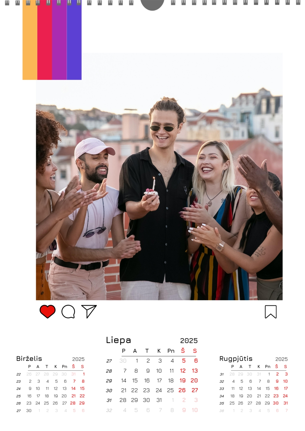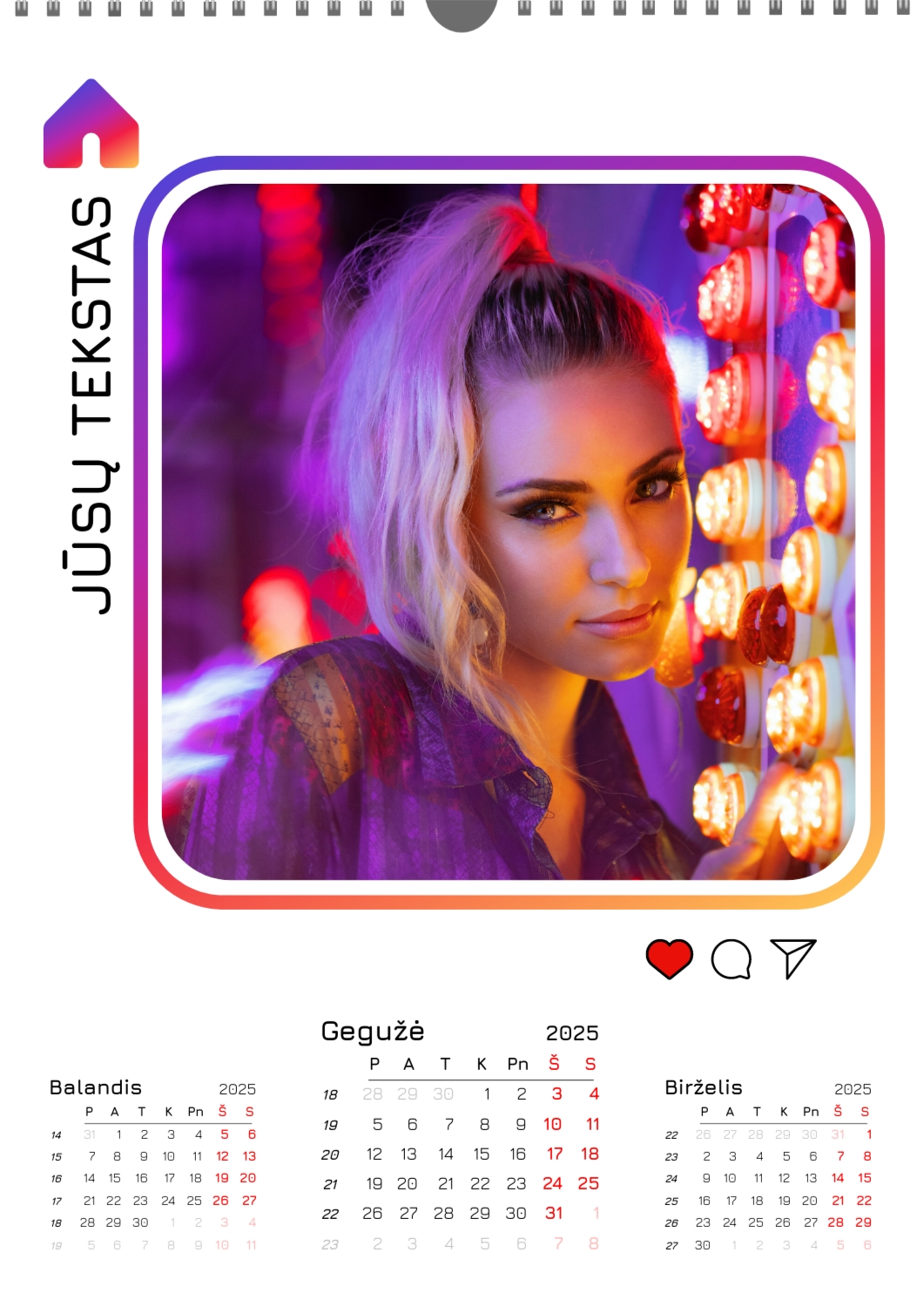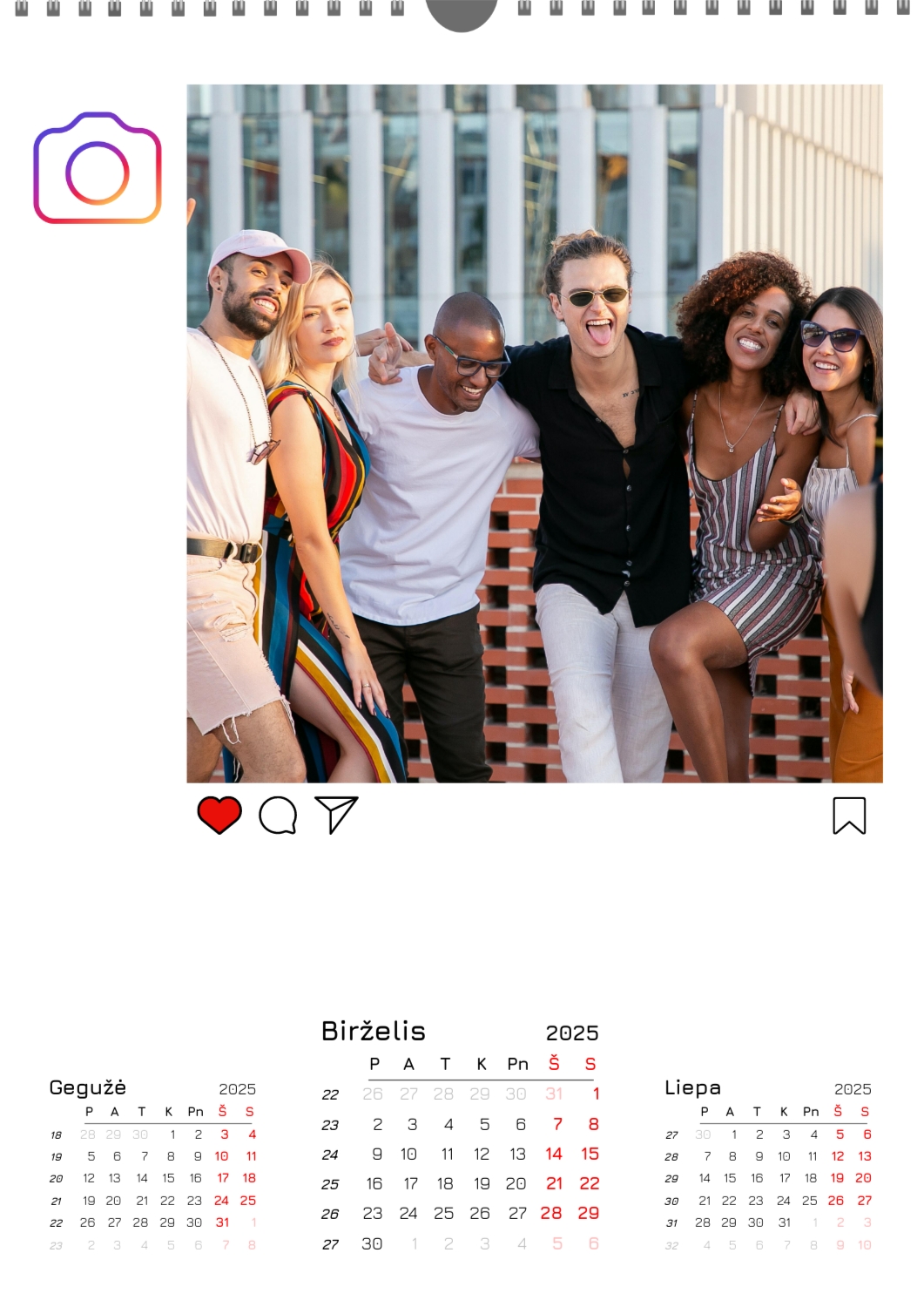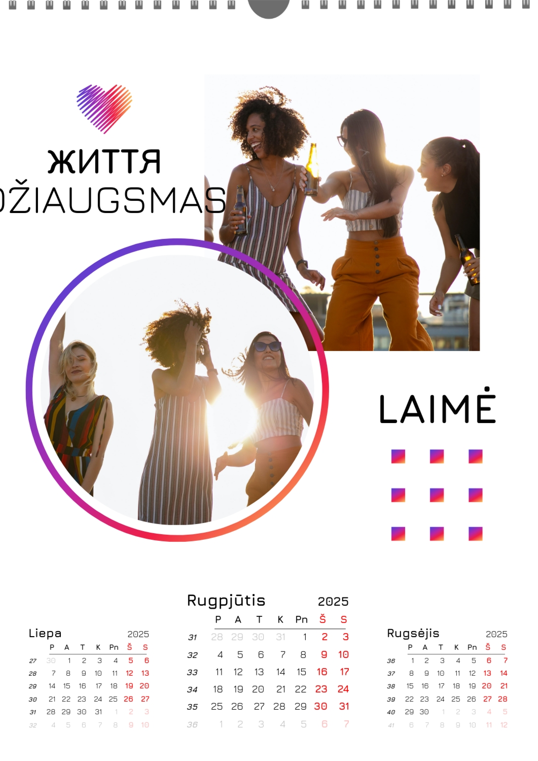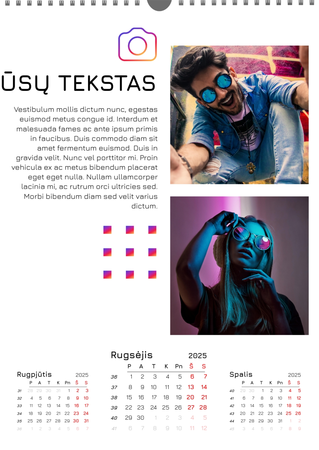 Nemokamas mokyklos kalendoriaus šablonas su klasės ar grupės nuotraukomis. Sukurkite išdėstymą su savo rankomis internetiniame kalendoriaus dizaineryje.