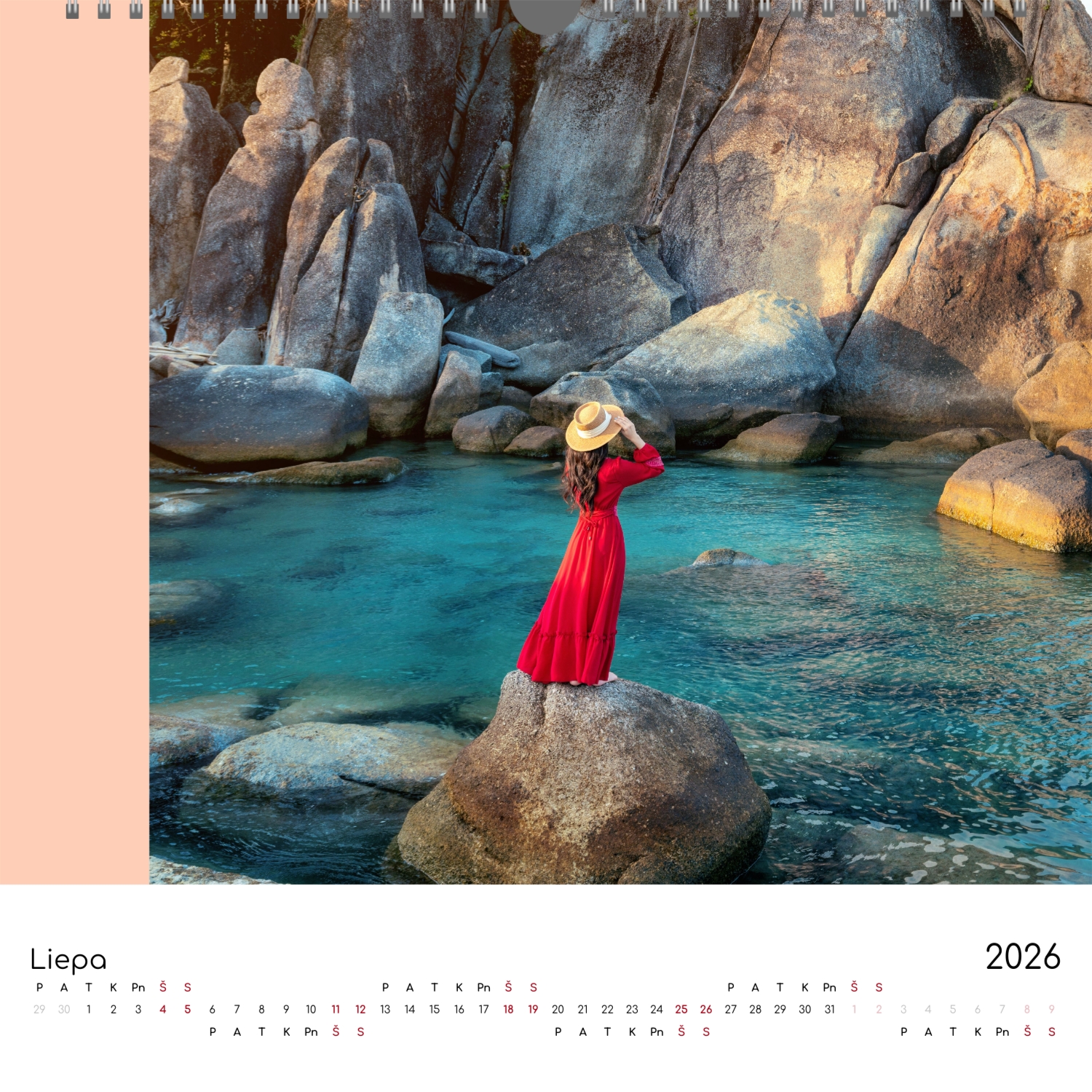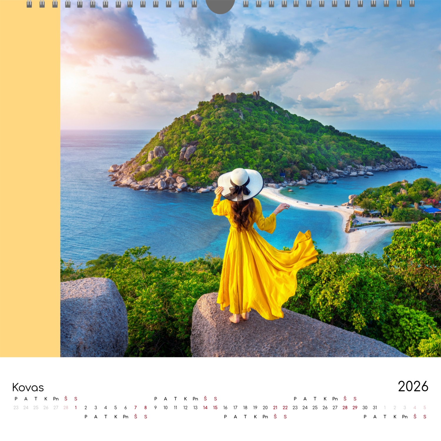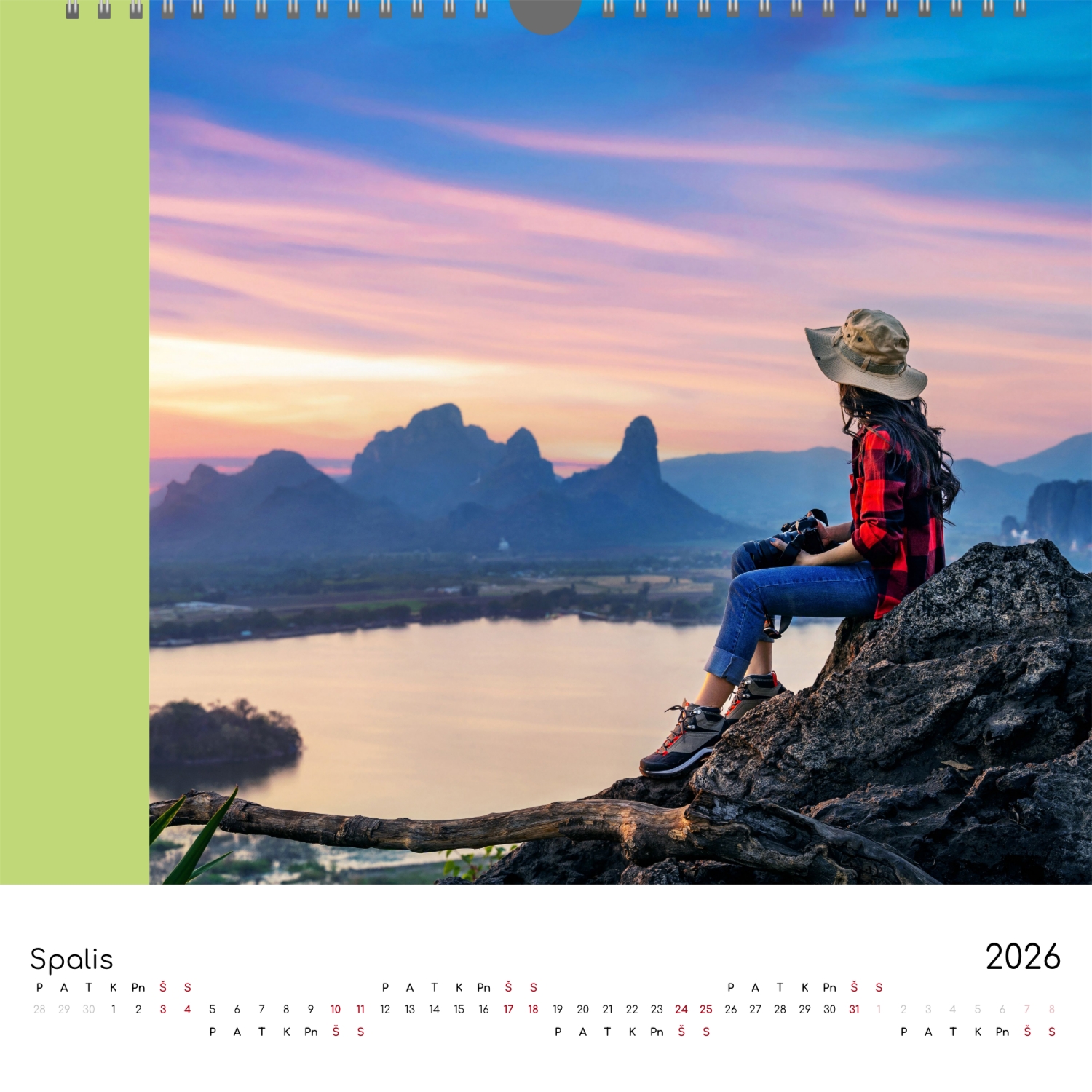 Nemokamas kalendoriaus šablonas su bendrais draugų prisiminimais. Sukurkite išdėstymą su savo rankomis internetiniame kalendoriaus dizaineryje.
