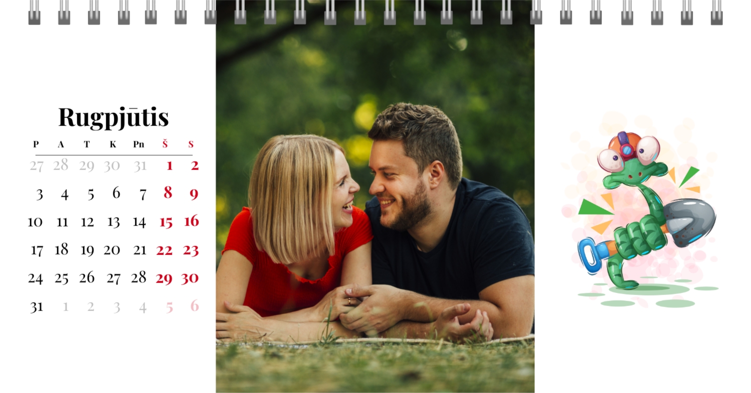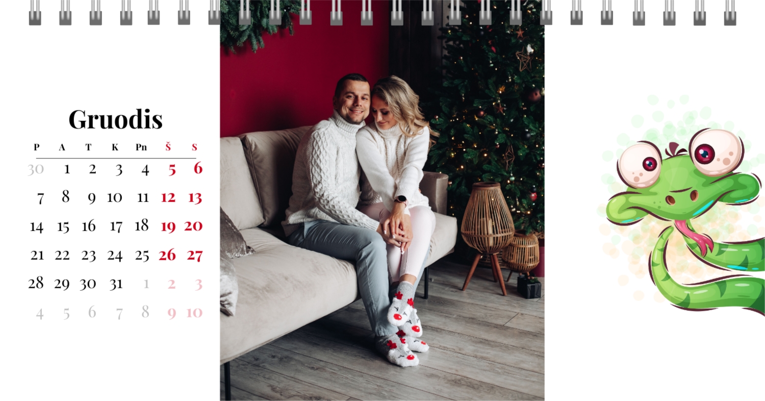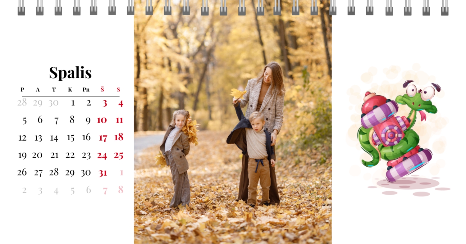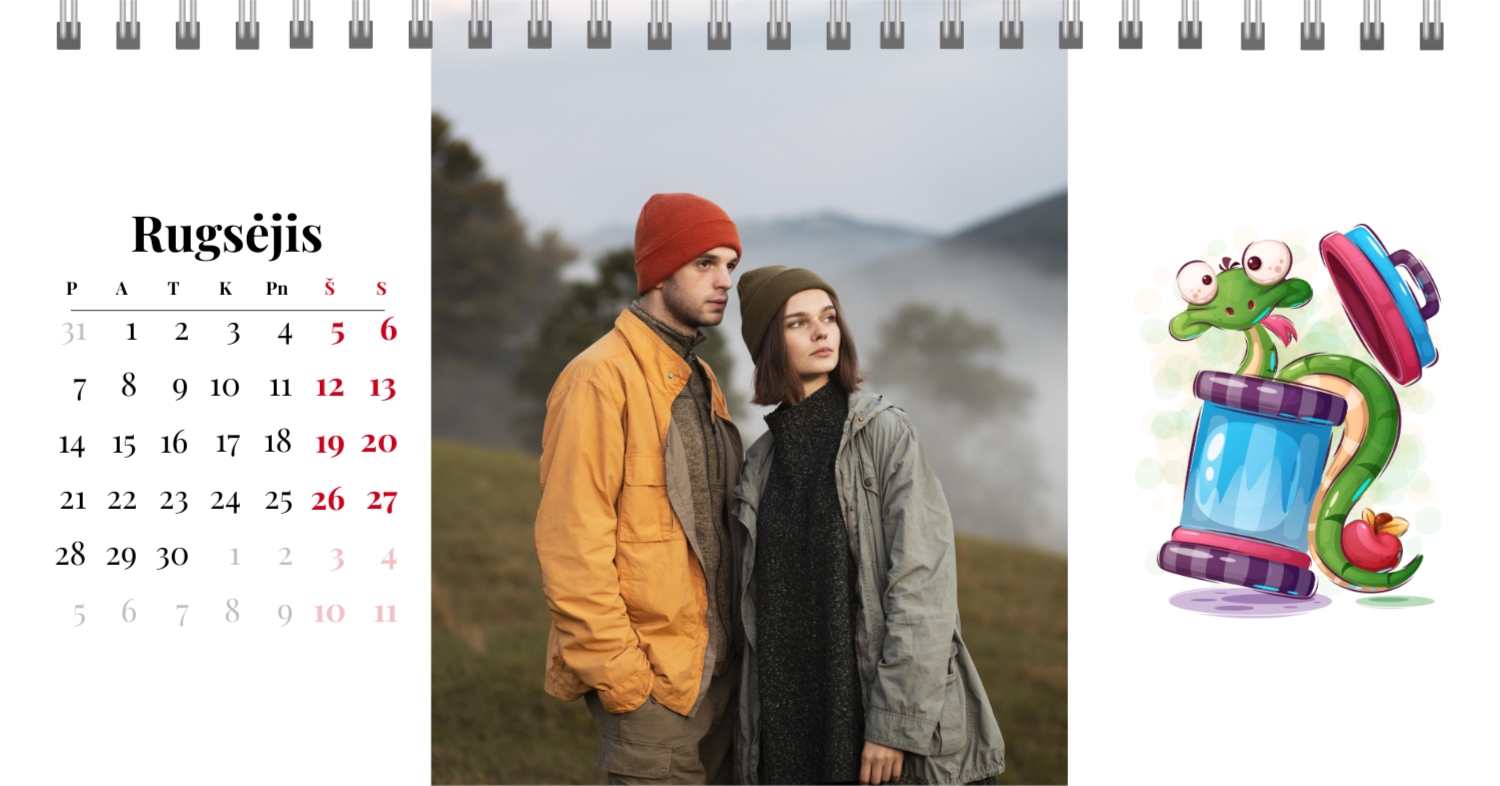 Paruoštas šeimos atostogų kalendoriaus šablonas yra idealus sprendimas tiems, kurie nori sukurti šiltą ir unikalią dovaną, užpildytą emocijomis. Mūsų internetiniame dizaineryje galite ne tik naudoti šį stilingą ir praktišką išdėstymą, bet ir visiškai pritaikyti jį savo norams ir poreikiams. Mūsų dizaineryje jūs lengvai pridėsite nuotraukas, pakeisite šriftus, spalvas ir parašus, kad jūsų darbalaukio kalendorius būtų toks, kokį jį pateikiate. Pavyzdžiui, galite pažymėti visas svarbias šeimos datas, pridėti Atmintinų įvykių vaizdus, pritaikyti išvaizdą pagal jūsų namų stilių.