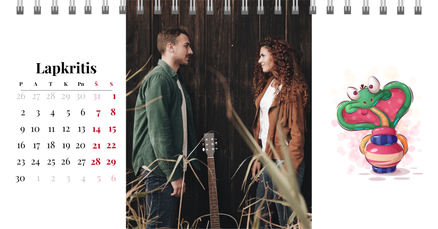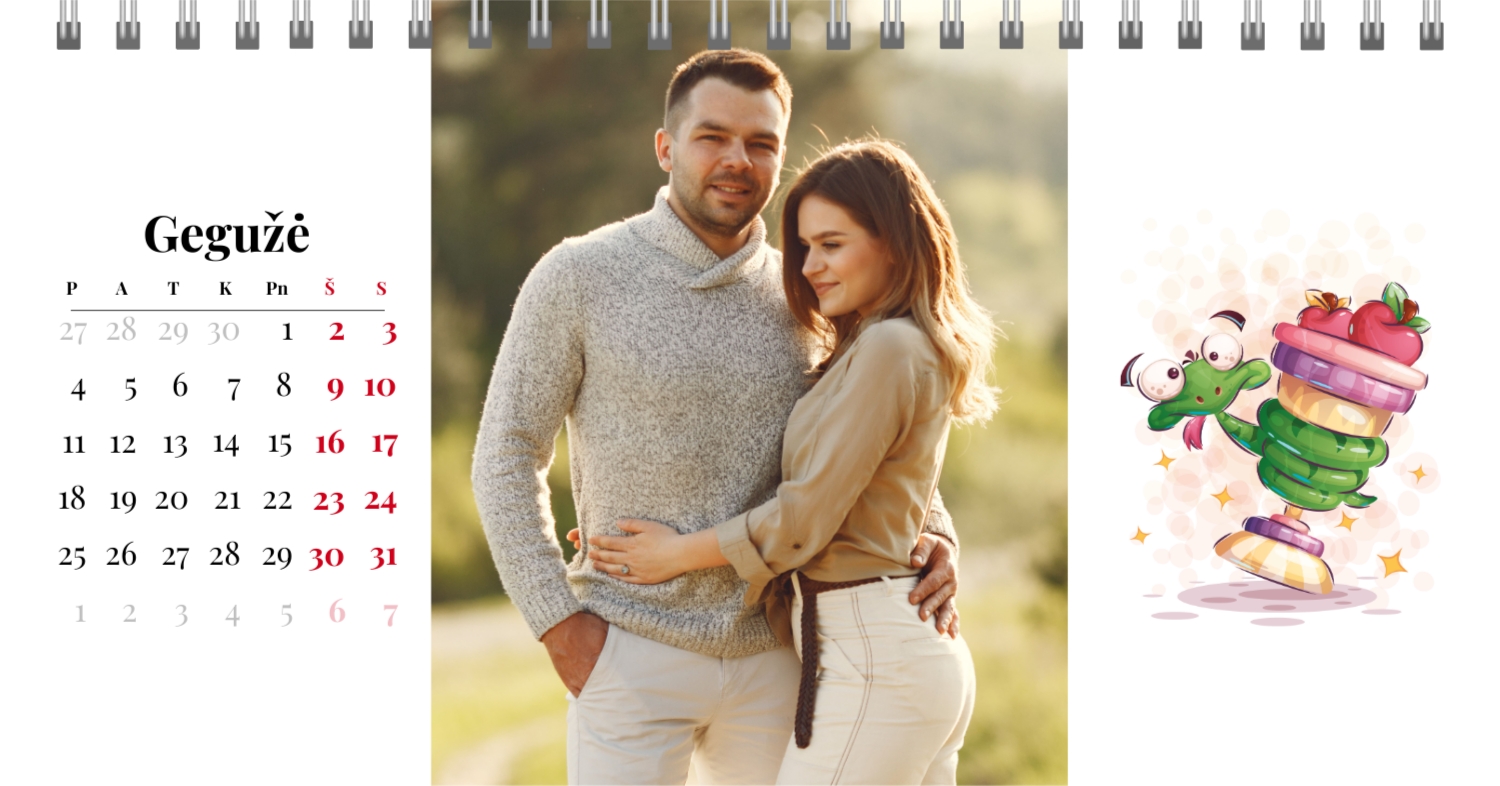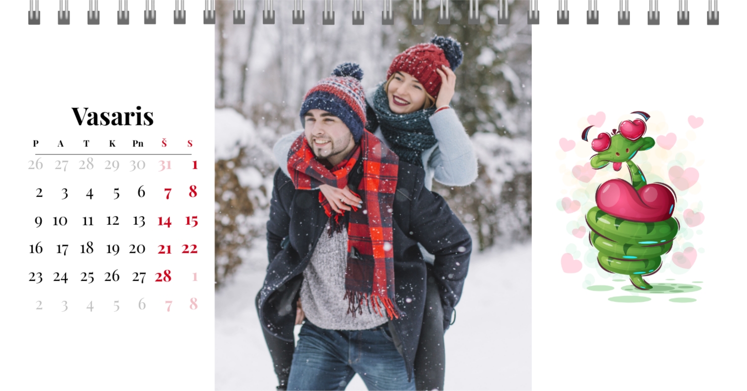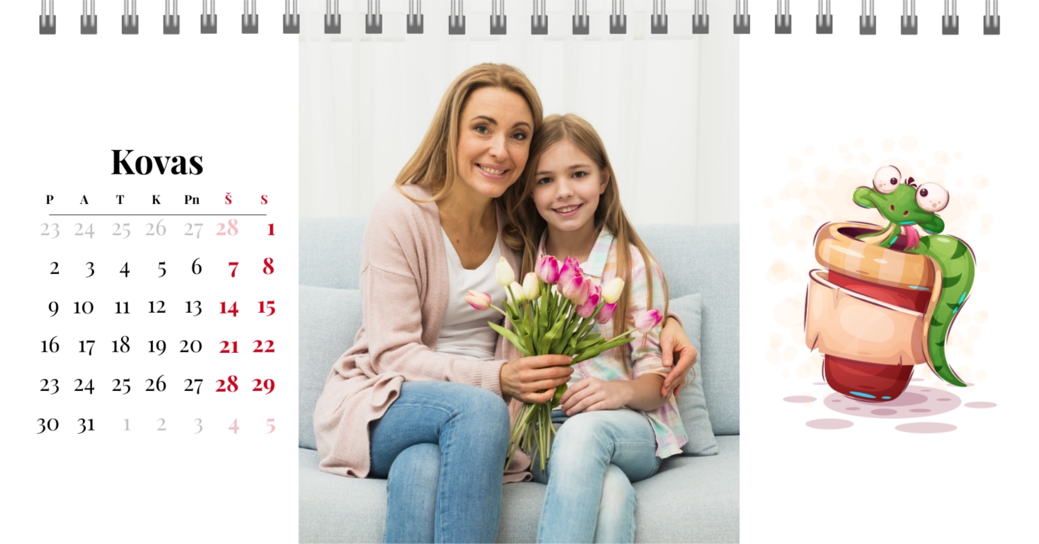 Paruoštas šeimos atostogų kalendoriaus šablonas yra idealus sprendimas tiems, kurie nori sukurti šiltą ir unikalią dovaną, užpildytą emocijomis. Mūsų internetiniame dizaineryje galite ne tik naudoti šį stilingą ir praktišką išdėstymą, bet ir visiškai pritaikyti jį savo norams ir poreikiams. Mūsų dizaineryje jūs lengvai pridėsite nuotraukas, pakeisite šriftus, spalvas ir parašus, kad jūsų darbalaukio kalendorius būtų toks, kokį jį pateikiate. Pavyzdžiui, galite pažymėti visas svarbias šeimos datas, pridėti Atmintinų įvykių vaizdus, pritaikyti išvaizdą pagal jūsų namų stilių.