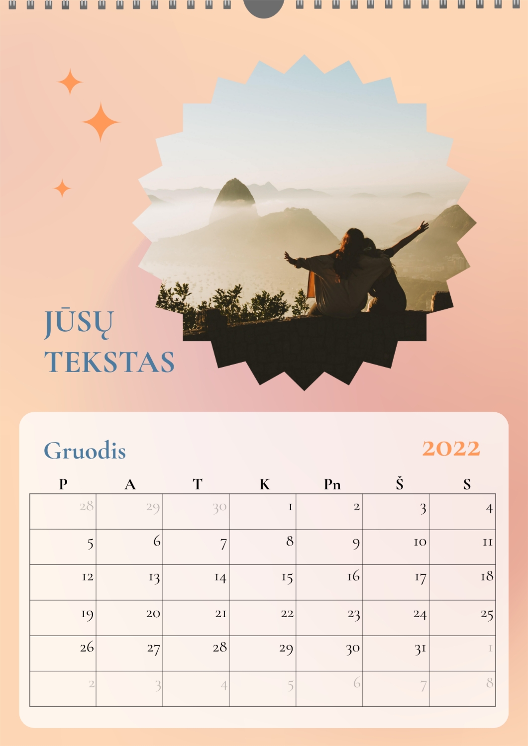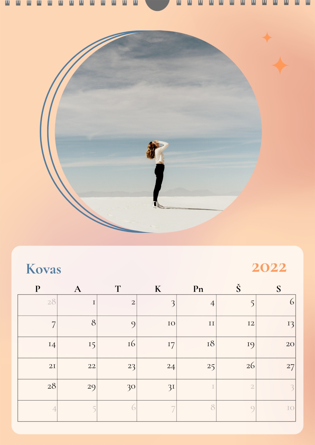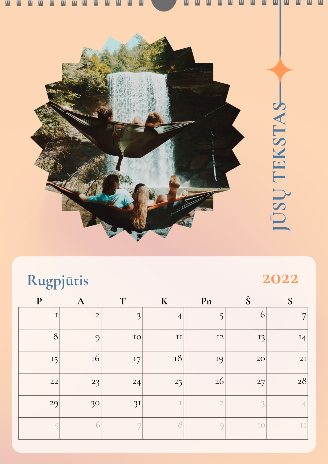 Kalendoriaus Šablonas "geriausi prisiminimai" yra idealus pagrindas sukurti asmeninį sieninį kalendorių, kuris atspindės svarbiausius jūsų gyvenimo momentus. Šis šablonas tinka bet kuriam vartotojui, norinčiam pabrėžti individualumą ir išsaugoti svarbius įvykius stilingu ir funkcionaliu formatu. Tai ypač naudinga fotografams, poroms, kūrybinių studijų ar mažų įmonių savininkams, kurie nori sukurti unikalų produktą klientams arba suteikti savo artimiesiems kažką ypatingo. Pagrindinis šablono "geriausi prisiminimai" bruožas yra jo universalumas. Galite lengvai pritaikyti dizainą savo poreikiams naudodami mūsų patogų internetinį dizainerį. Redagavimas leidžia jums pakeisti nuotraukas, pridėti teksto blokus su svarbiomis datomis ar įkvepiančiomis citatomis, taip pat pasirinkti spalvų schemą, kuri pabrėžia jūsų nuotaiką. Dizaineris siūlo paprastą sąsają, kur jūs tiesiog sukursite unikalų kalendorių savo rankomis, pridedant asmeninius smūgius ir eksperimentuojant su dizaino elementais. Šis šablonas bus puikus sprendimas tiems, kurie nori derinti kūrybiškumą su praktiškumu. Pavyzdžiui, jogos studijų savininkai gali įklijuoti savo pamokų nuotraukas, kad motyvuotų studentus, o fotografai-naudoti šabloną savo darbams pristatyti. Dėl laisvo redagavimo galimybės "geriausi prisiminimai" tampa ne tik kalendoriumi, bet ir tikra istorija, dekoruota stilingu ir patogiu formatu.
