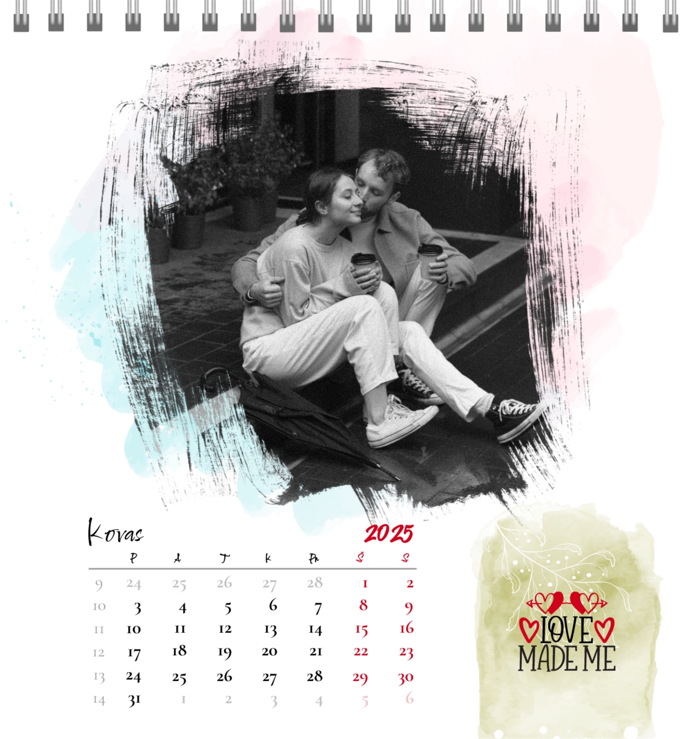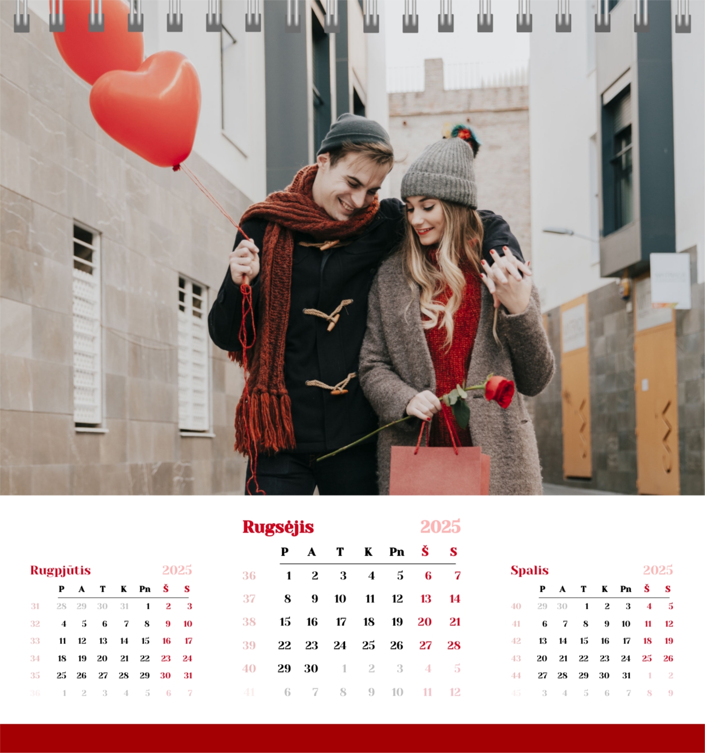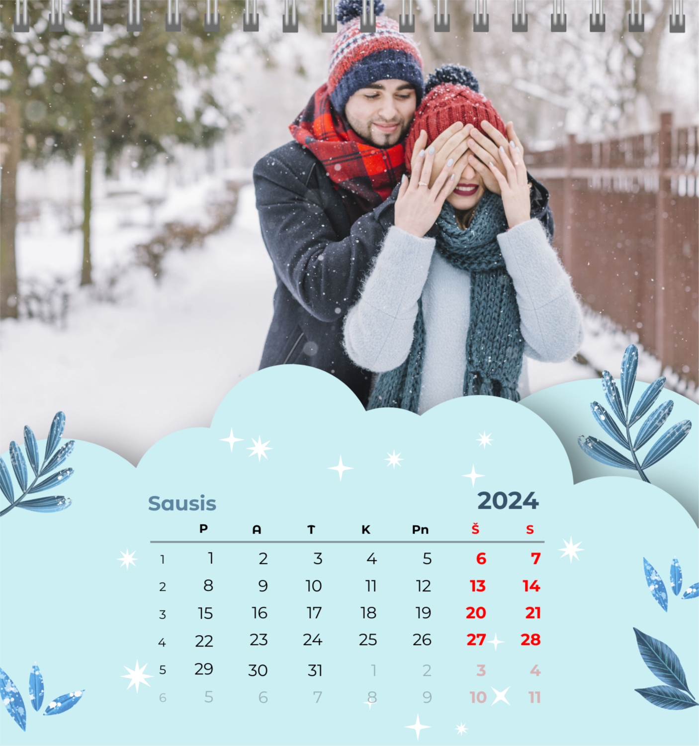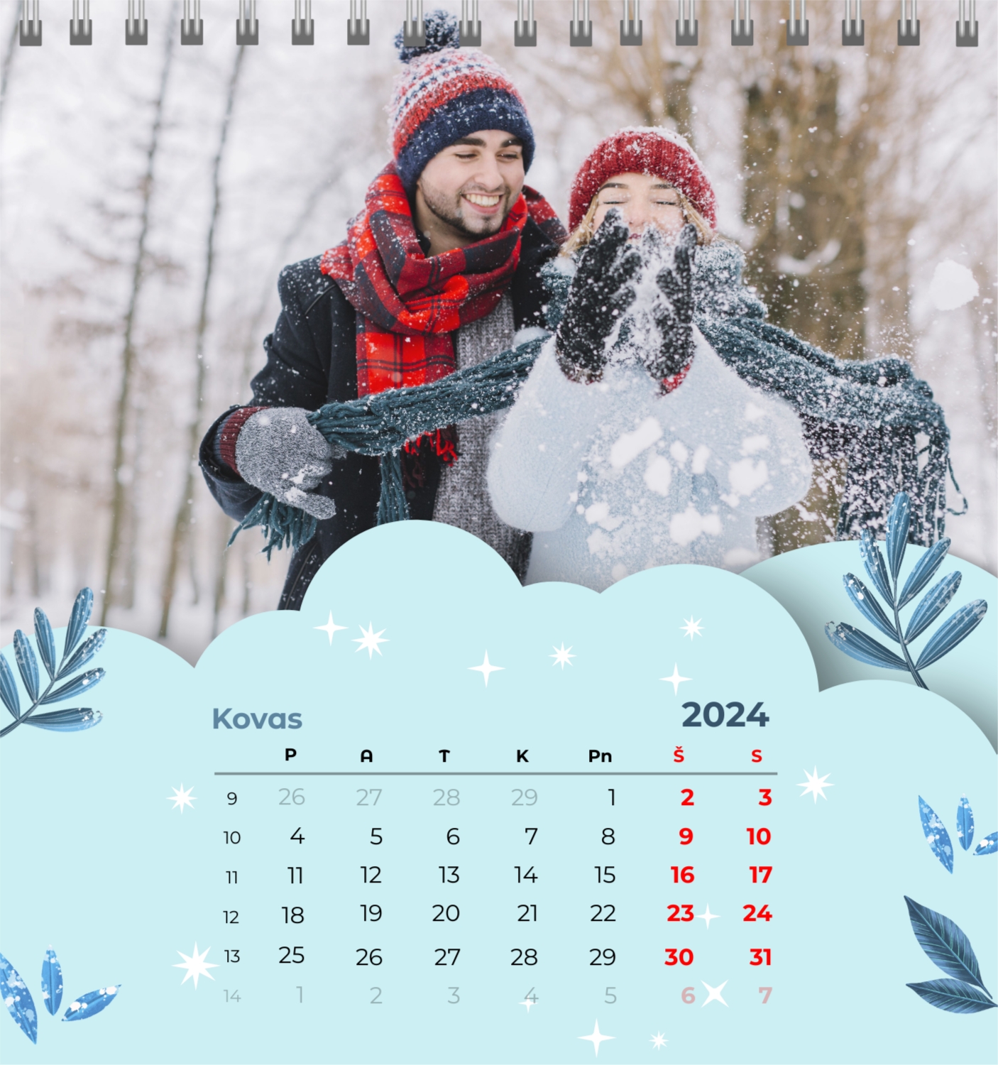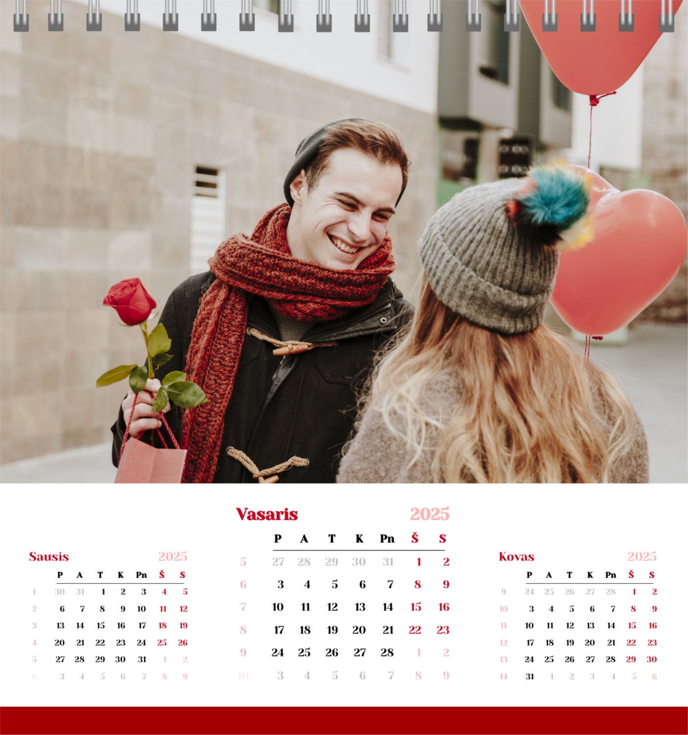 Kalendoriaus Šablonas "geriausi prisiminimai" yra idealus pagrindas sukurti asmeninį 13 puslapių darbalaukio kalendorių, kuris atspindės svarbiausius jūsų gyvenimo momentus. Šis šablonas tinka bet kuriam vartotojui, norinčiam pabrėžti individualumą ir išsaugoti svarbius įvykius stilingu ir funkcionaliu formatu. Tai ypač naudinga fotografams, poroms, kūrybinių studijų ar mažų įmonių savininkams, kurie nori sukurti unikalų produktą klientams arba suteikti savo artimiesiems kažką ypatingo. Galite lengvai pritaikyti dizainą savo poreikiams naudodami mūsų patogų internetinį dizainerį. Redagavimas leidžia jums pakeisti nuotraukas, pridėti teksto blokus su svarbiomis datomis ar įkvepiančiomis citatomis, taip pat pasirinkti spalvų schemą, kuri pabrėžia jūsų nuotaiką. Dizaineris siūlo paprastą sąsają, kur jūs tiesiog sukursite unikalų kalendorių savo rankomis, pridedant asmeninius smūgius ir eksperimentuojant su dizaino elementais.