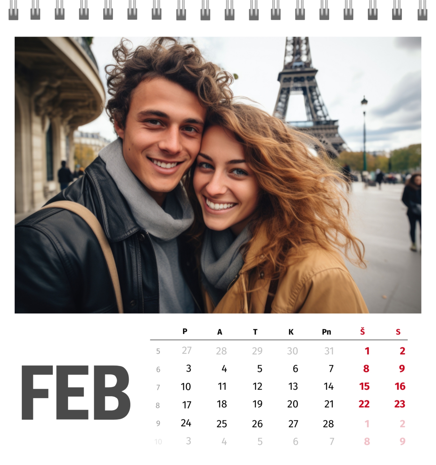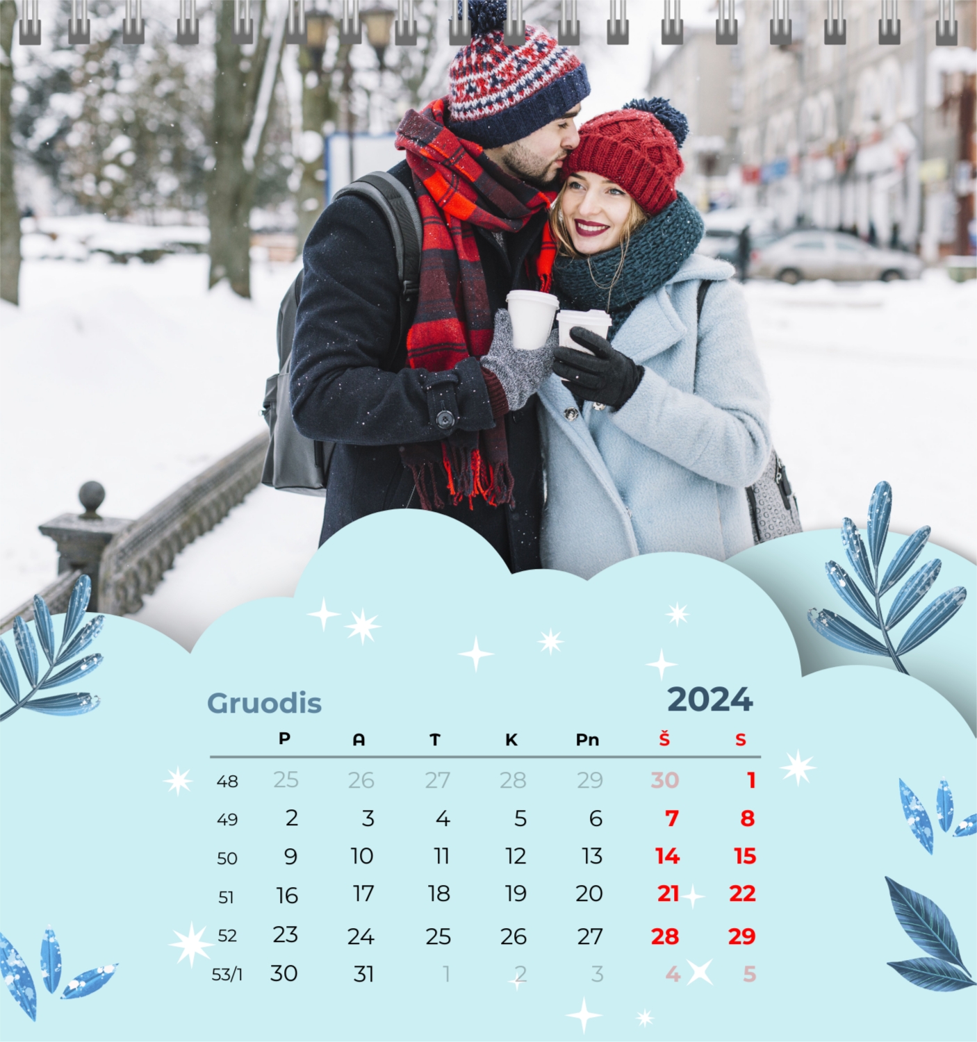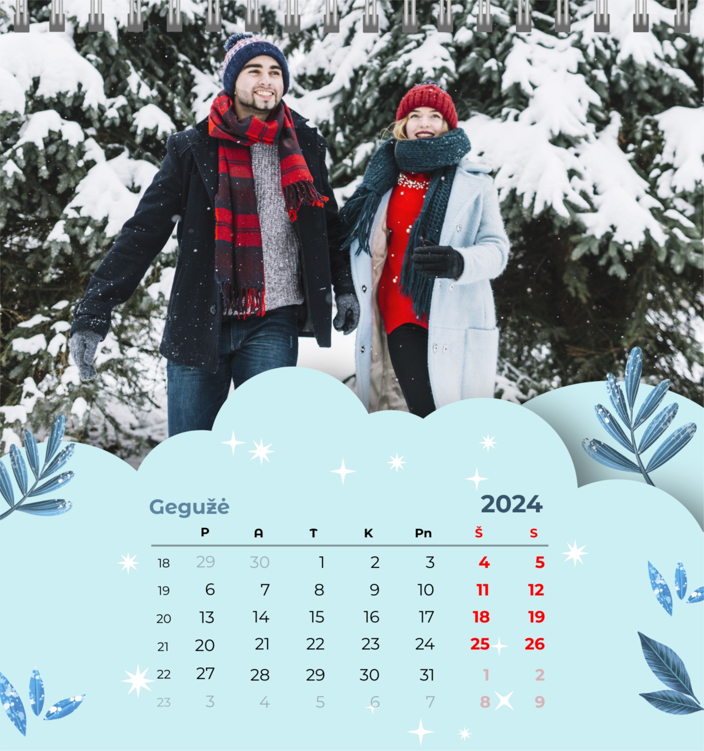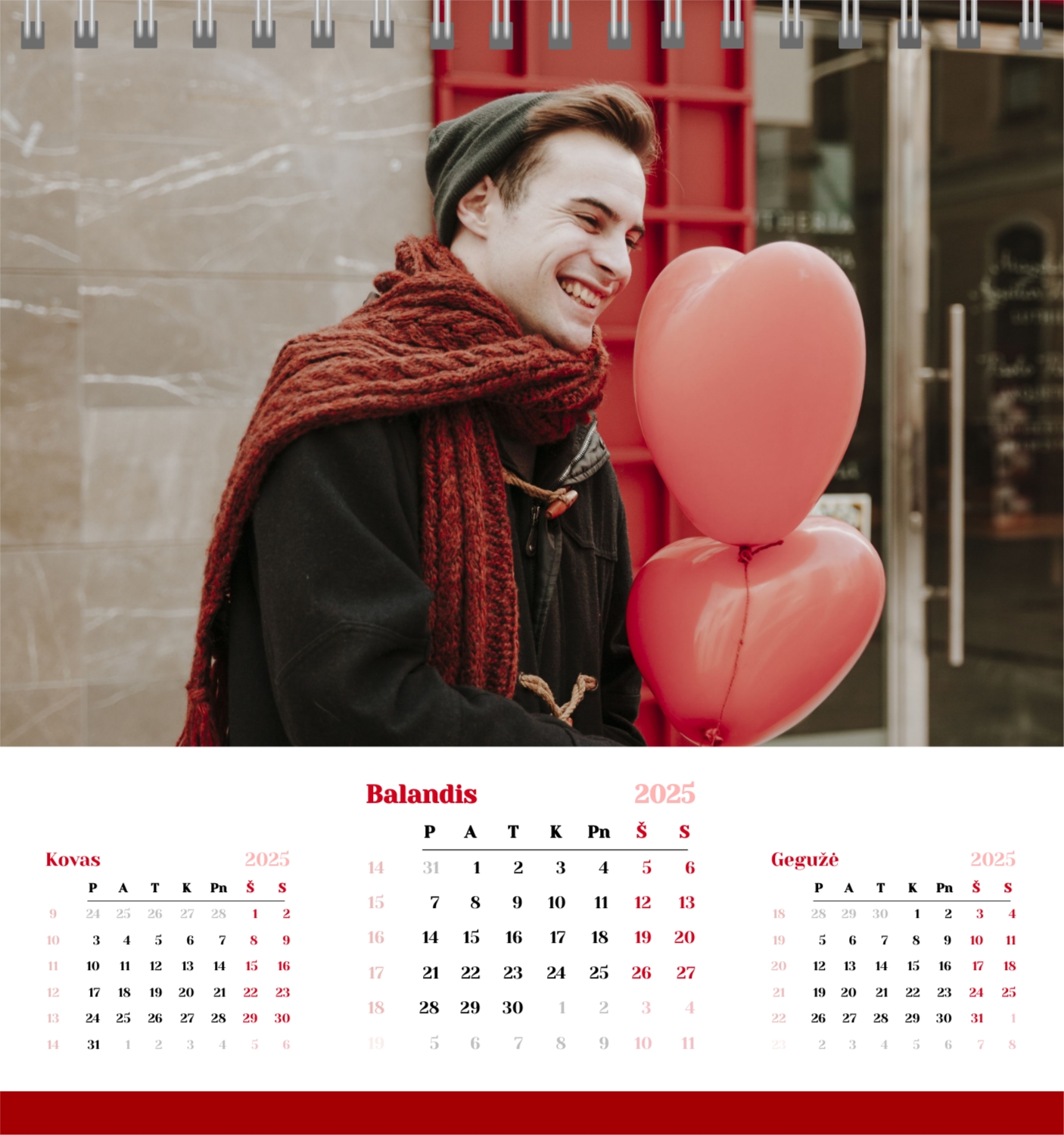 Kalendoriaus Šablonas "geriausi prisiminimai" yra idealus pagrindas sukurti asmeninį 13 puslapių darbalaukio kalendorių, kuris atspindės svarbiausius jūsų gyvenimo momentus. Šis šablonas tinka bet kuriam vartotojui, norinčiam pabrėžti individualumą ir išsaugoti svarbius įvykius stilingu ir funkcionaliu formatu. Tai ypač naudinga fotografams, poroms, kūrybinių studijų ar mažų įmonių savininkams, kurie nori sukurti unikalų produktą klientams arba suteikti savo artimiesiems kažką ypatingo. Galite lengvai pritaikyti dizainą savo poreikiams naudodami mūsų patogų internetinį dizainerį. Redagavimas leidžia jums pakeisti nuotraukas, pridėti teksto blokus su svarbiomis datomis ar įkvepiančiomis citatomis, taip pat pasirinkti spalvų schemą, kuri pabrėžia jūsų nuotaiką. Dizaineris siūlo paprastą sąsają, kur jūs tiesiog sukursite unikalų kalendorių savo rankomis, pridedant asmeninius smūgius ir eksperimentuojant su dizaino elementais.