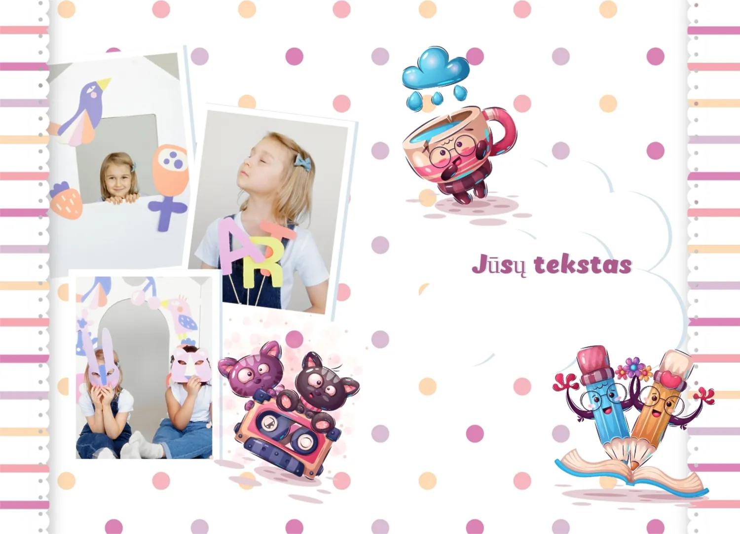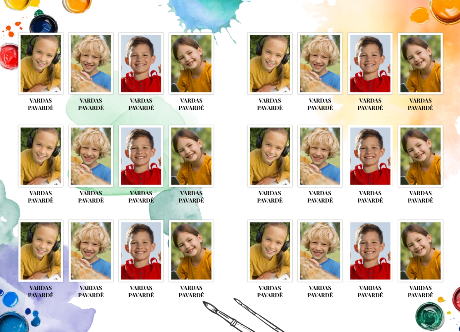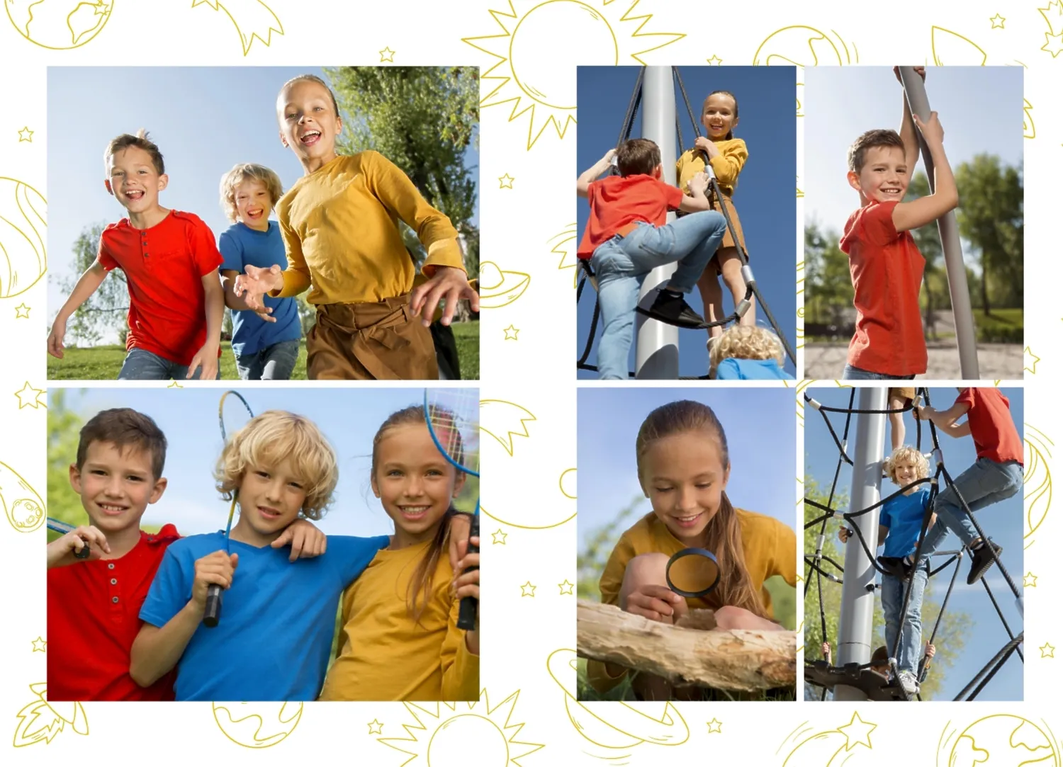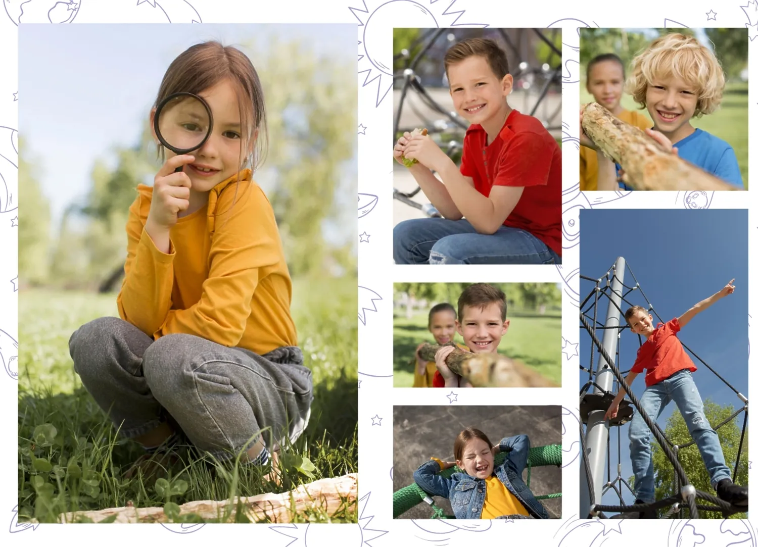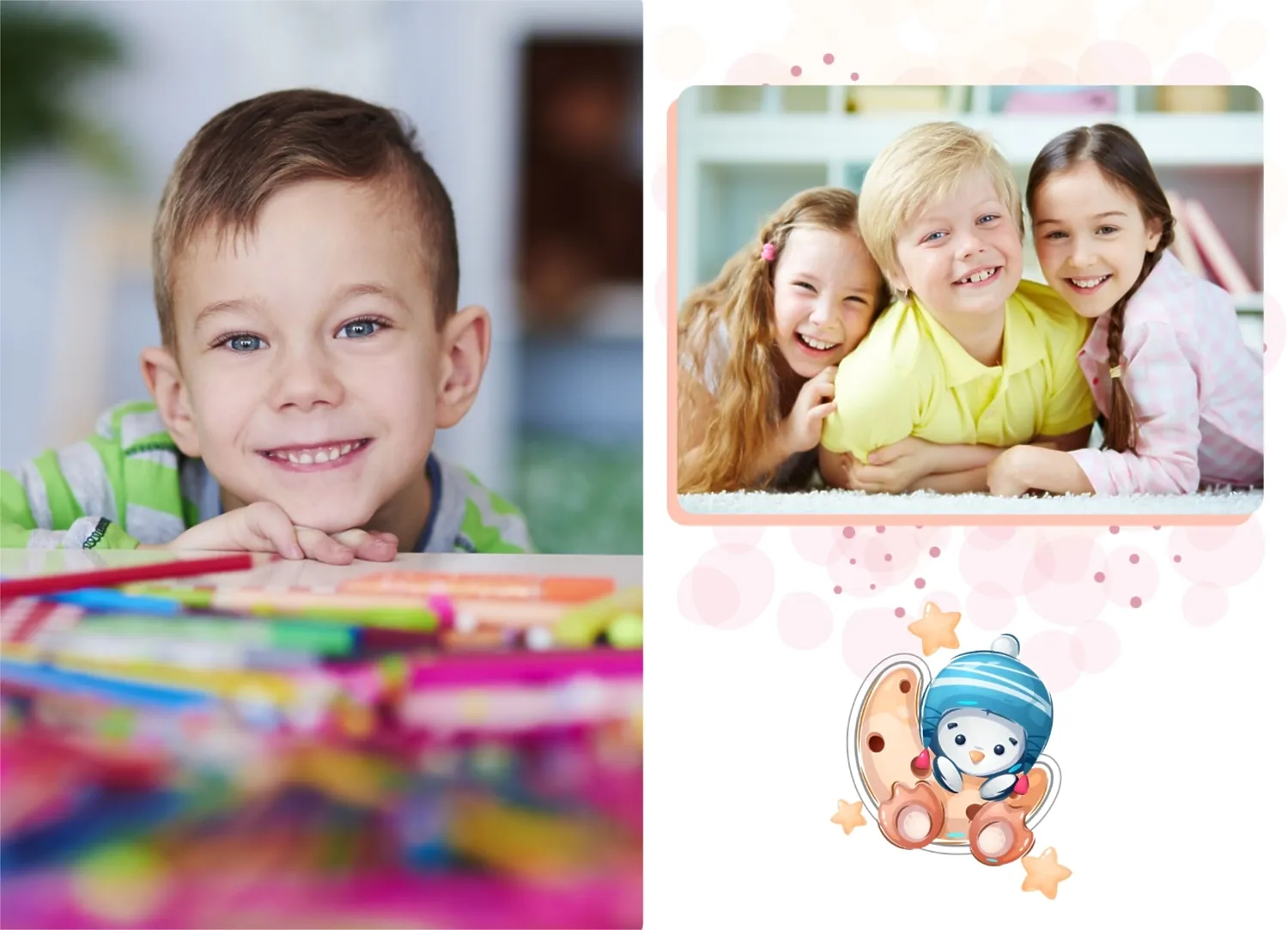 Baigtas kieto viršelio vaikų darželio fotoknygos su kosminiu dizainu šablonas yra originalus atminimo albumo dizaino sprendimas. Ryškios žvaigždžių, planetų ir raketų iliustracijos sukuria įspūdingos kelionės atmosferą, pabrėžiant šio svarbaus momento ypatumą vaikų gyvenime. Šis stilius patiks ne tik vaikams, bet ir tėvams, nes jis daro fotoknygą ryškią, dinamišką ir nepanašią į standartinius albumus. Šis šablonas yra specialiai sukurtas naudoti mūsų internetiniame dizaineryje, kur kiekvienas gali lengvai pritaikyti išdėstymą pagal savo pageidavimus. Galite pakeisti foną, pasirinkti kitus dekoratyvinius elementus, pridėti mokinių ir mokytojų vardus, įterpti asmeninius parašus ir pageidavimus. Toks modelis gali būti tinkamas ne tik darželiui, bet ir mokytojams, dirbantiems ikimokykliniame ugdyme, pedagogams ir animatoriams.