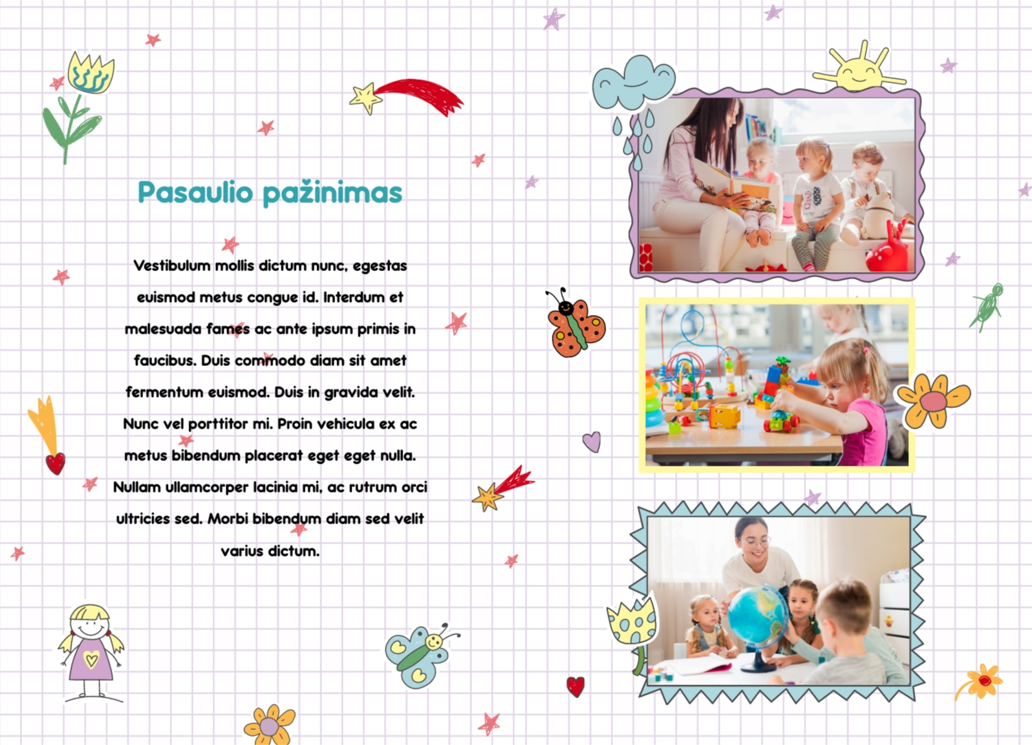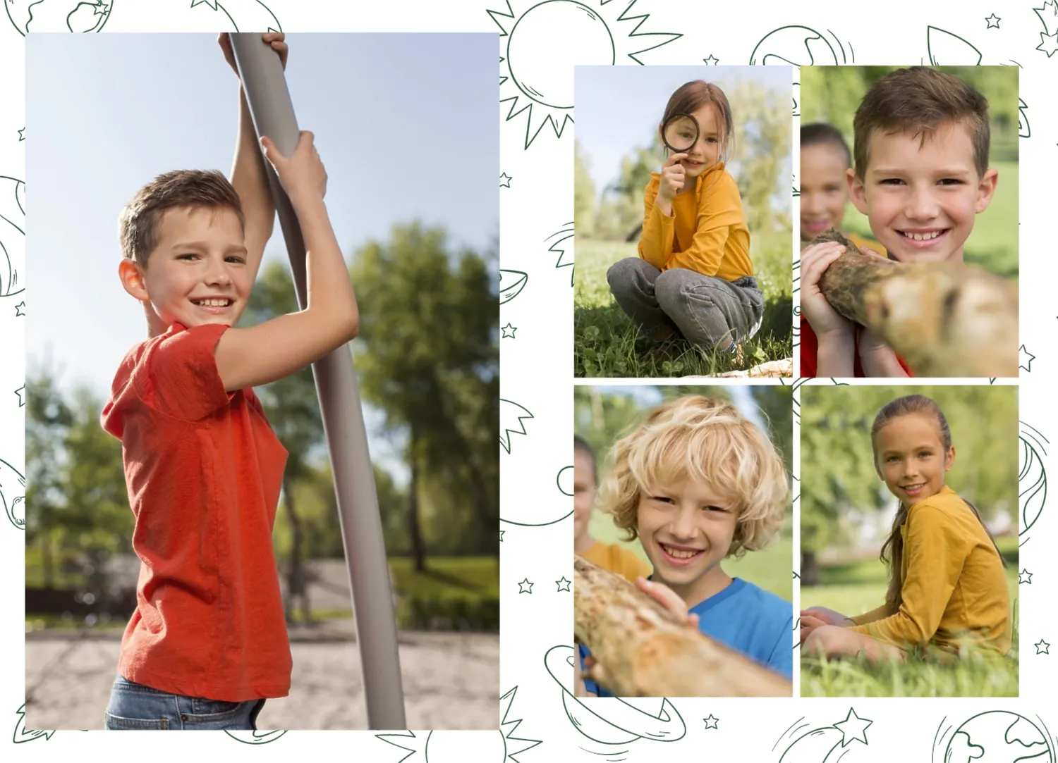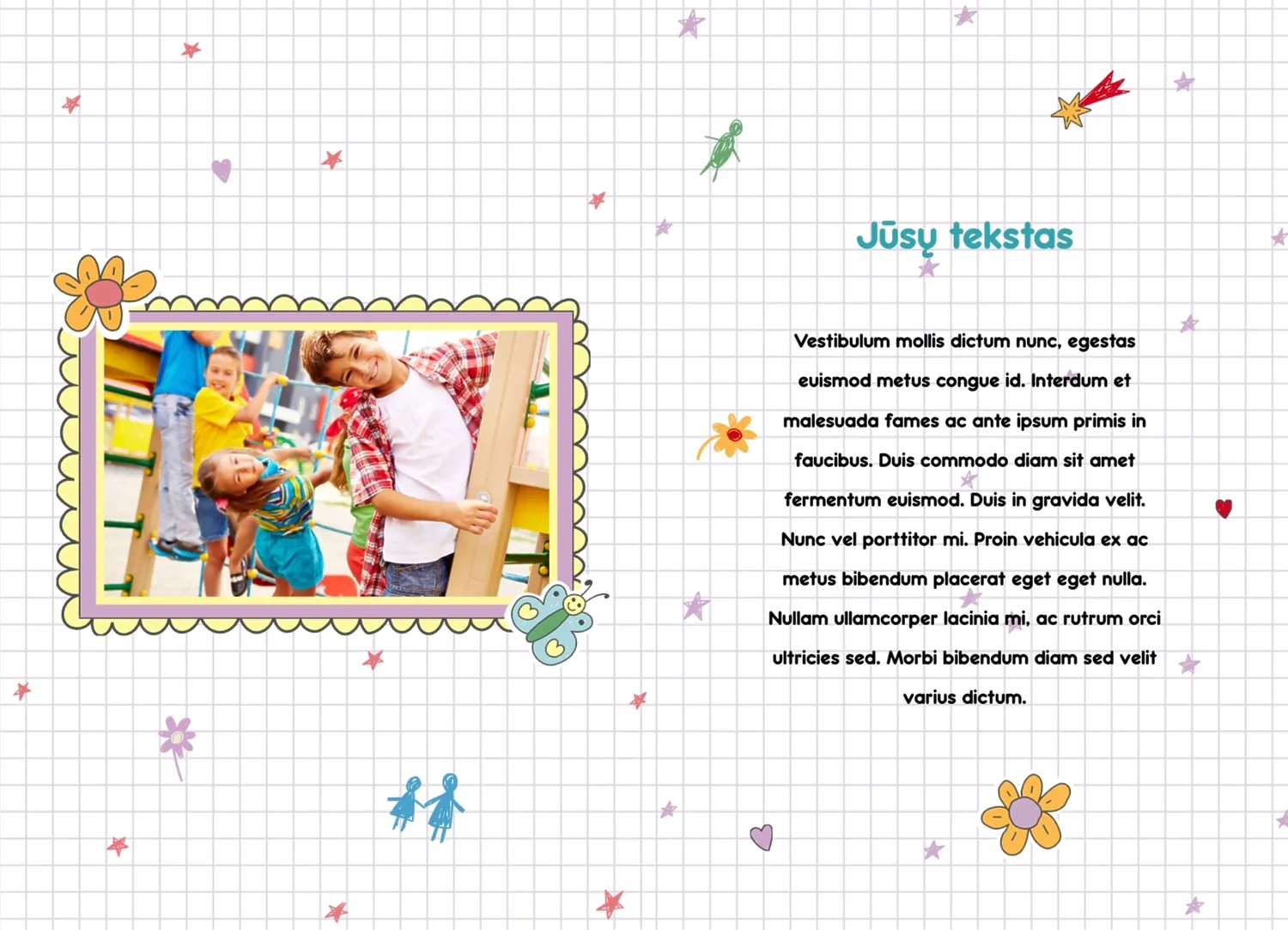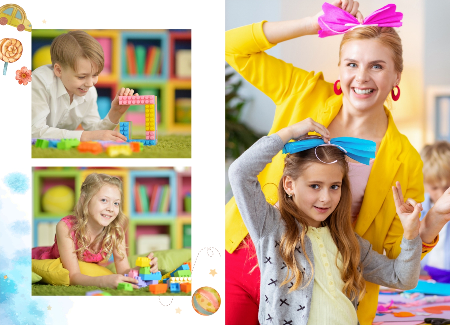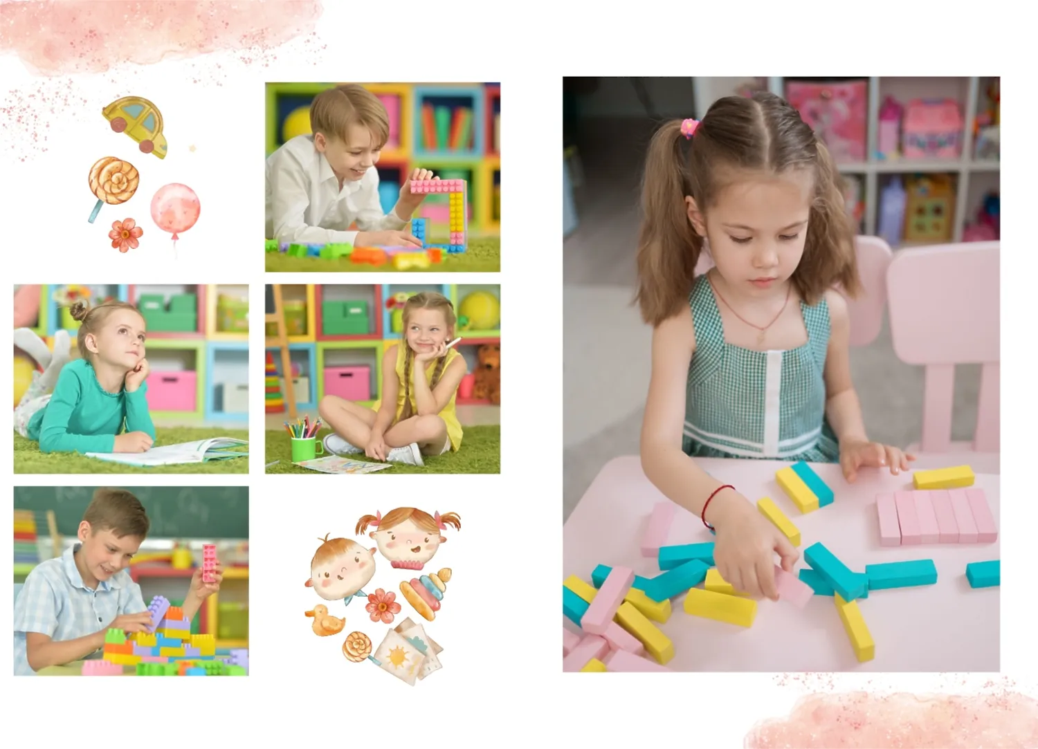 Baigtas kieto viršelio vaikų darželio fotoknygos su kosminiu dizainu šablonas yra originalus atminimo albumo dizaino sprendimas. Ryškios žvaigždžių, planetų ir raketų iliustracijos sukuria įspūdingos kelionės atmosferą, pabrėžiant šio svarbaus momento ypatumą vaikų gyvenime. Šis stilius patiks ne tik vaikams, bet ir tėvams, nes jis daro fotoknygą ryškią, dinamišką ir nepanašią į standartinius albumus. Šis šablonas yra specialiai sukurtas naudoti mūsų internetiniame dizaineryje, kur kiekvienas gali lengvai pritaikyti išdėstymą pagal savo pageidavimus. Galite pakeisti foną, pasirinkti kitus dekoratyvinius elementus, pridėti mokinių ir mokytojų vardus, įterpti asmeninius parašus ir pageidavimus. Toks modelis gali būti tinkamas ne tik darželiui, bet ir mokytojams, dirbantiems ikimokykliniame ugdyme, pedagogams ir animatoriams.