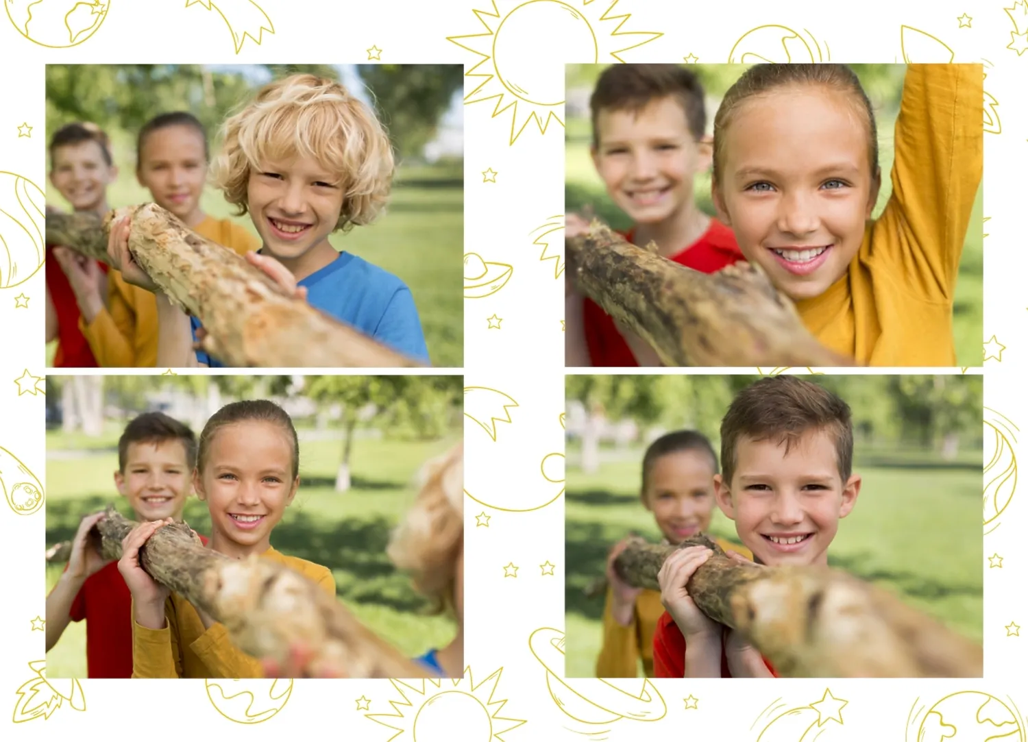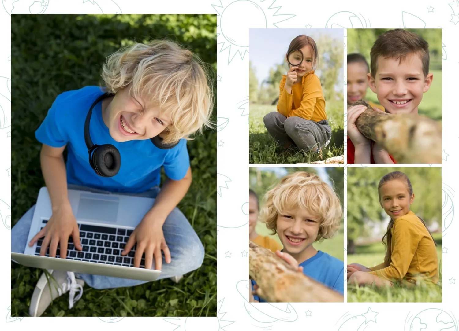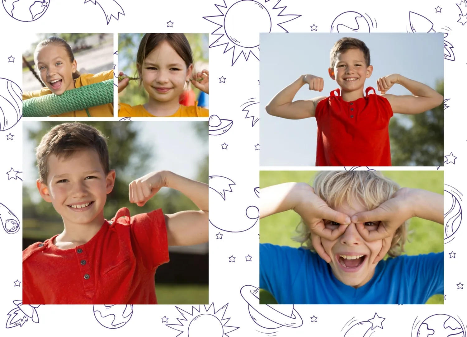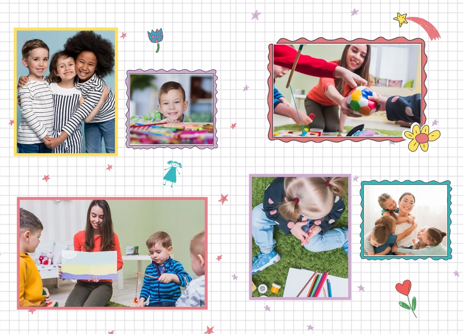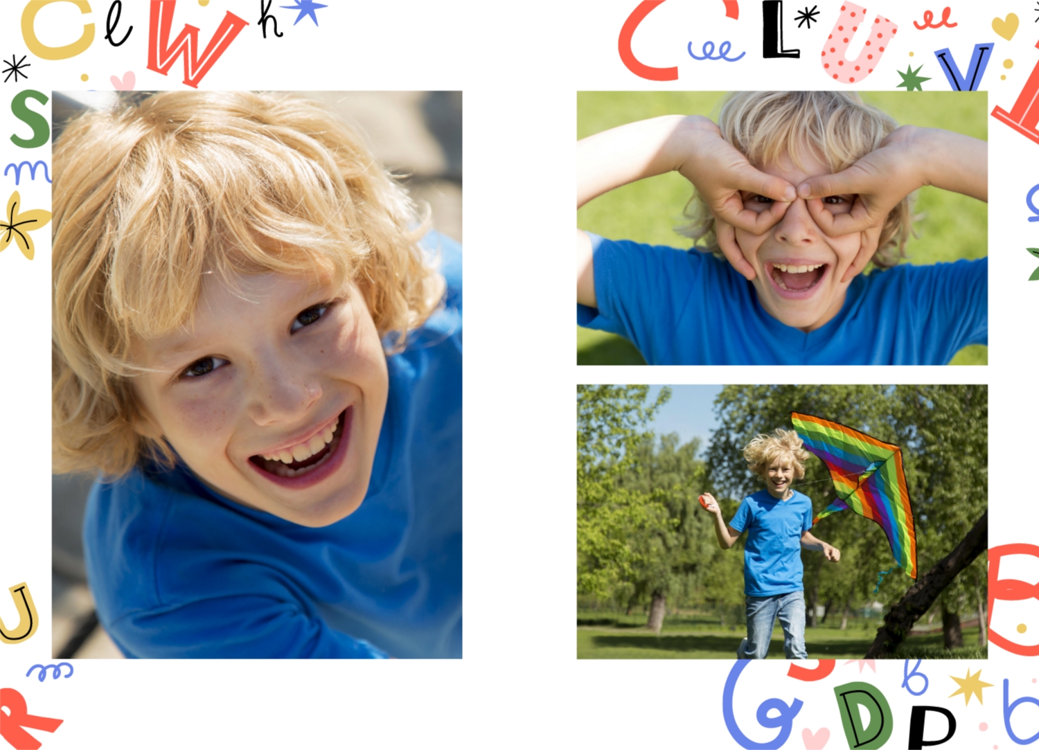 Baigtas kieto viršelio vaikų darželio fotoknygos su kosminiu dizainu šablonas yra originalus atminimo albumo dizaino sprendimas. Ryškios žvaigždžių, planetų ir raketų iliustracijos sukuria įspūdingos kelionės atmosferą, pabrėžiant šio svarbaus momento ypatumą vaikų gyvenime. Šis stilius patiks ne tik vaikams, bet ir tėvams, nes jis daro fotoknygą ryškią, dinamišką ir nepanašią į standartinius albumus. Šis šablonas yra specialiai sukurtas naudoti mūsų internetiniame dizaineryje, kur kiekvienas gali lengvai pritaikyti išdėstymą pagal savo pageidavimus. Galite pakeisti foną, pasirinkti kitus dekoratyvinius elementus, pridėti mokinių ir mokytojų vardus, įterpti asmeninius parašus ir pageidavimus. Toks modelis gali būti tinkamas ne tik darželiui, bet ir mokytojams, dirbantiems ikimokykliniame ugdyme, pedagogams ir animatoriams.