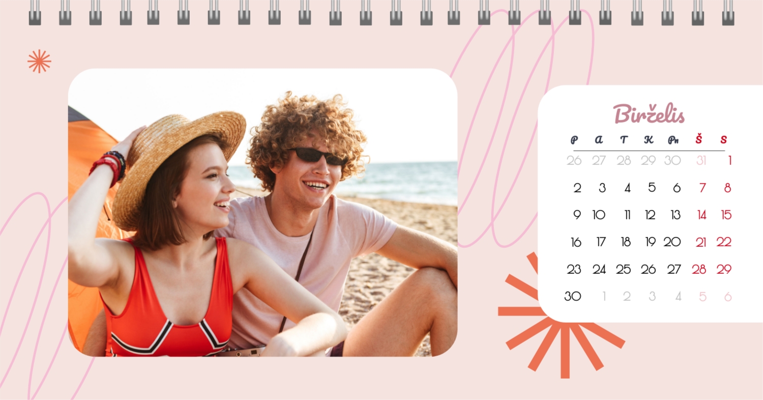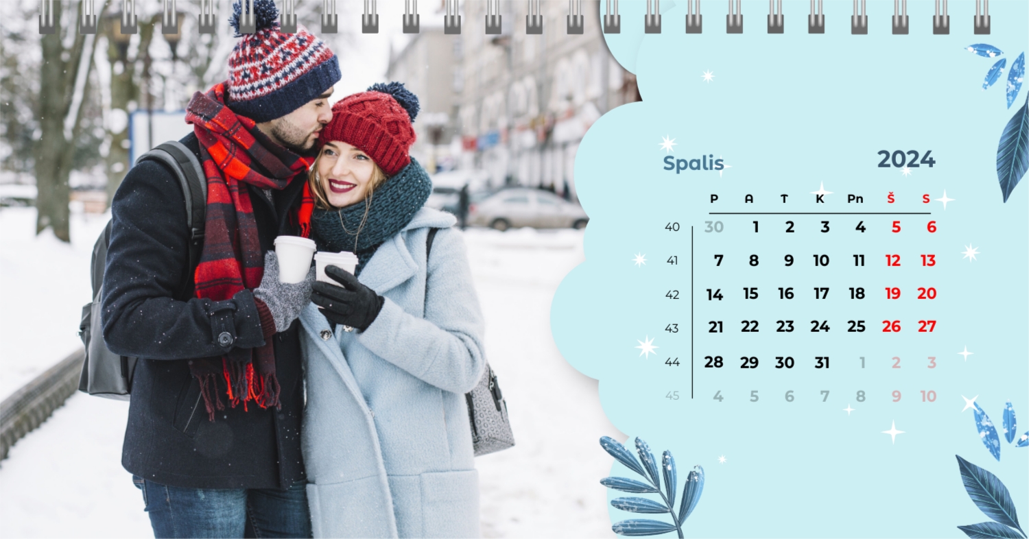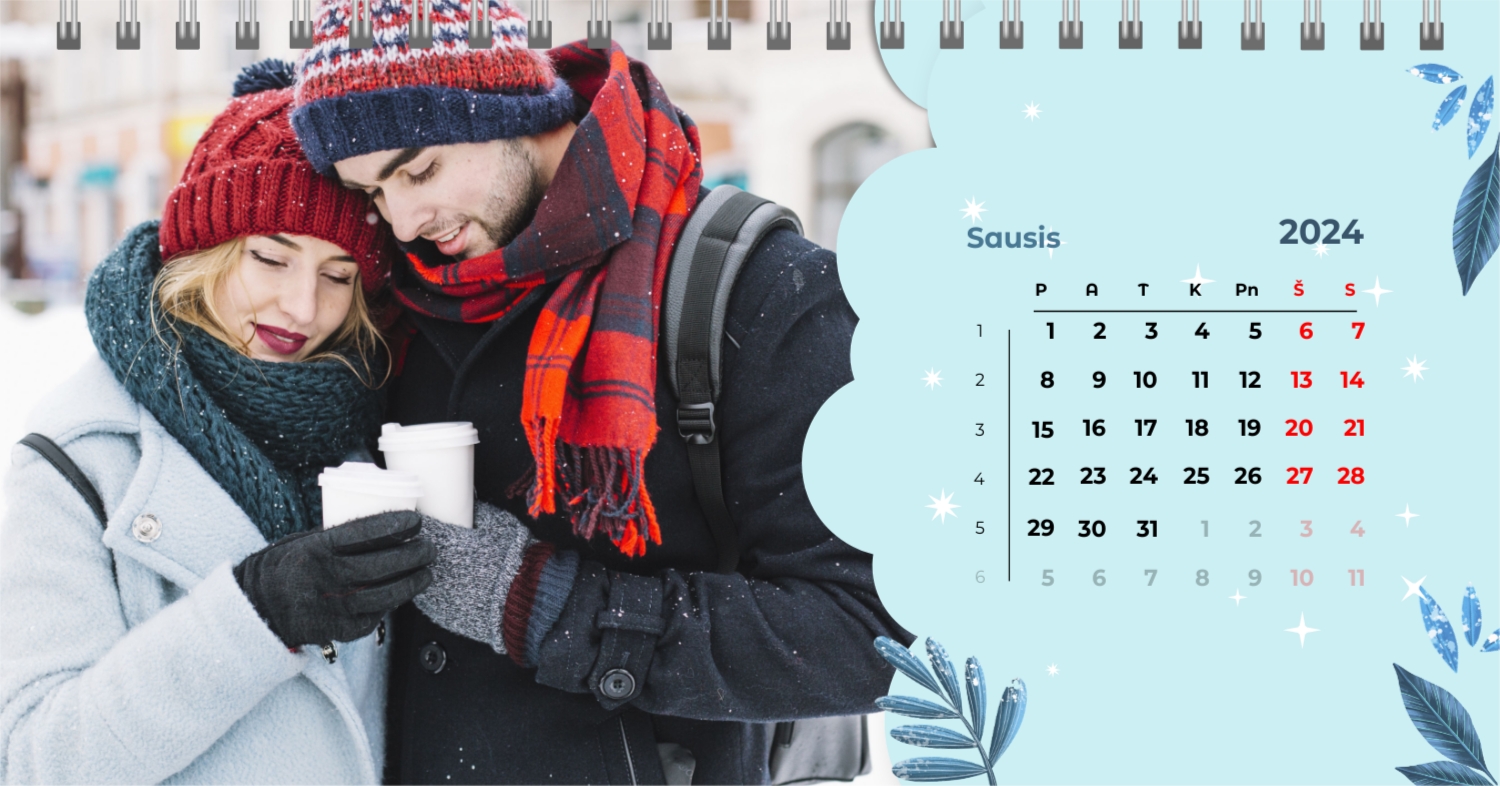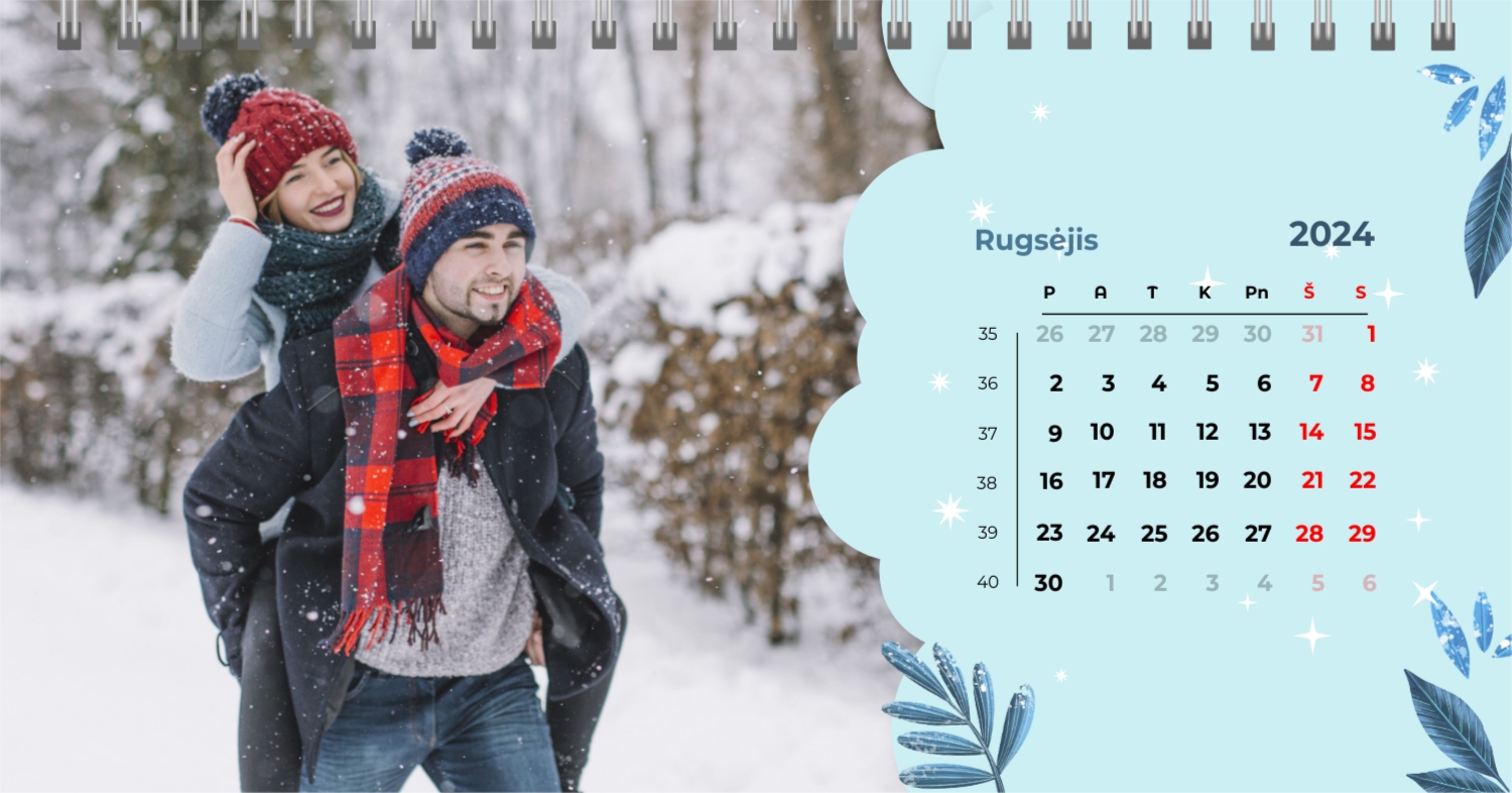 Paruoštas stalo kalendoriaus šablonas įsimylėjusioms poroms yra idealus būdas sukurti unikalią ir jaudinančią dovaną. Jame yra romantiškas dizainas, kuris pabrėžia ypatingą partnerių ryšį. Toks 13 puslapių Stalinis kalendorius gali būti ne tik malonus suvenyras, bet ir stilingas interjero elementas. Šis šablonas puikiai tinka fotografams, besispecializuojantiems love story, nes juo galima gražiai apipavidalinti profesionalias nuotraukas. Pagrindinis šio kalendoriaus privalumas yra galimybė visiškai individualizuoti mūsų internetinį dizainerį. Galite įkelti savo nuotraukas, pakeisti foną, pridėti įsimintinas datas, romantiškus užrašus ar net juokingus komentarus kiekvienam mėnesiui.