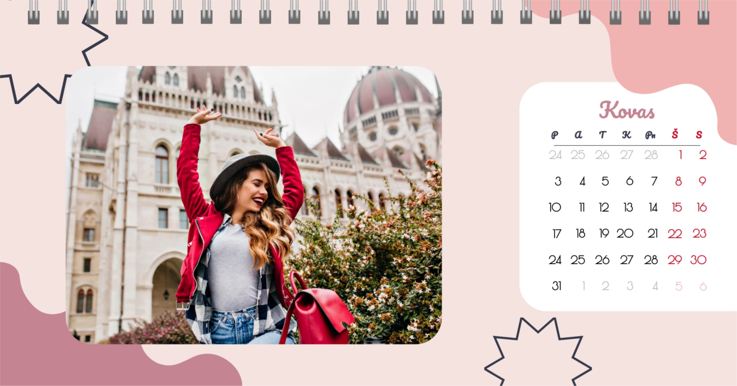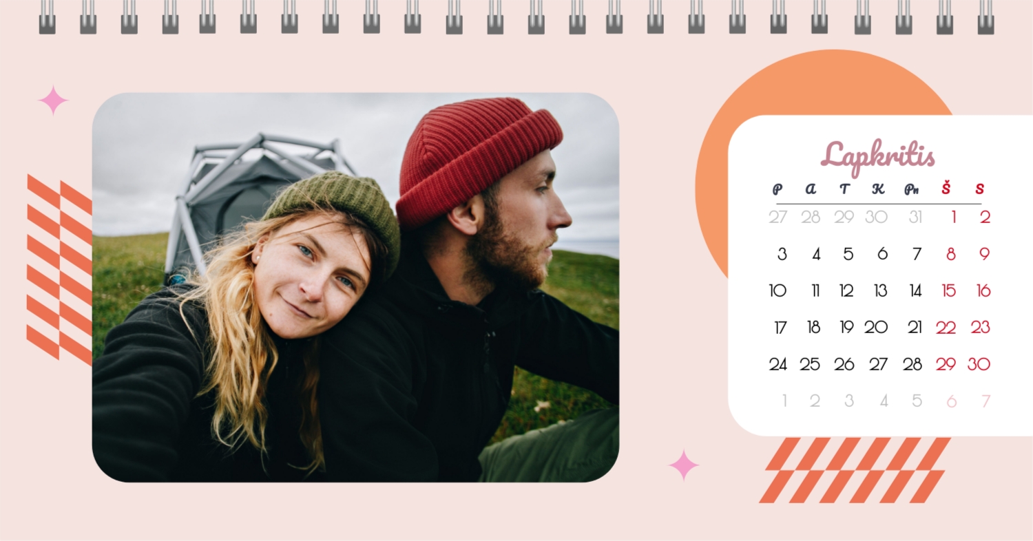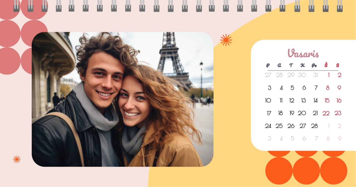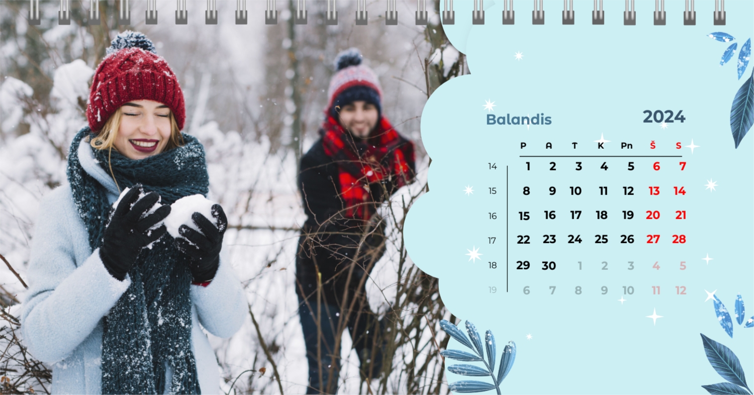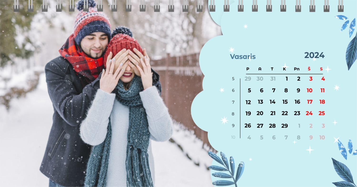 Paruoštas stalo kalendoriaus šablonas įsimylėjusioms poroms yra idealus būdas sukurti unikalią ir jaudinančią dovaną. Jame yra romantiškas dizainas, kuris pabrėžia ypatingą partnerių ryšį. Toks 13 puslapių Stalinis kalendorius gali būti ne tik malonus suvenyras, bet ir stilingas interjero elementas. Šis šablonas puikiai tinka fotografams, besispecializuojantiems love story, nes juo galima gražiai apipavidalinti profesionalias nuotraukas. Pagrindinis šio kalendoriaus privalumas yra galimybė visiškai individualizuoti mūsų internetinį dizainerį. Galite įkelti savo nuotraukas, pakeisti foną, pridėti įsimintinas datas, romantiškus užrašus ar net juokingus komentarus kiekvienam mėnesiui.