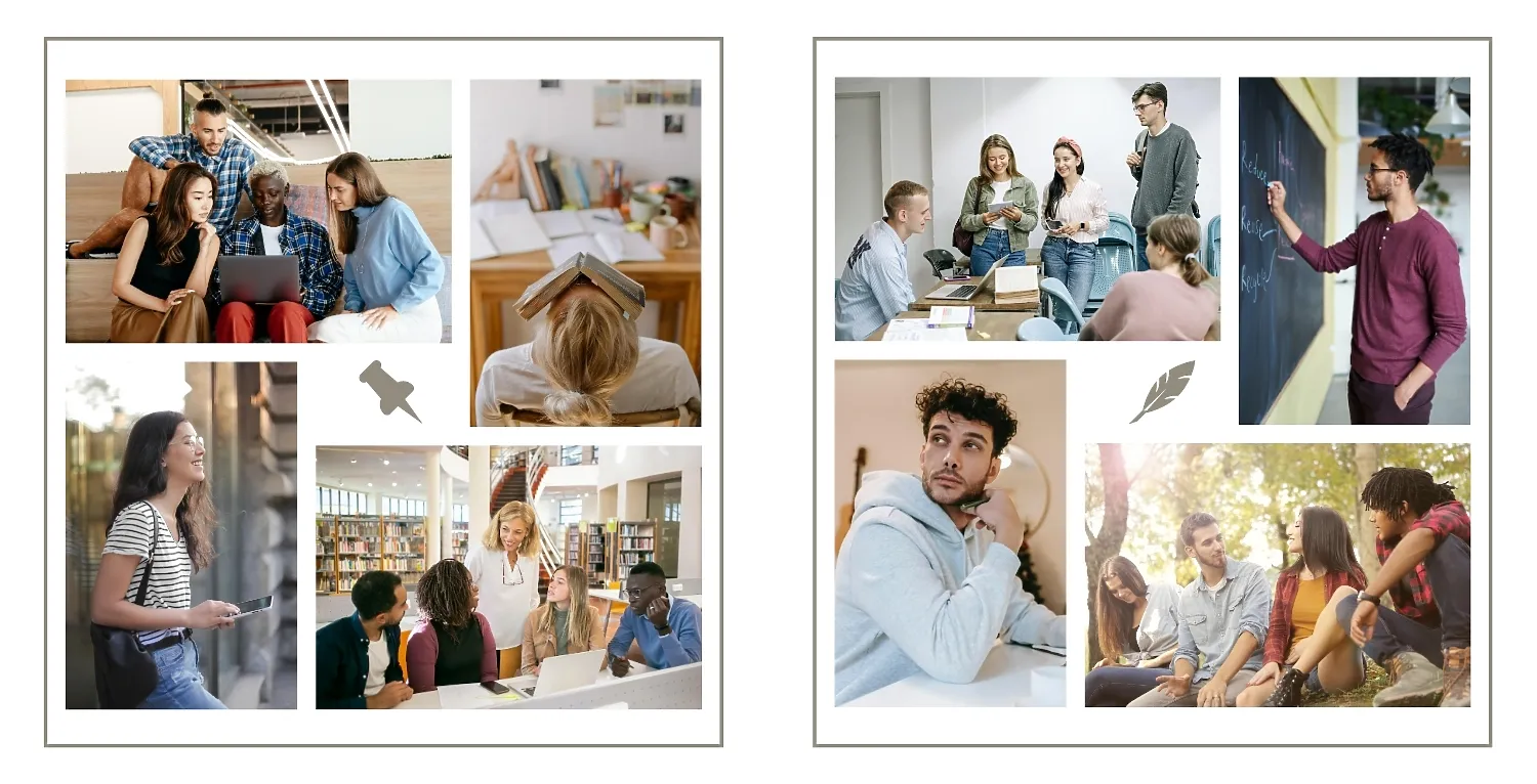 Nemokamas Instagram stiliaus nuotraukų knygos šablonas aukštųjų mokyklų absolventams. Sukurkite išdėstymą su savo rankomis internetinėje nuotraukų knygų dizaineriu.
