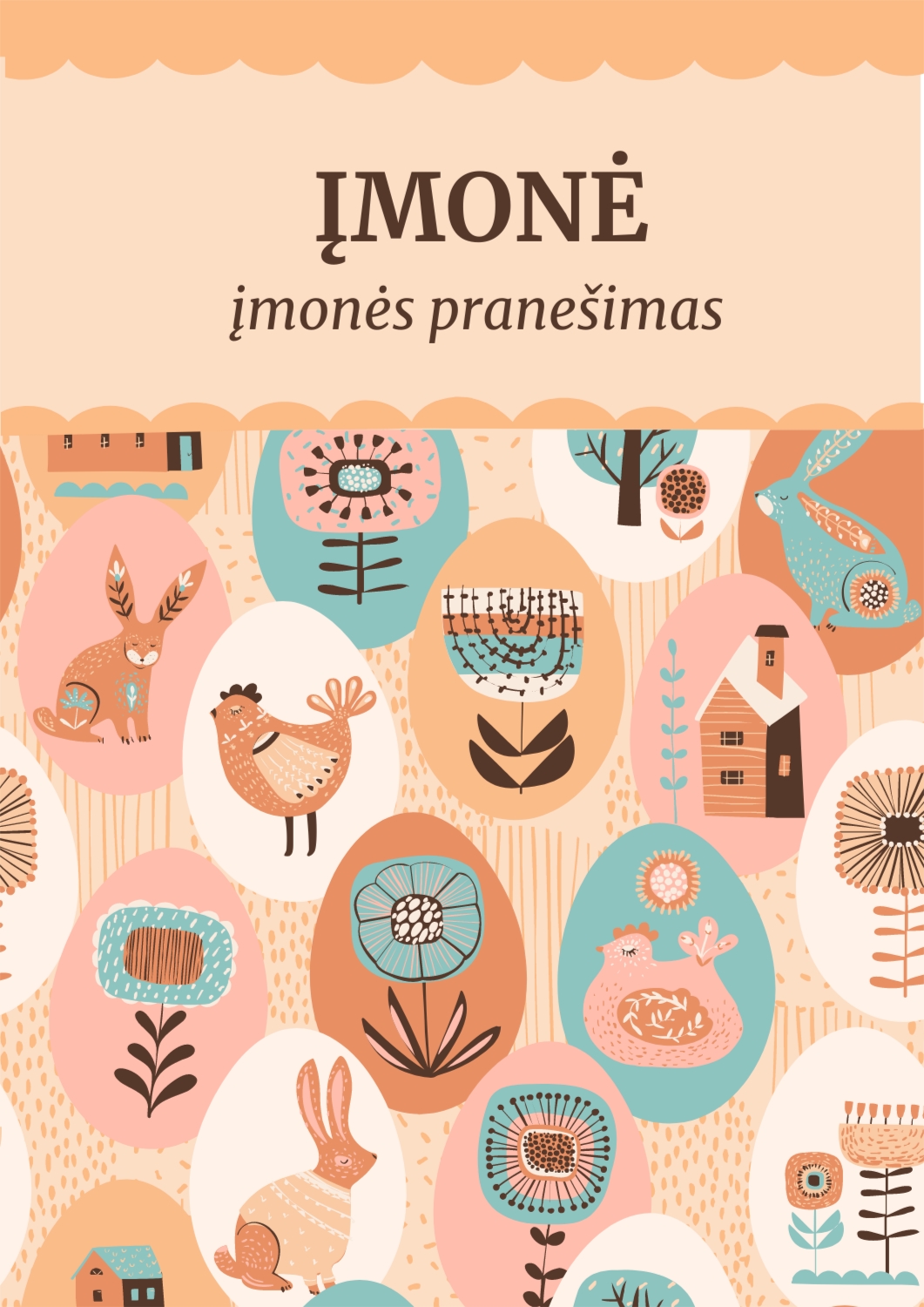 Paruoštas Velykų užrašų knygelės šablonas yra ryškus ir šventinis dizainas, kuris puikiai perteikia pavasario, atnaujinimo ir šeimos komforto atmosferą. Šį šabloną galima lengvai pritaikyti internetiniame dizaineryje bet kokioms užduotims ir pageidavimams. Galite keisti foną, redaguoti spalvų paletę, pridėti ar pašalinti dekoratyvinius elementus, kad sukurtumėte individualų stilių. Visi teksto laukai yra visiškai redaguojami, todėl galite pridėti sveikinimus, motyvacines citatas, pastabas apie pasirengimą atostogoms ar verslo planuotoją. Maketo lankstumas leidžia naudoti nešiojamąjį kompiuterį kaip asmeninį dienoraštį, darbo įrankį įrašymui ar net kaip verslo prekės ženklo dalį.