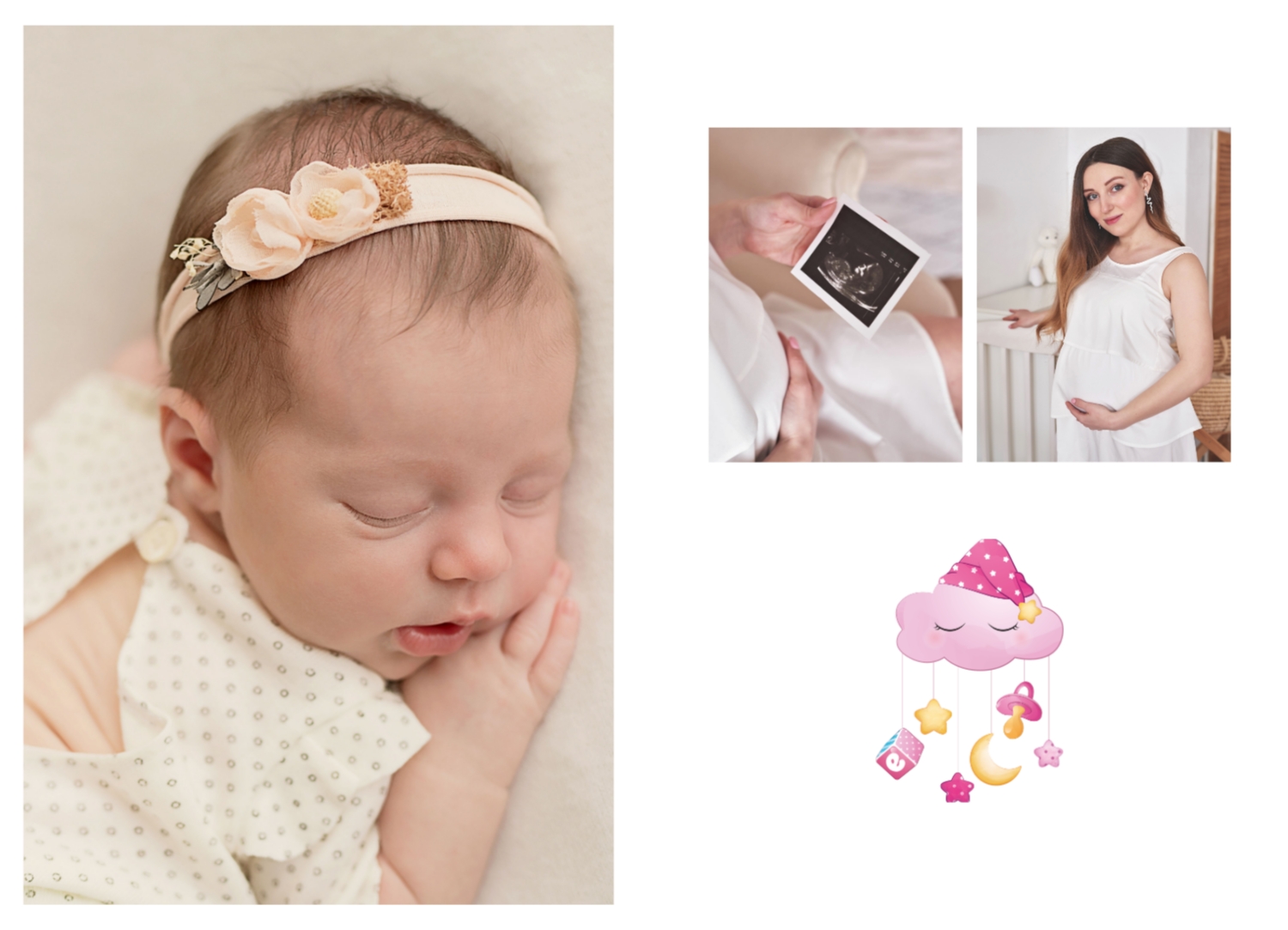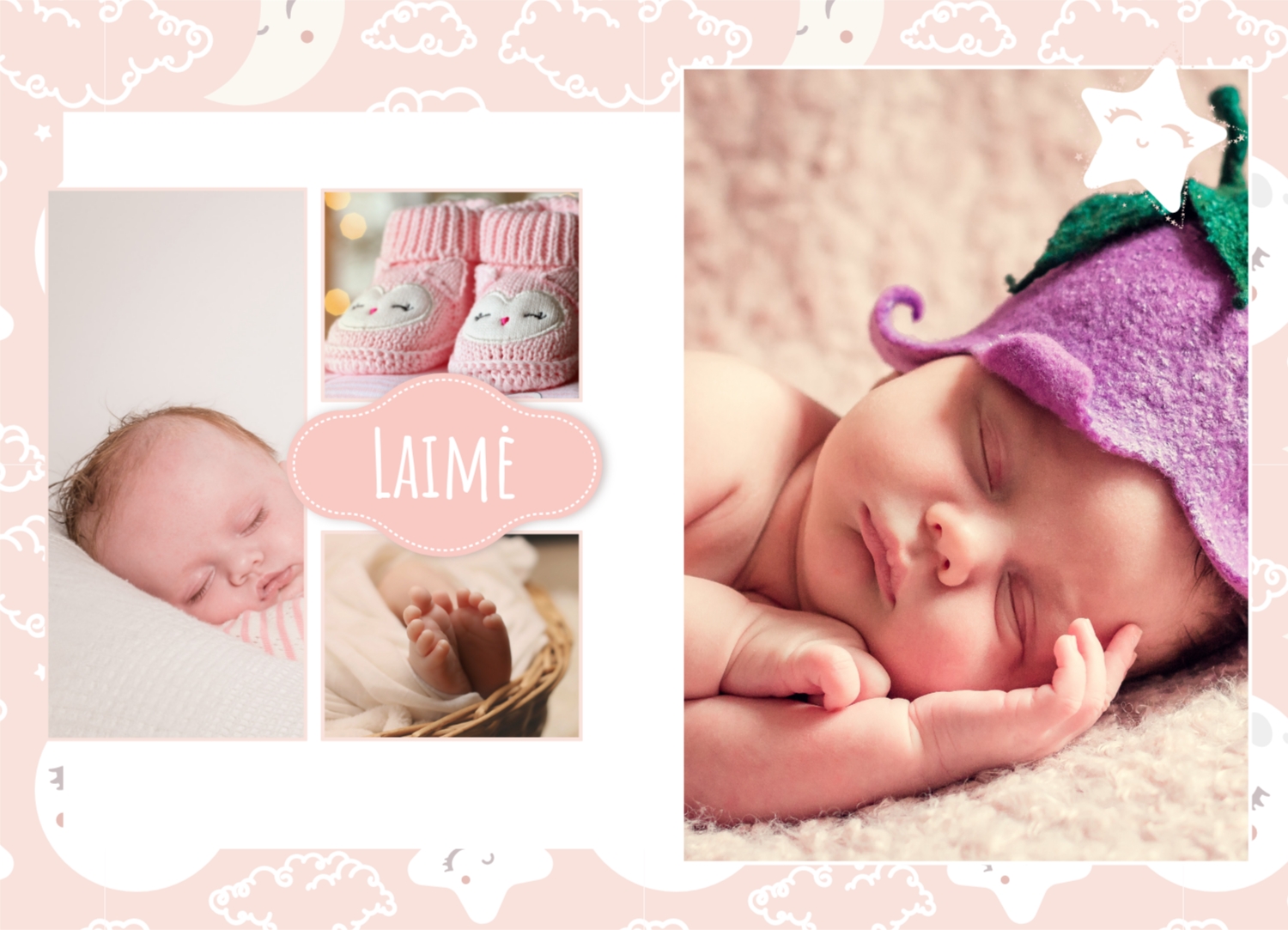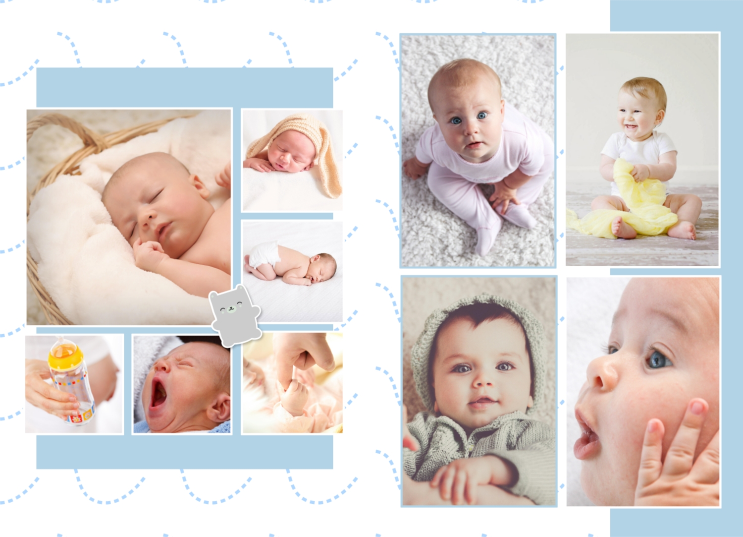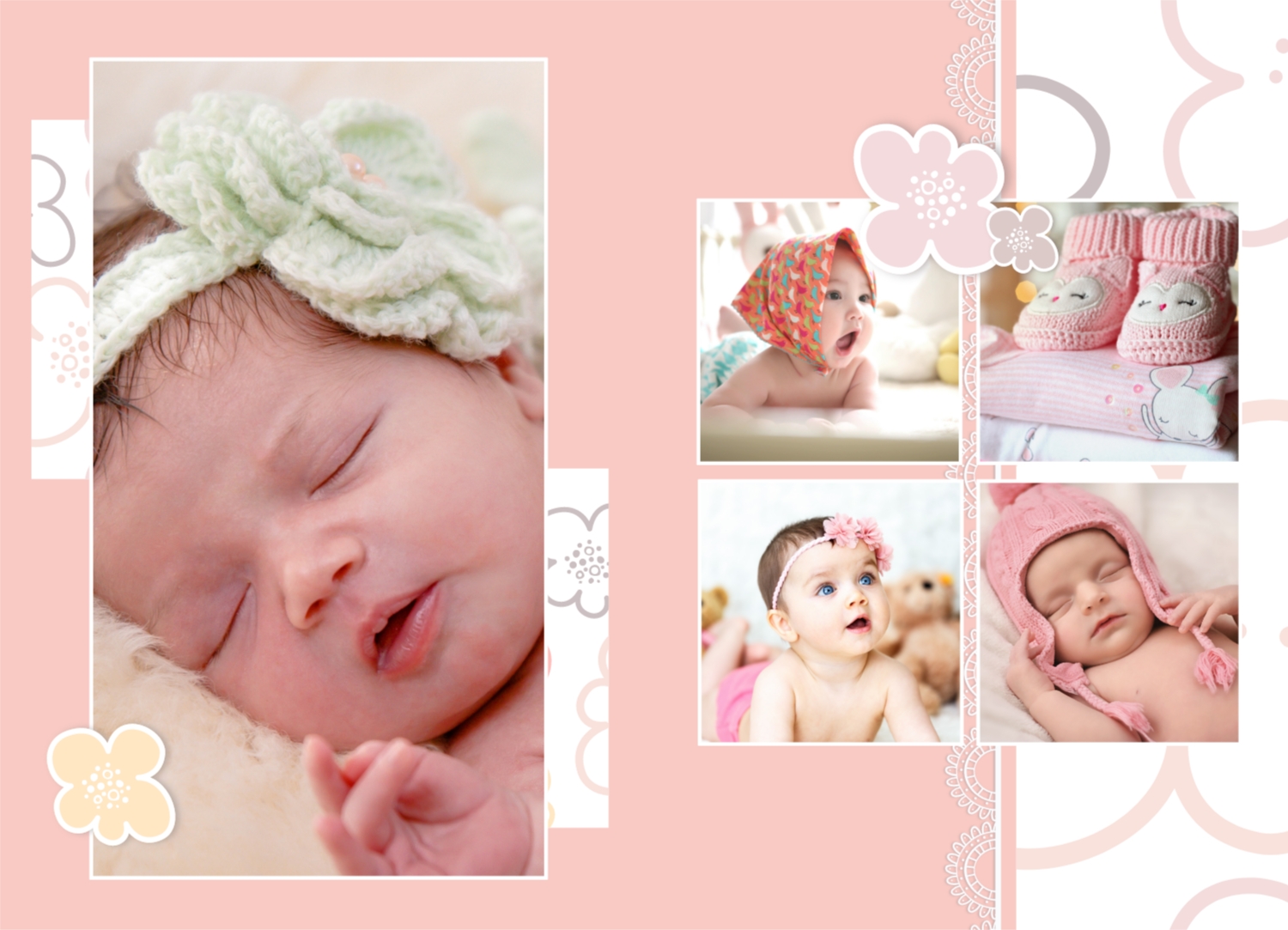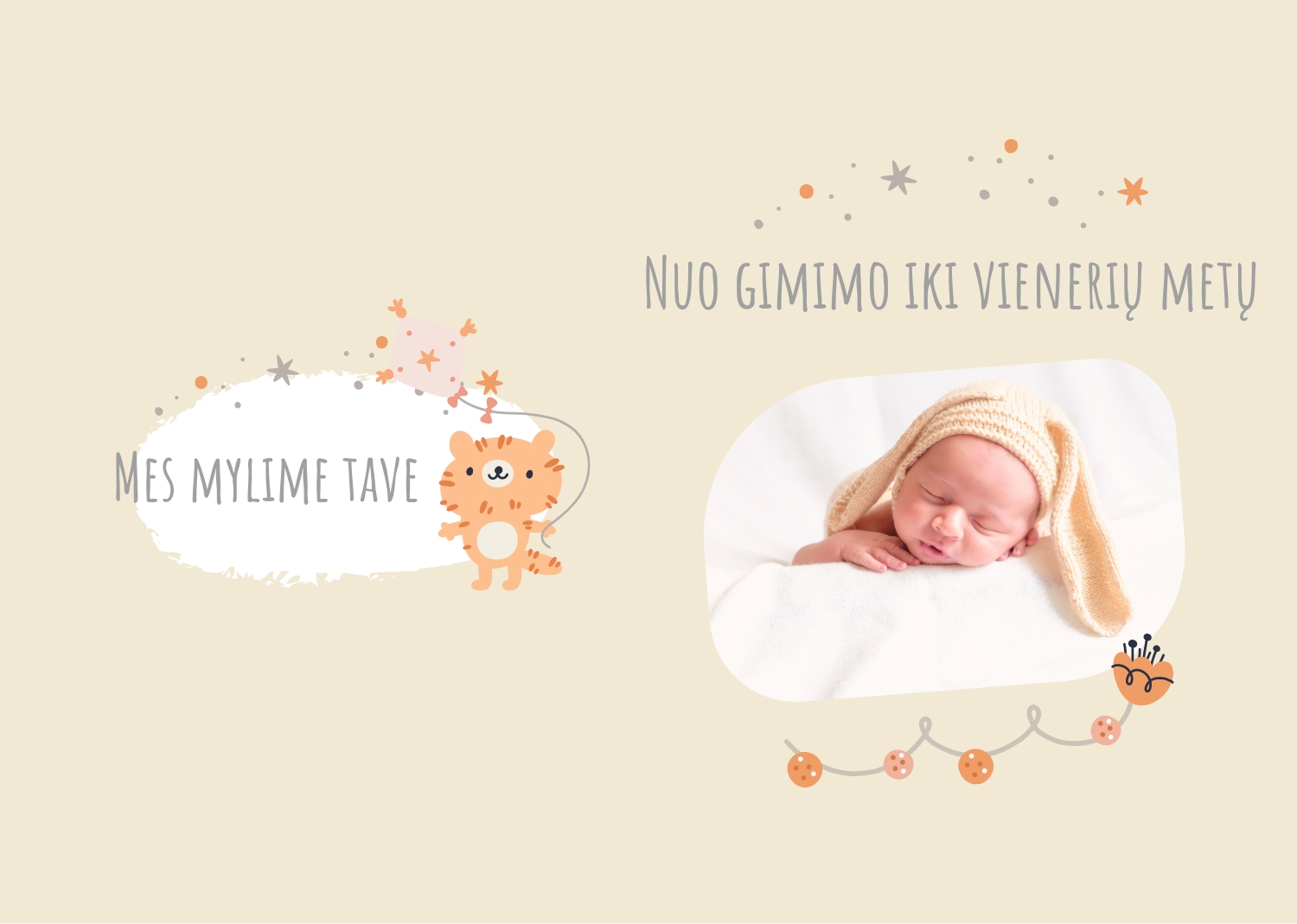Paruoštas vertikalios fotoknygos šablonas kietame viršelyje naujagimio nuotraukai "mažoji princesė" - tai švelnus ir jaudinantis maketas, kuris padės išsaugoti pačias vertingiausias pirmųjų mažylio gyvenimo dienų akimirkas. Dizainas Pagamintas minkštomis pastelinėmis spalvomis su elegantiškais dekoratyviniais elementais: oro debesimis, mielais žaislais, gėlių modeliais ir nuostabiais motyvais. Šis šablonas gali būti naudojamas ne tik asmeniniais tikslais, bet ir profesinėje srityje. Tai bus puikus pagrindas fotografams, dizaineriams ir specialistams, užsiimantiems vaikų nuotraukų albumų dizainu. Jis taip pat tinka fotostudijų darbuotojams, kurie siūlo klientams sukurti išskirtines knygas su vaikų nuotraukomis. Internetiniame dizaineryje maketas yra lengvai redaguojamas, todėl jis tikrai unikalus. Galite pakeisti foną, pridėti papildomų dekoratyvinių elementų arba pašalinti nereikalingas dalis. Laukai su tekstu ir nuotraukomis yra visiškai pritaikomi: galite pakeisti nuotraukų dydį ir vietą, pasirinkti tinkamą parašų šriftą ir spalvą, pridėti šiltų norų ar juokingų komentarų. Nuotraukos patogiai įkeliamos tiesiai į konstruktorių, kur jas galima apipjaustyti, redaguoti ir patalpinti reikiama tvarka.